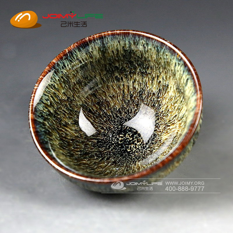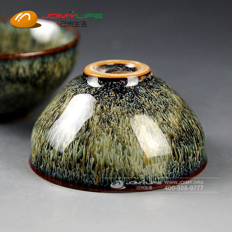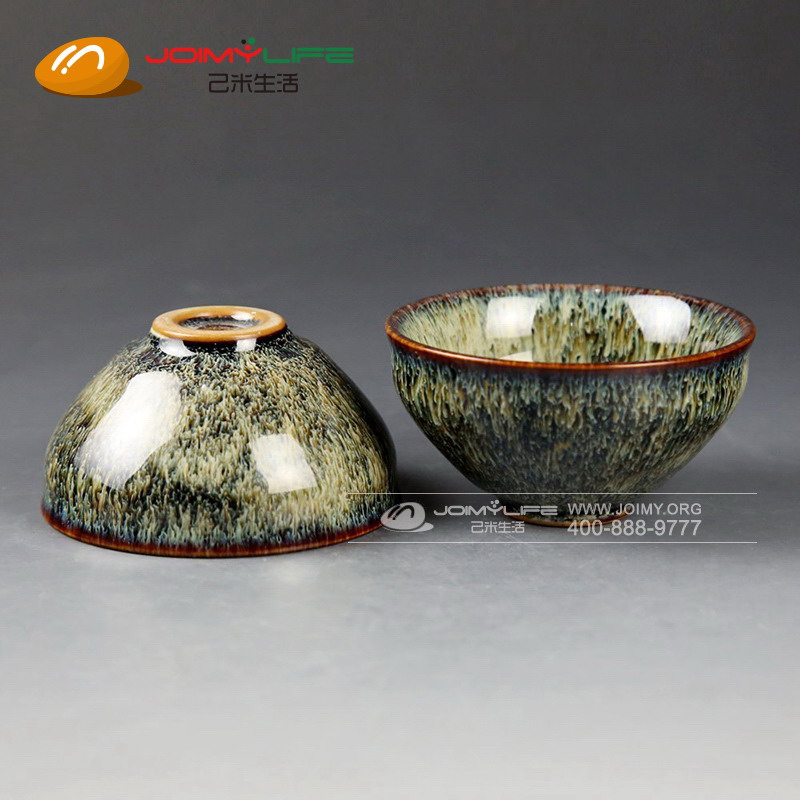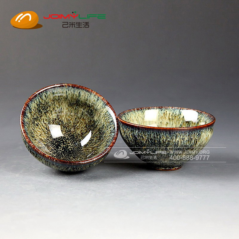 陶馨堂台湾天目釉钧瓷窑 变黄菊茶盏茶杯两件套定制