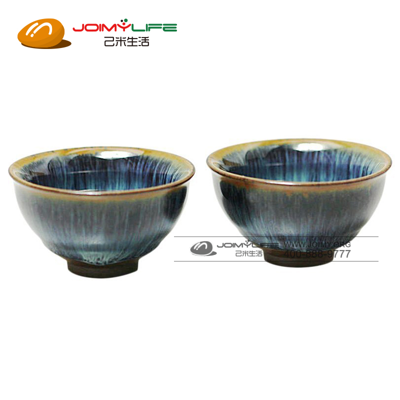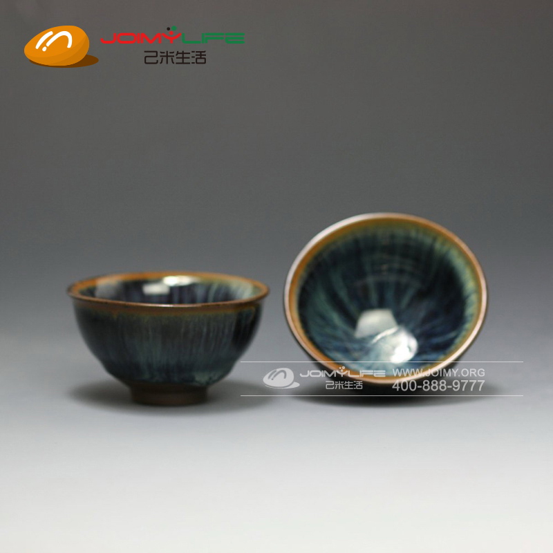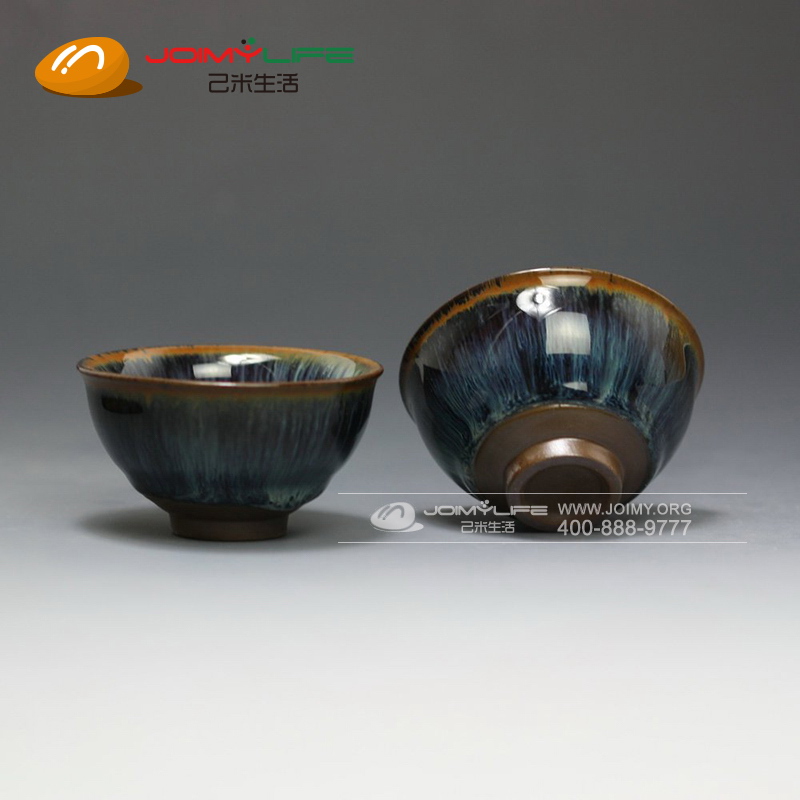 陶馨堂台湾天目釉钧瓷窑 变蓝菊小圆杯两件套定制