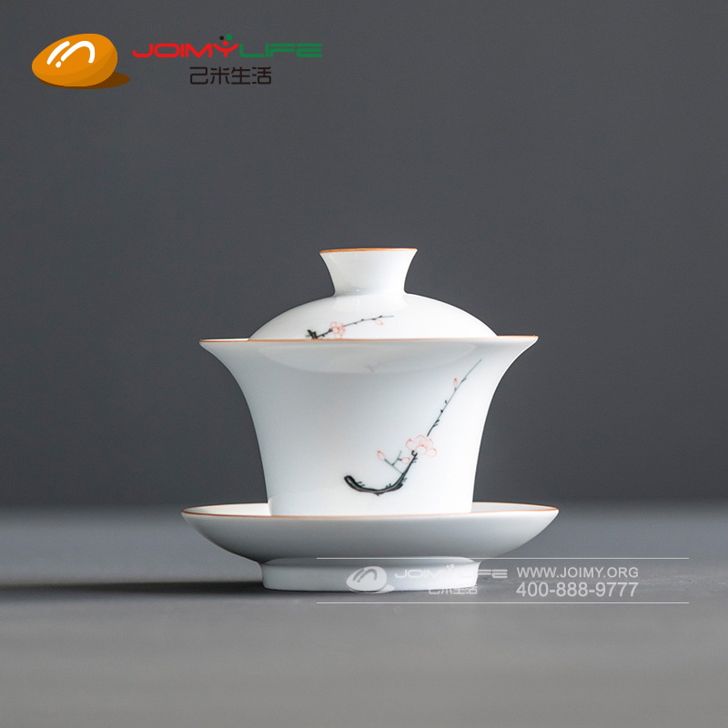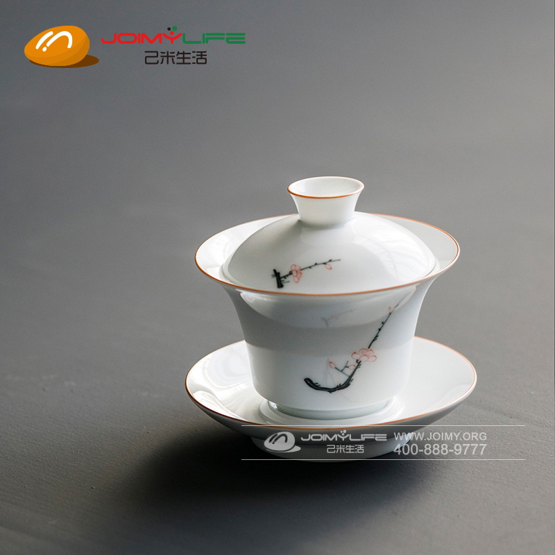 景德镇手绘粉彩梅花三才盖碗 手工功夫茶具定制