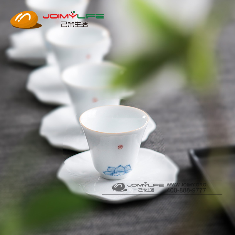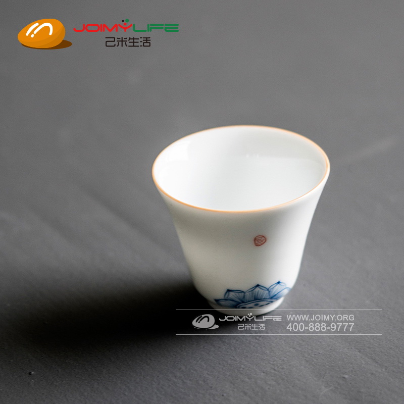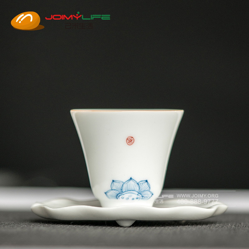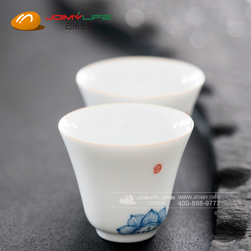 景德镇手绘简约脂白甜白莲花杯 功夫茶具陶瓷茶杯品茗杯定制