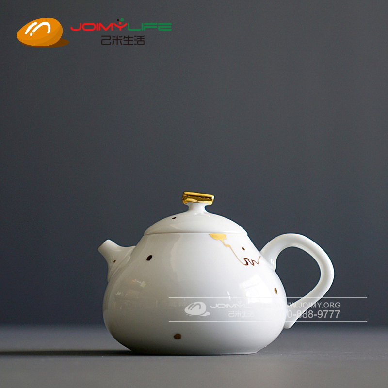 景德镇甜白纯手工茶壶 德化白瓷撒金文旦壶 送礼定制
