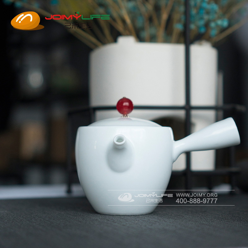 景德镇纯手工陶瓷茶壶 日式白瓷侧把壶 功夫茶具定制