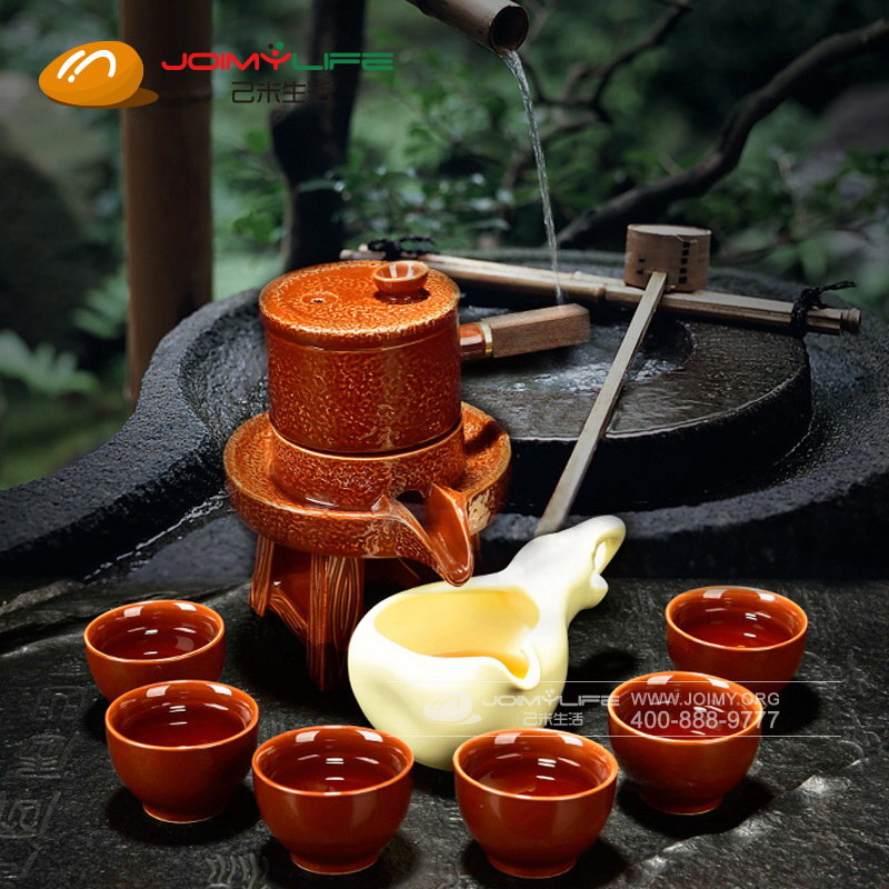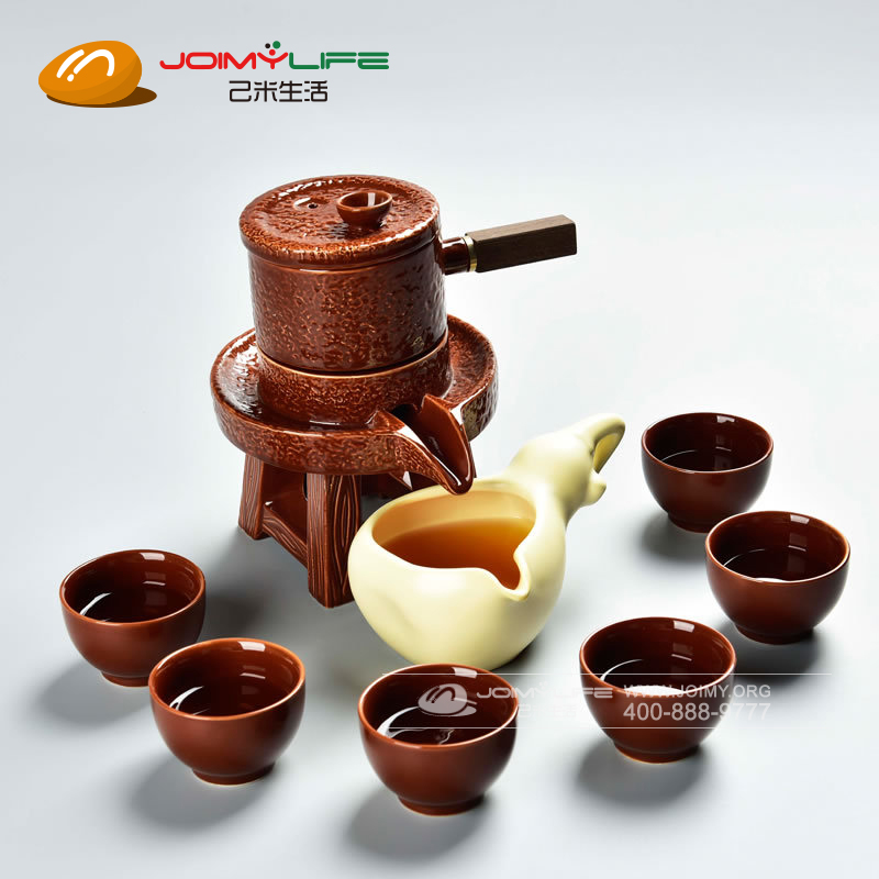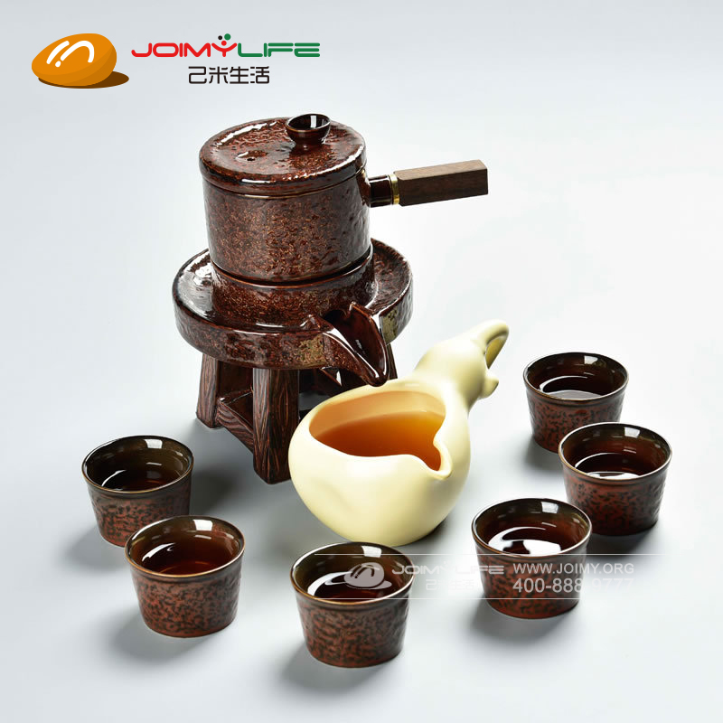 复古石磨半自动茶具套装 创意懒人粗陶瓷功夫泡茶壶定制