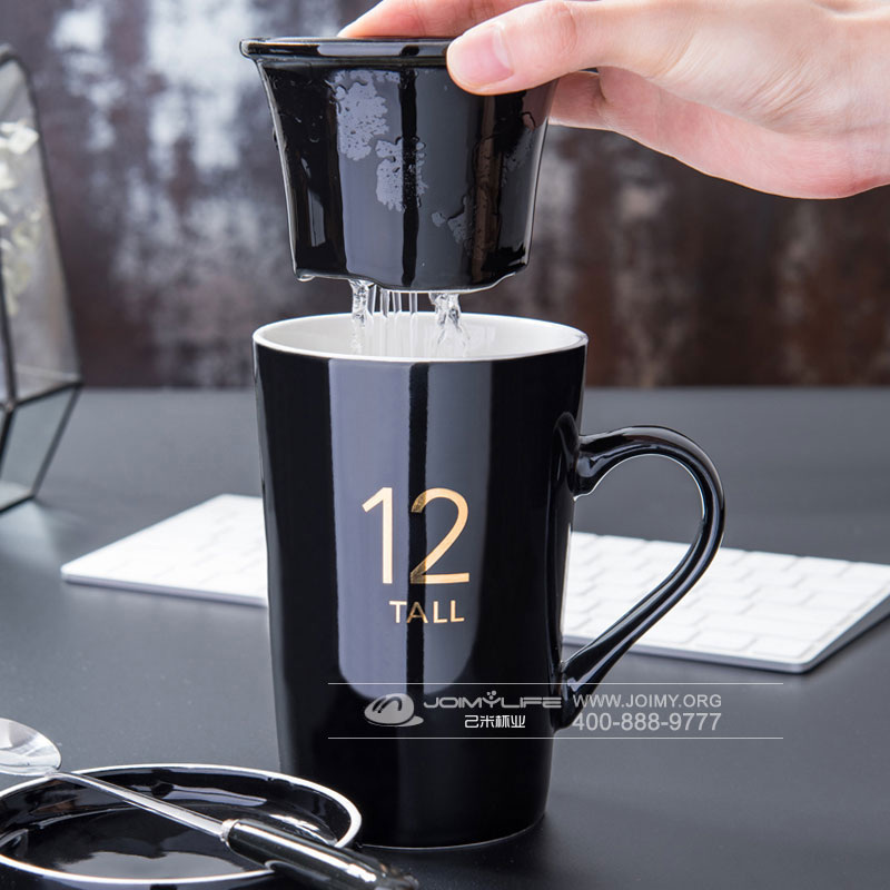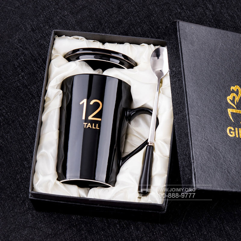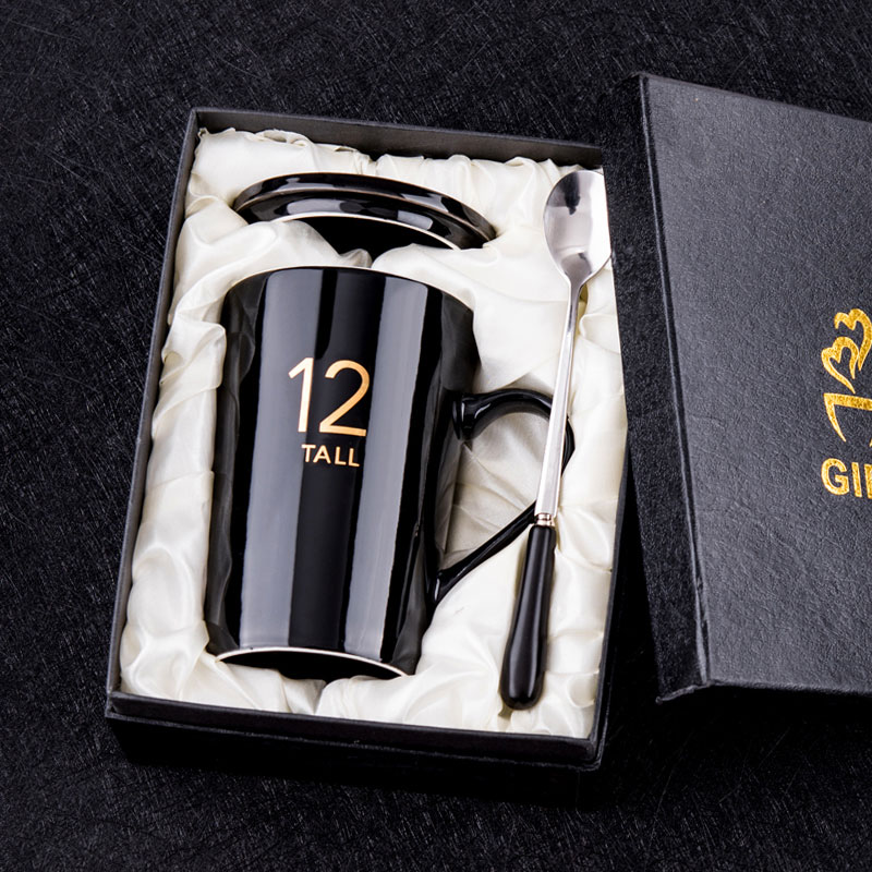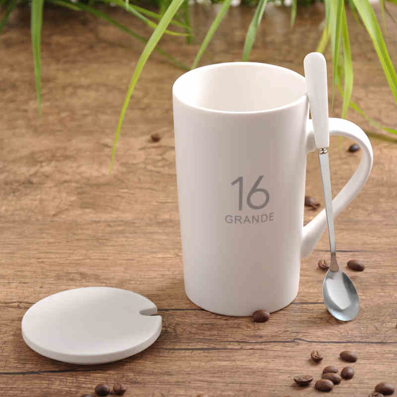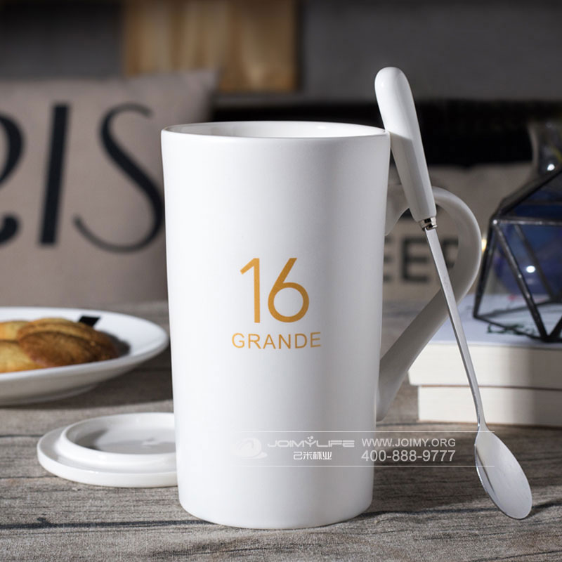 创意陶瓷杯 大容量马克水杯 简约情侣杯带盖勺咖啡杯定制