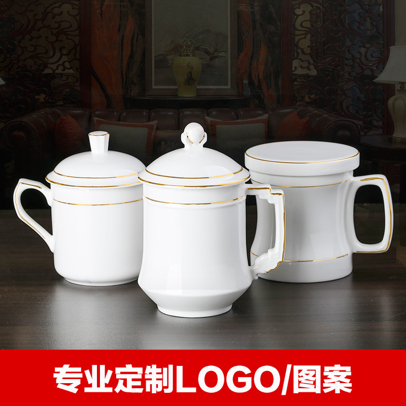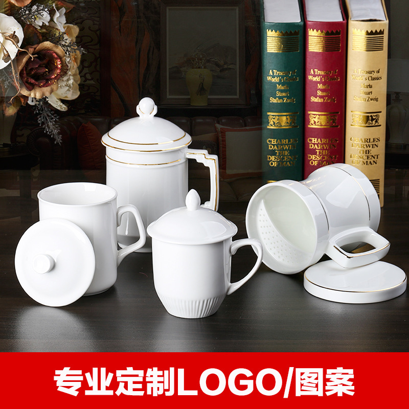 节日礼品骨瓷杯定制 茶杯纯白骨瓷杯批发加LOGO 陶瓷茶杯会议杯带盖订做