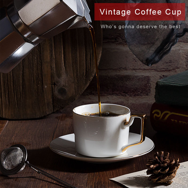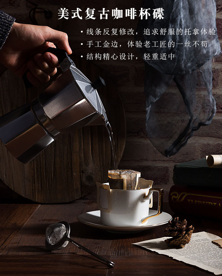 陶瓷咖啡杯套装定制 红茶杯下午花茶杯碟批发 手工描金送礼配勺订做