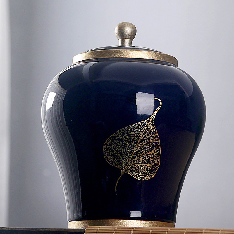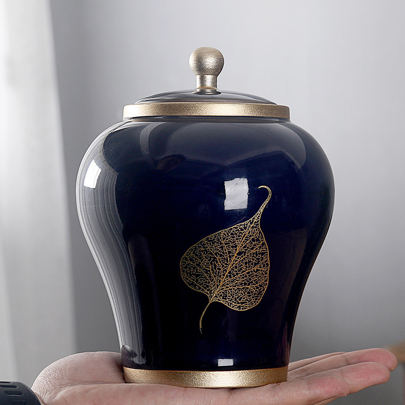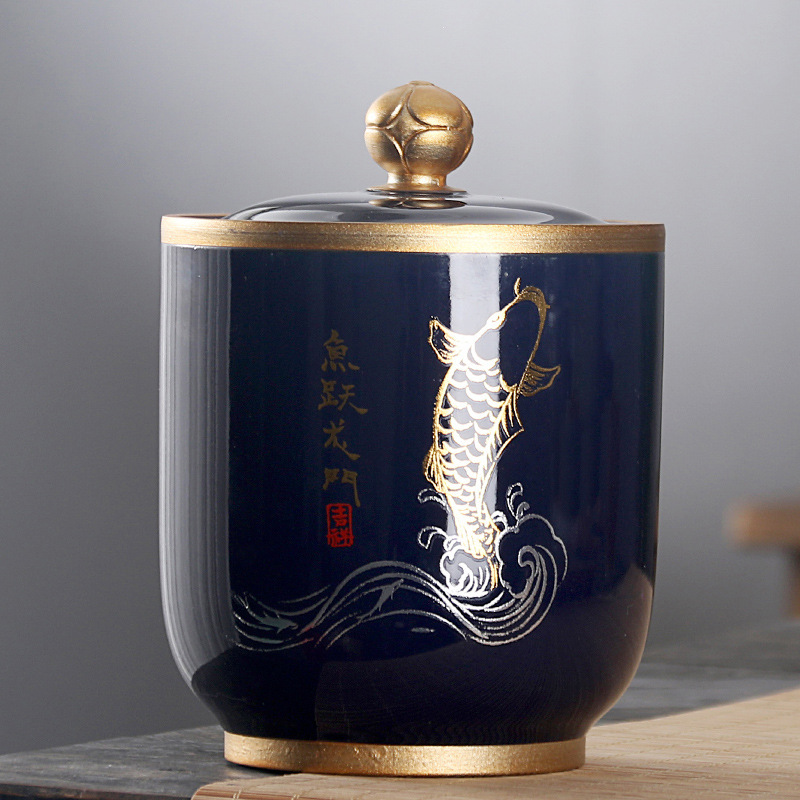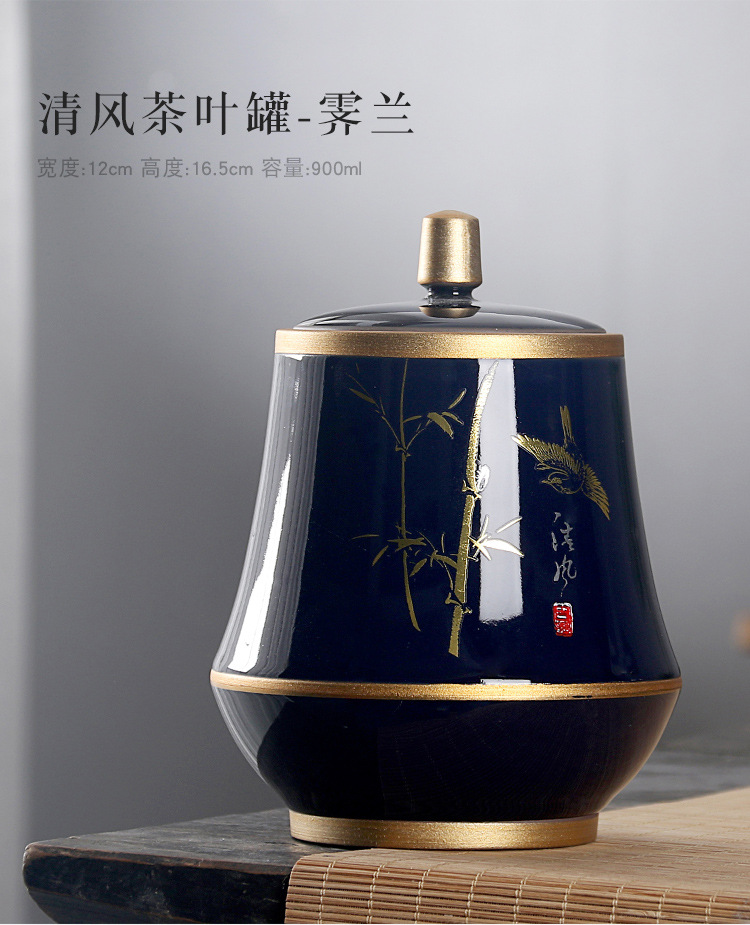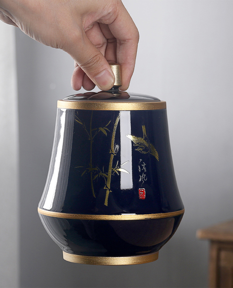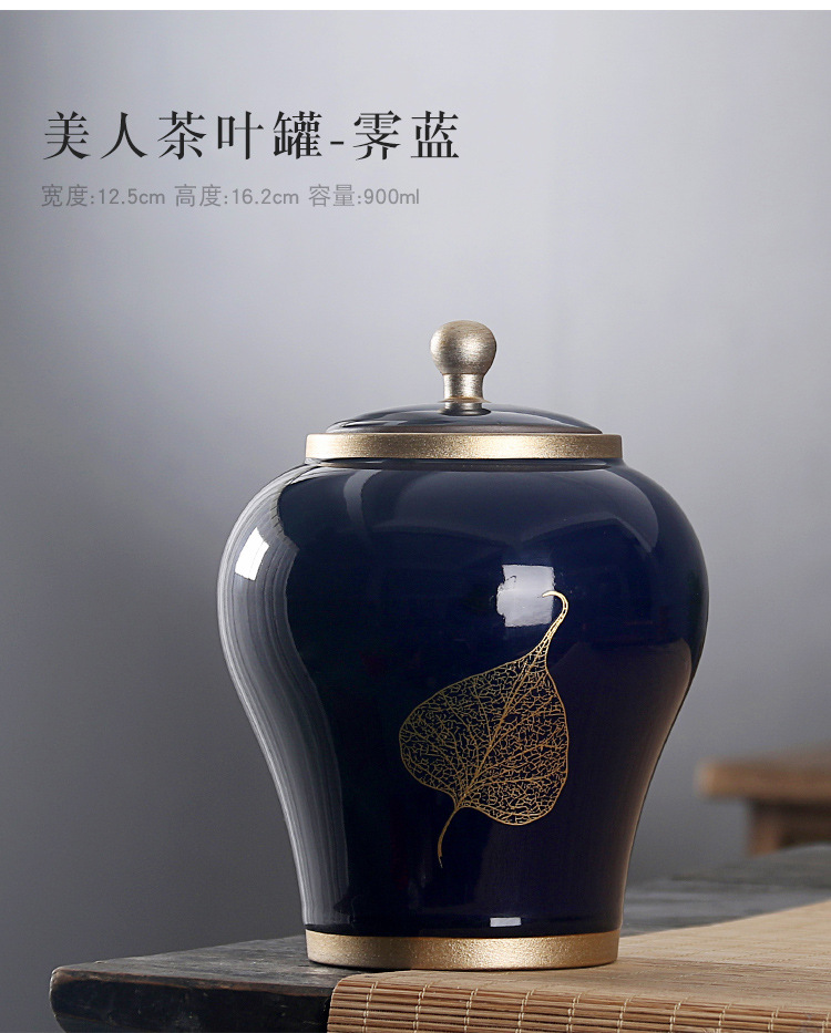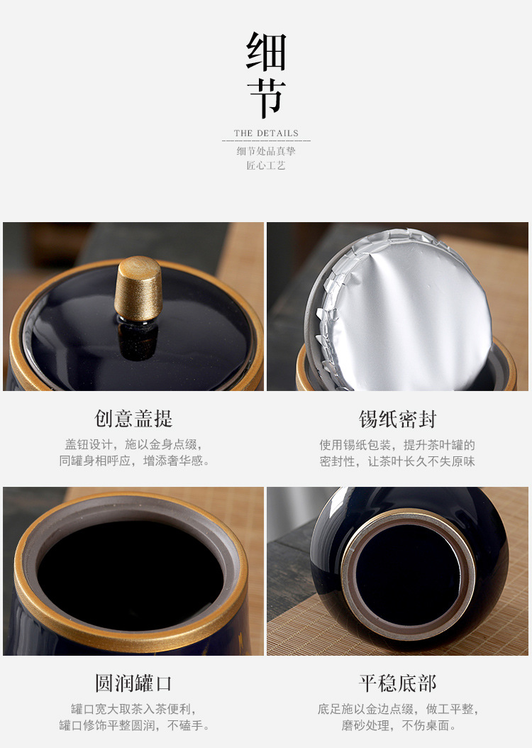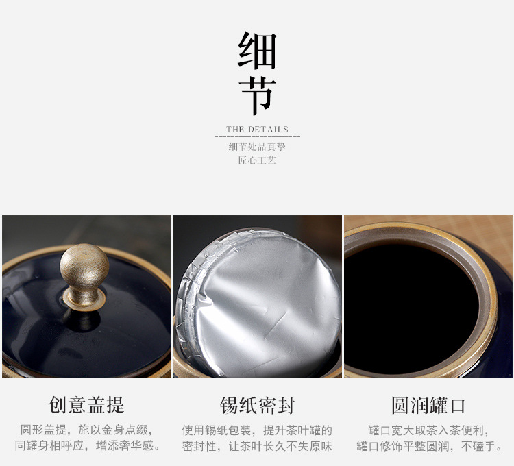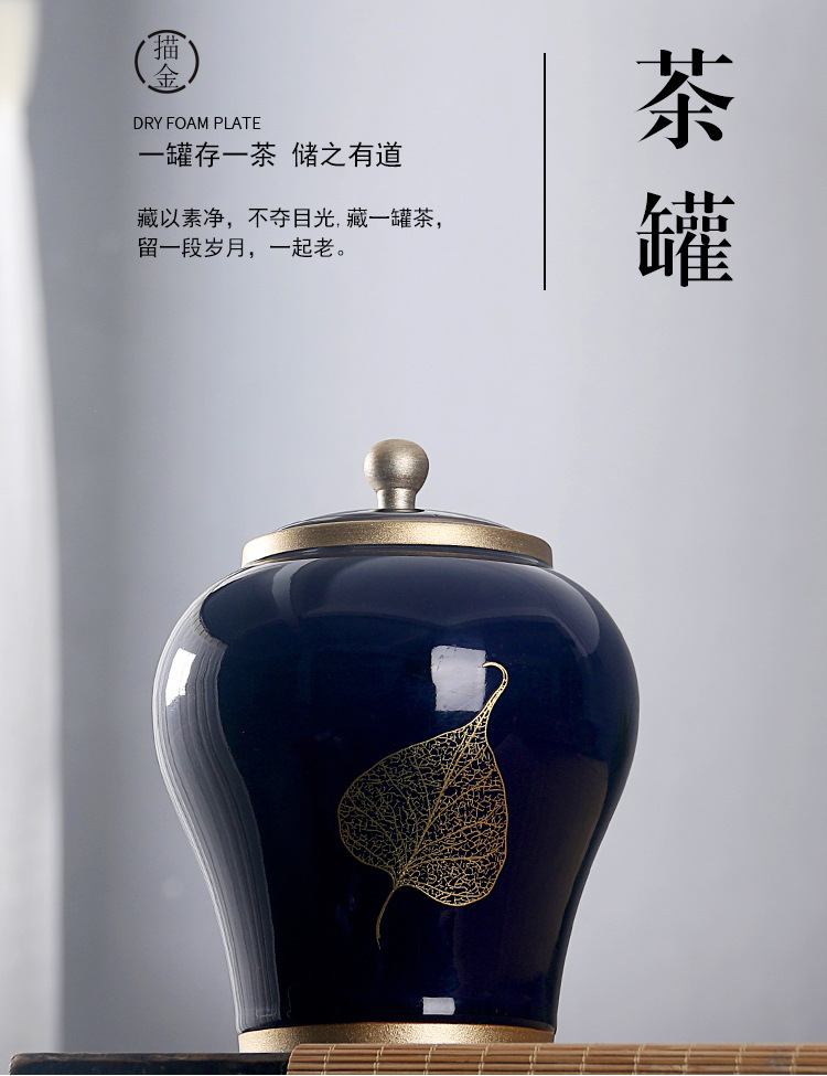 茶叶罐陶瓷霁蓝小号密封储物罐批发 手工描金通用防潮大茶叶包装罐定制