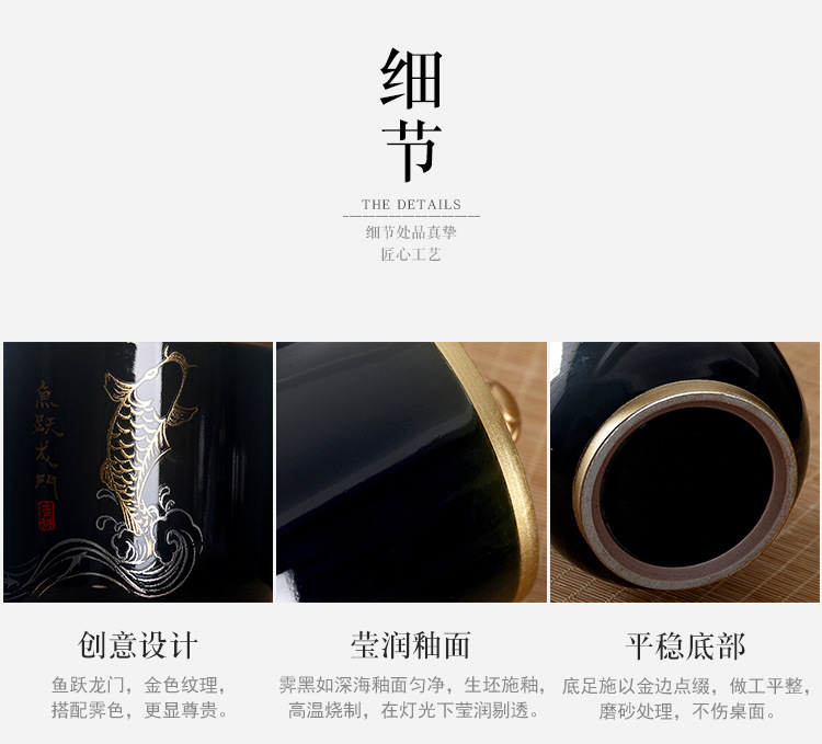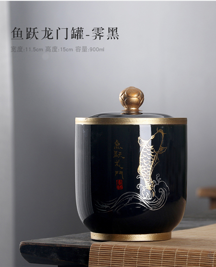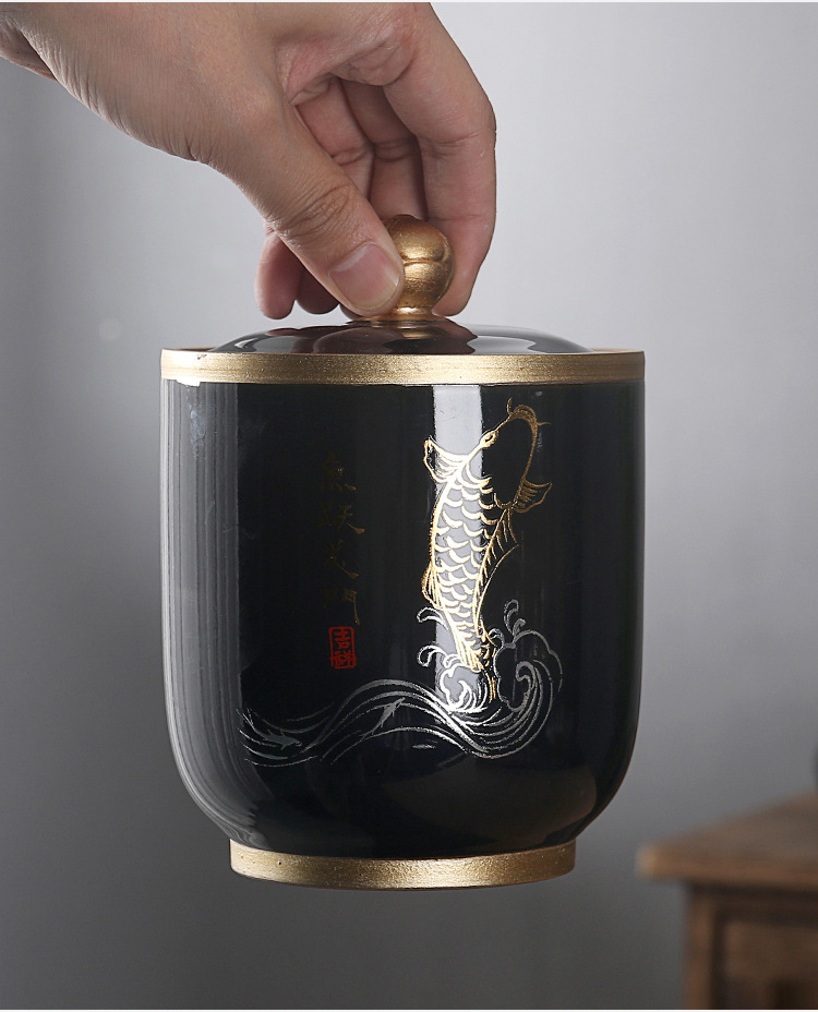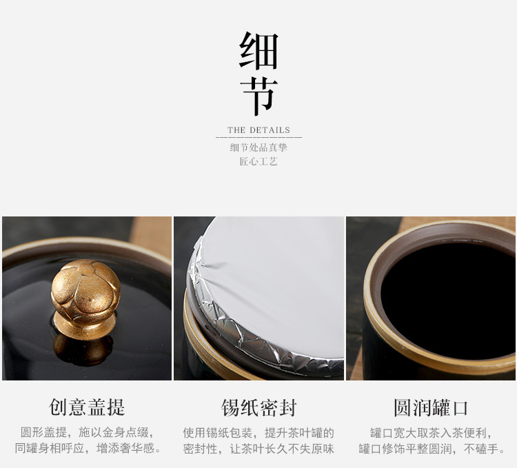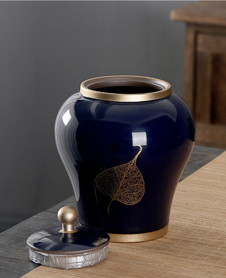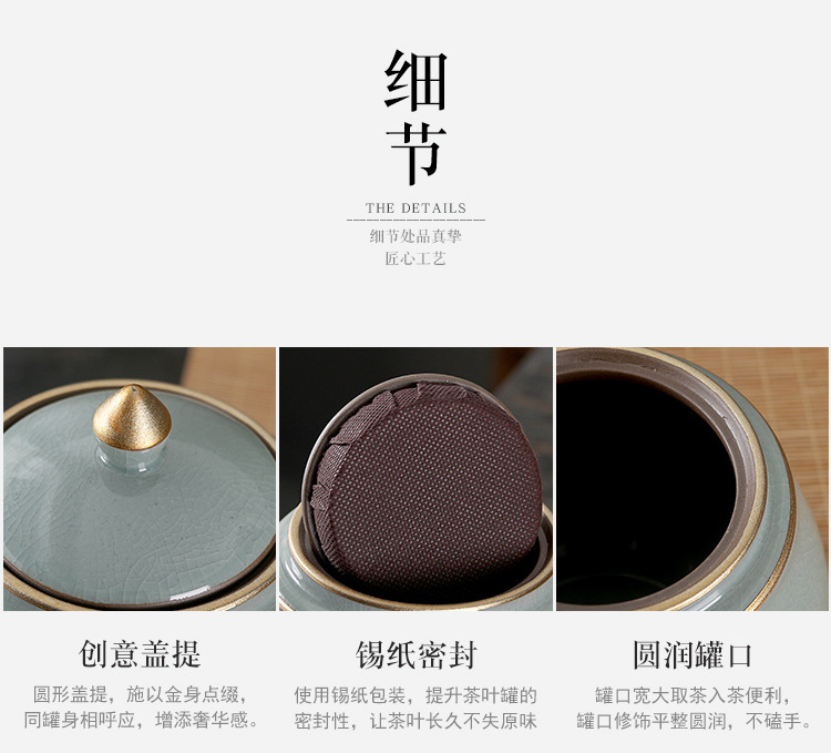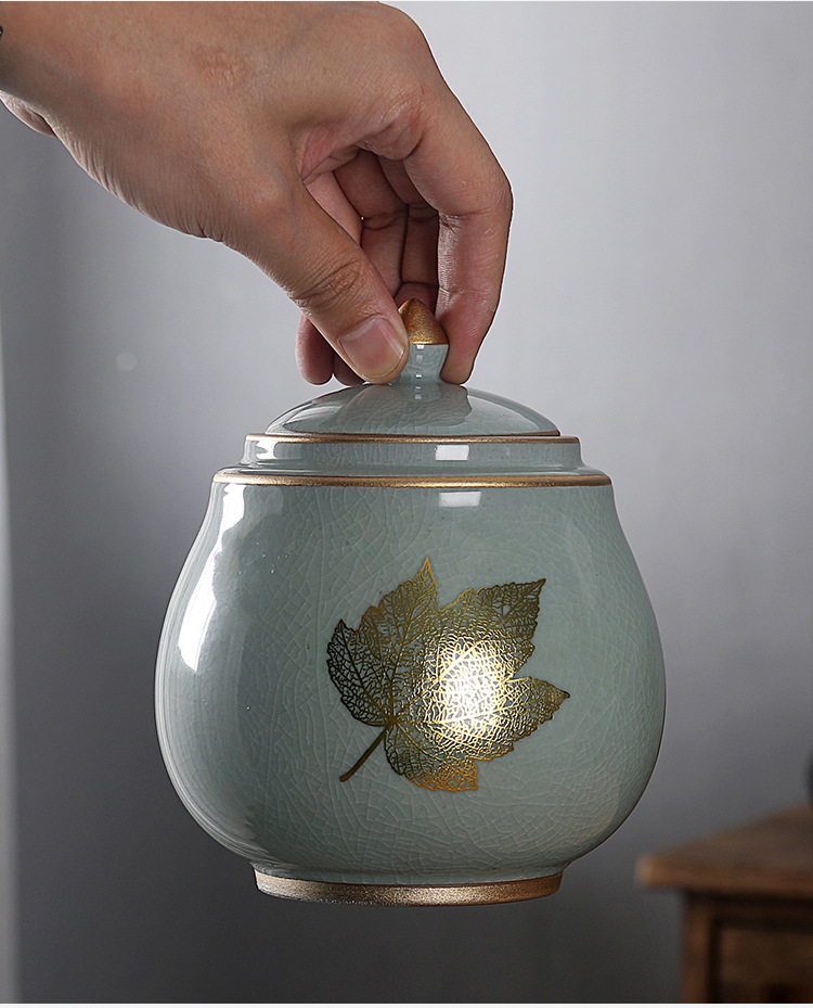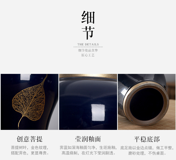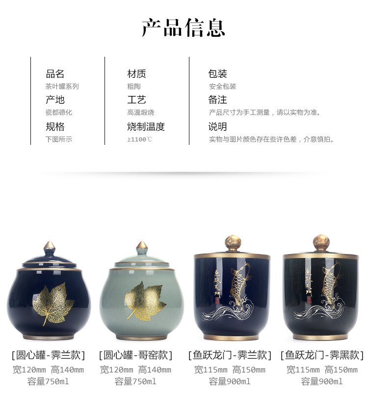 茶叶罐陶瓷霁蓝小号密封储物罐批发 手工描金通用防潮大茶叶包装罐定制