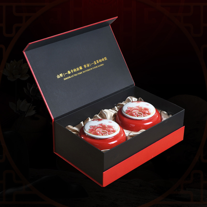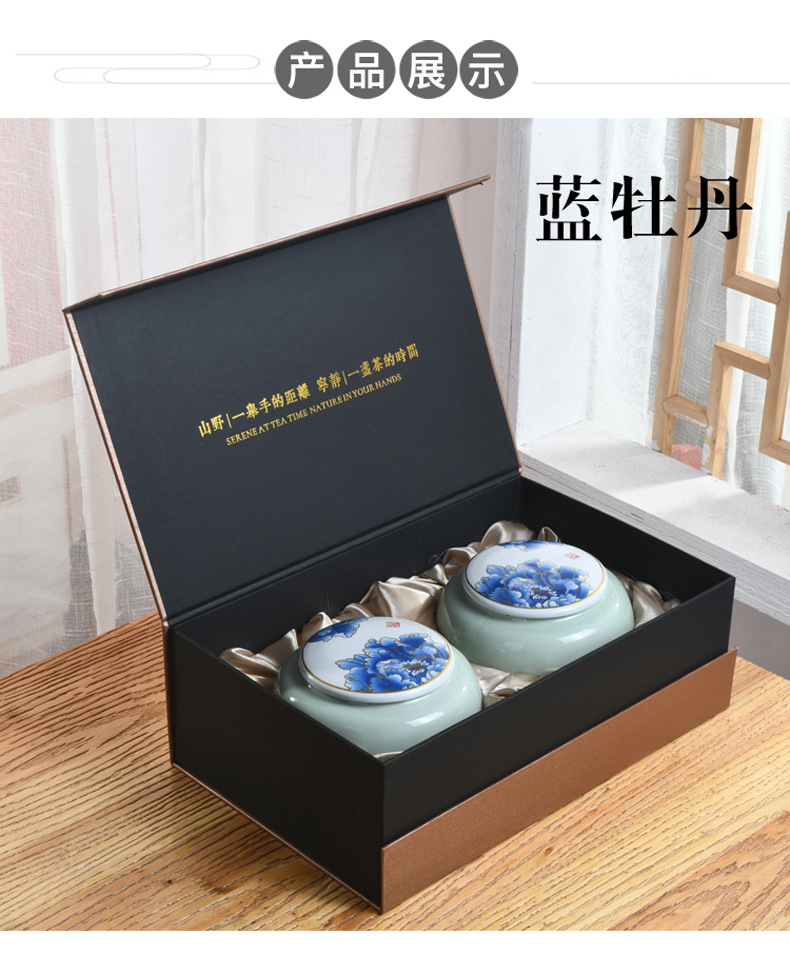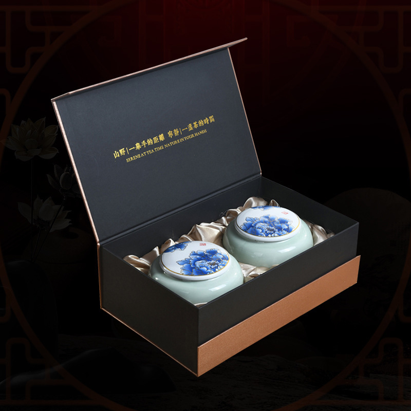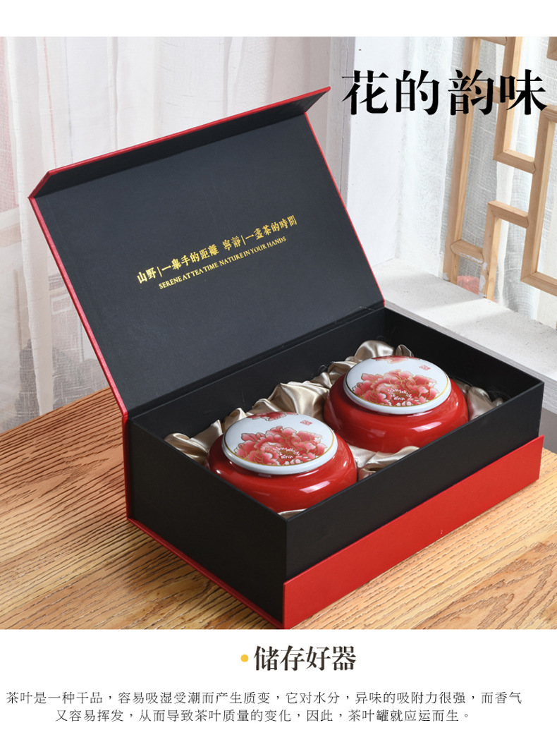 新中式商务礼品陶瓷密封茶叶罐礼盒装定制logo 茶具套装茶叶包装盒批发