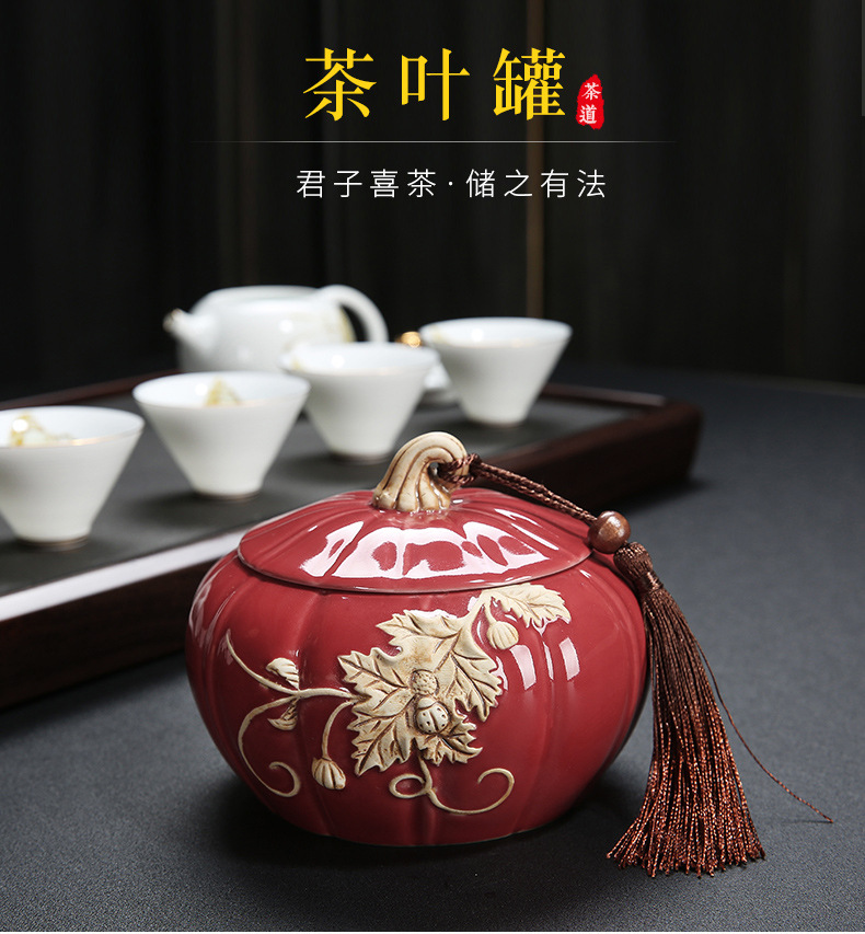 陶瓷茶叶罐密封大号装定制 粗陶普洱茶家用存储罐便携定制logo