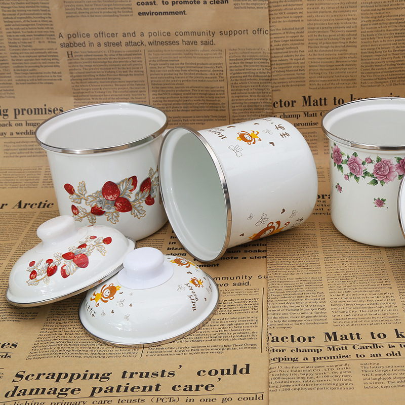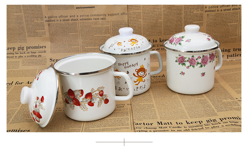 搪瓷牛奶杯定制 卡通时尚搪瓷牛奶杯彩绘搪瓷杯子批发 泡面杯牛奶杯鼎润搪瓷定做