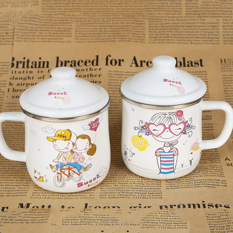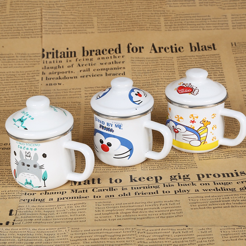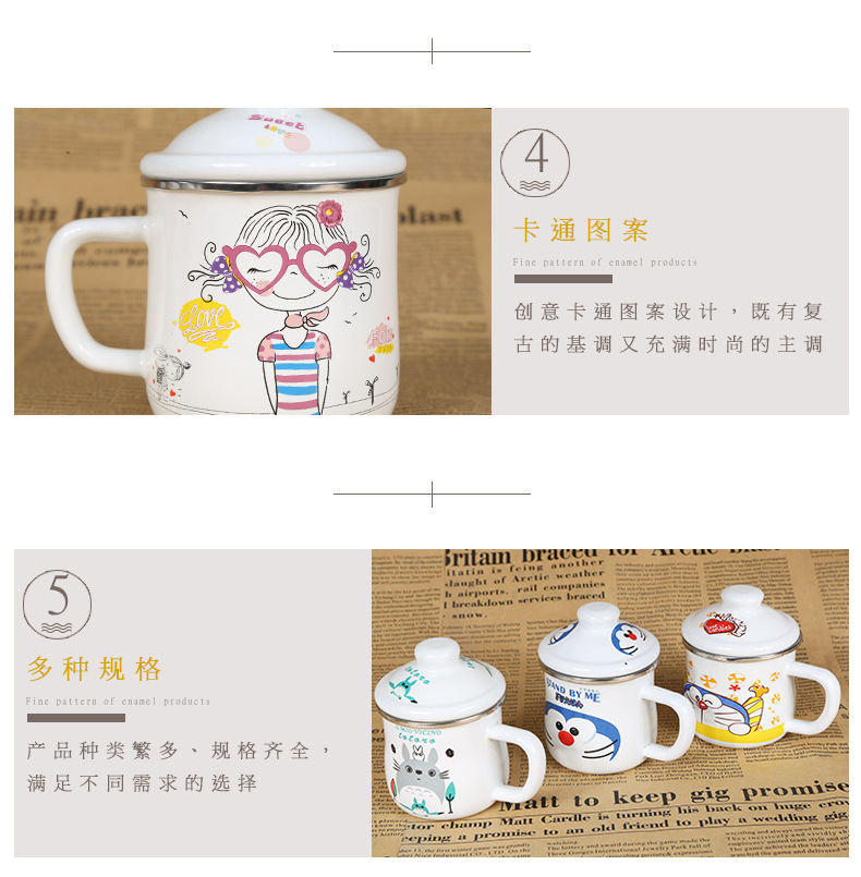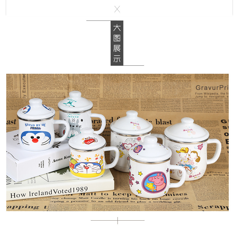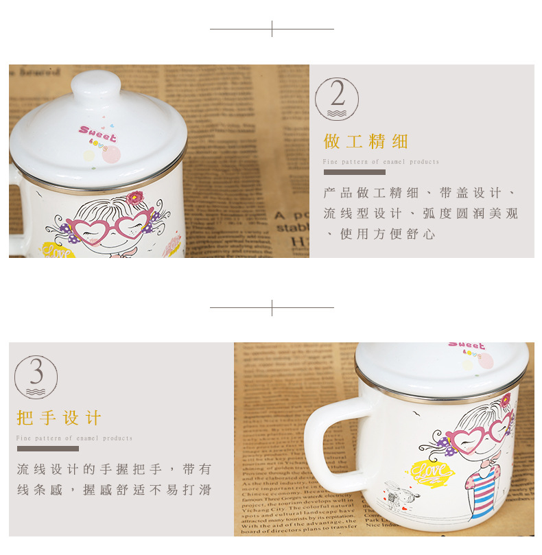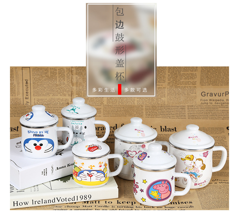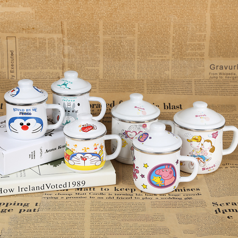 搪瓷盖杯搪瓷卡通儿童杯定制 带盖搪瓷杯子加厚带盖小号搪瓷杯茶缸