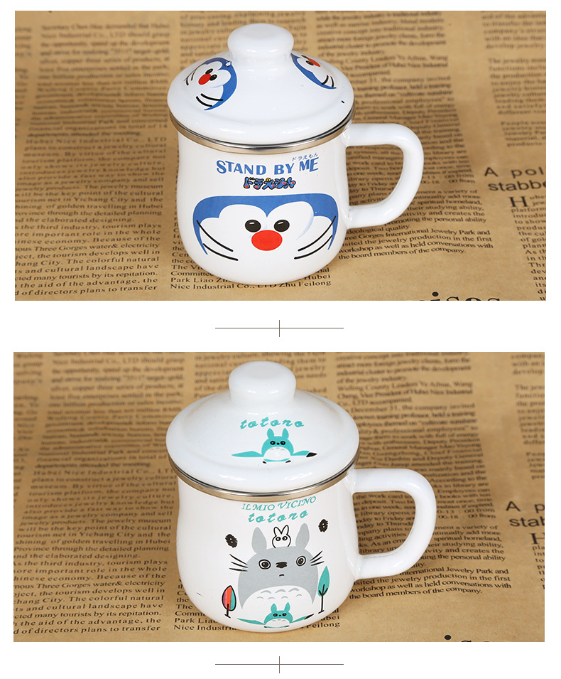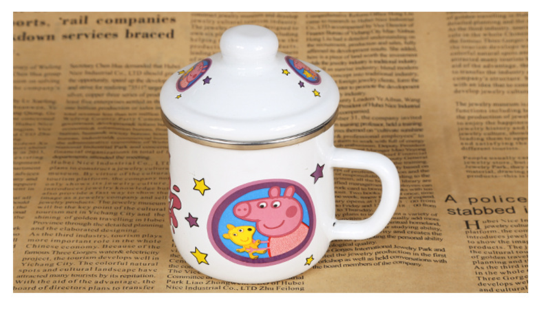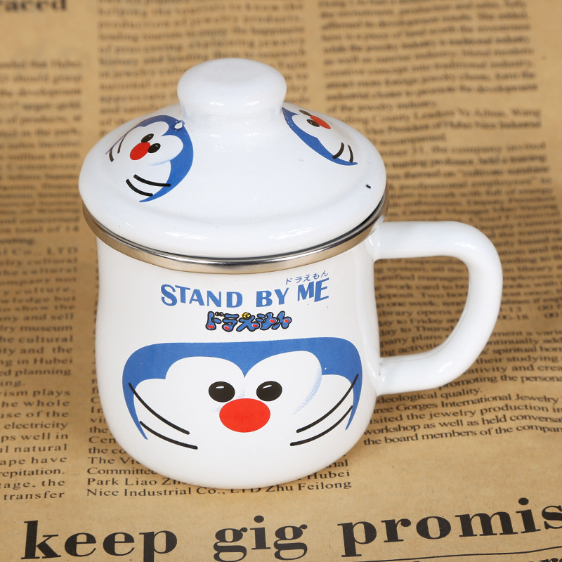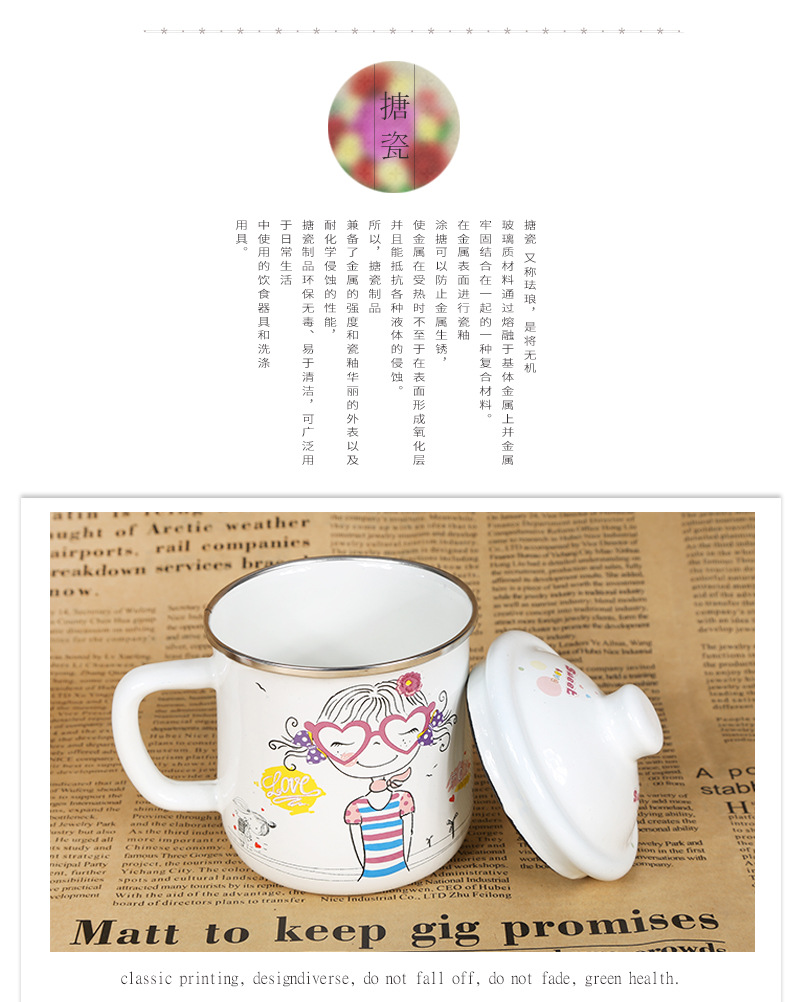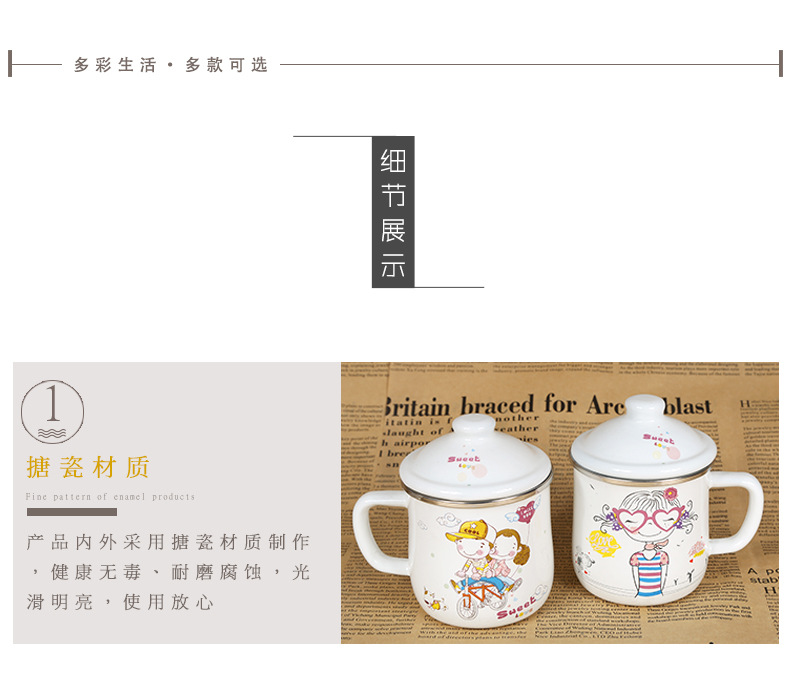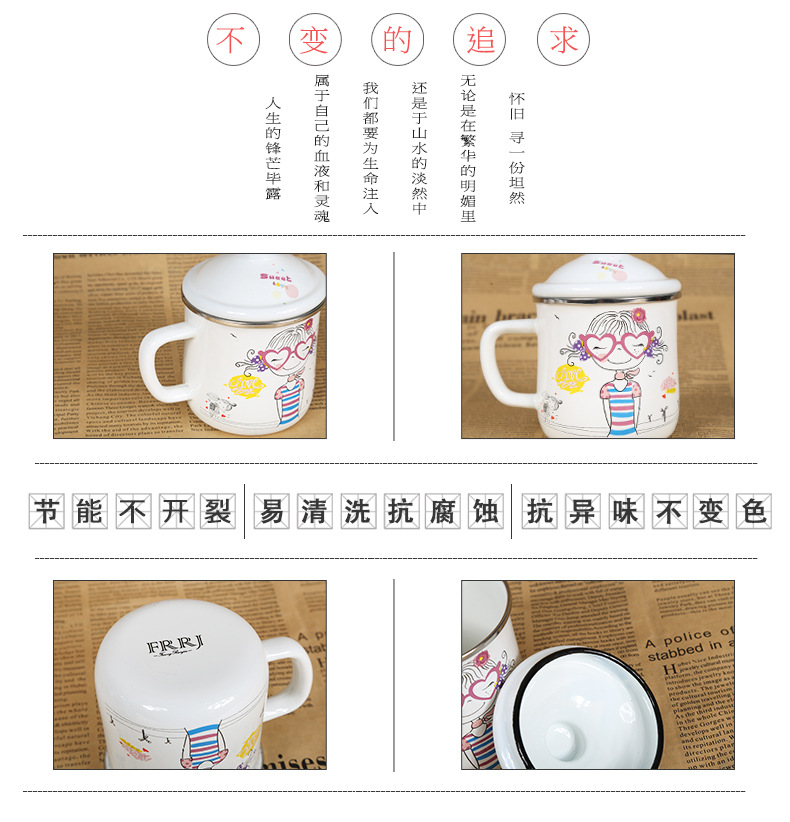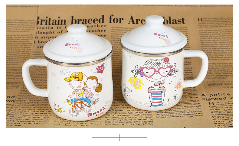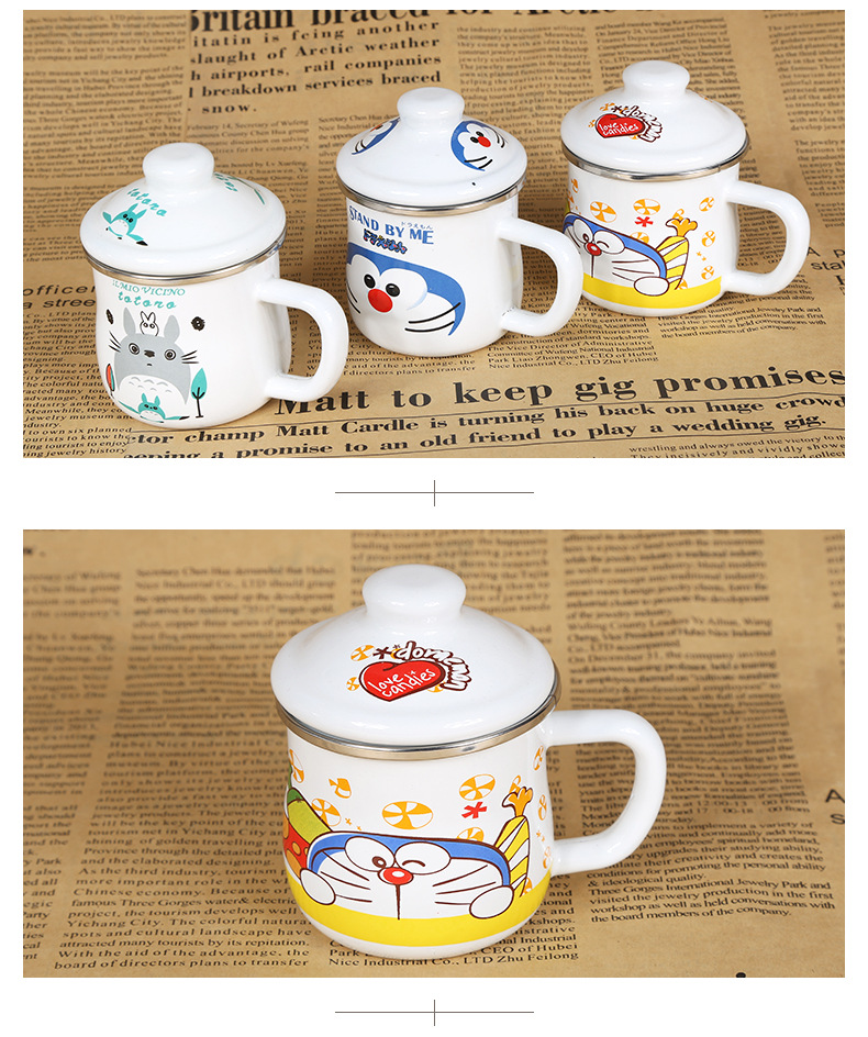搪瓷盖杯搪瓷卡通儿童杯定制 带盖搪瓷杯子加厚带盖小号搪瓷杯茶缸