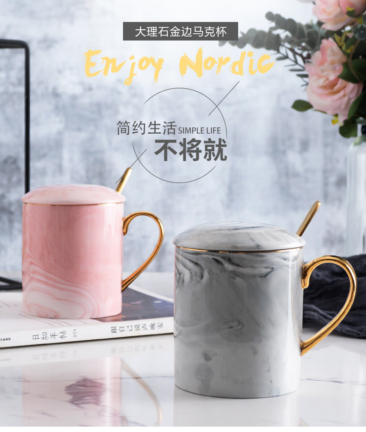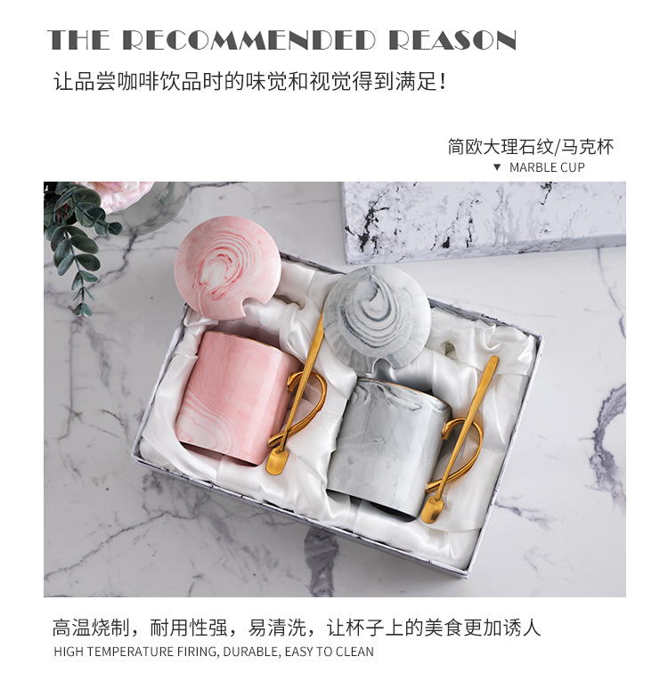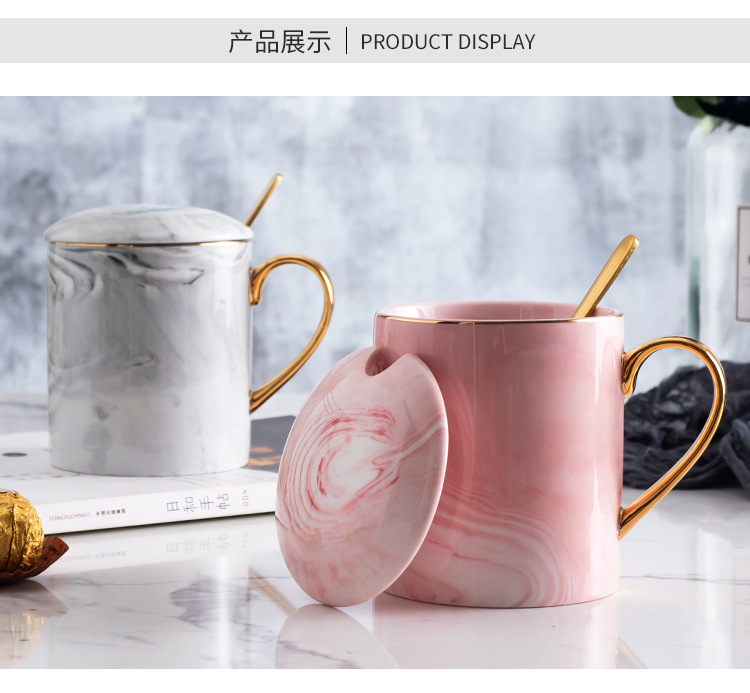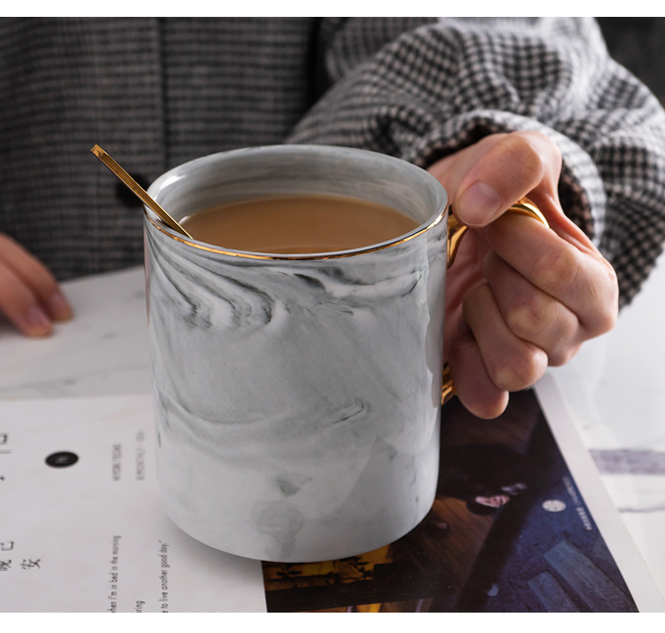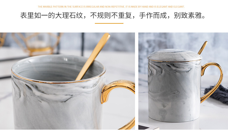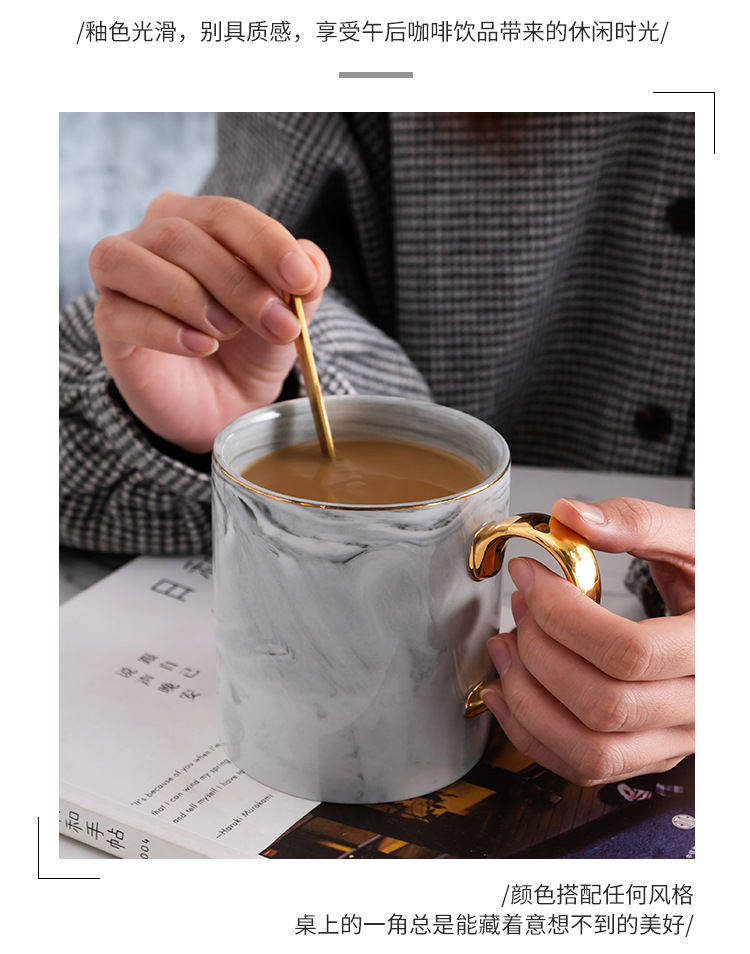 大理石纹陶瓷杯北欧骨瓷情侣水杯批发 办公室创意马克杯定制LOGO