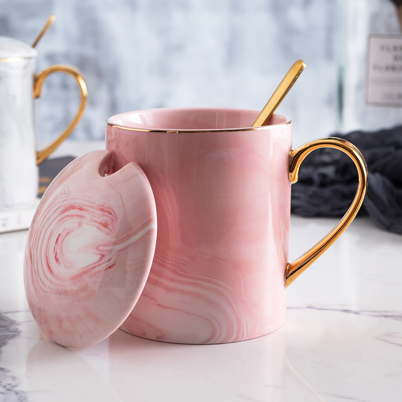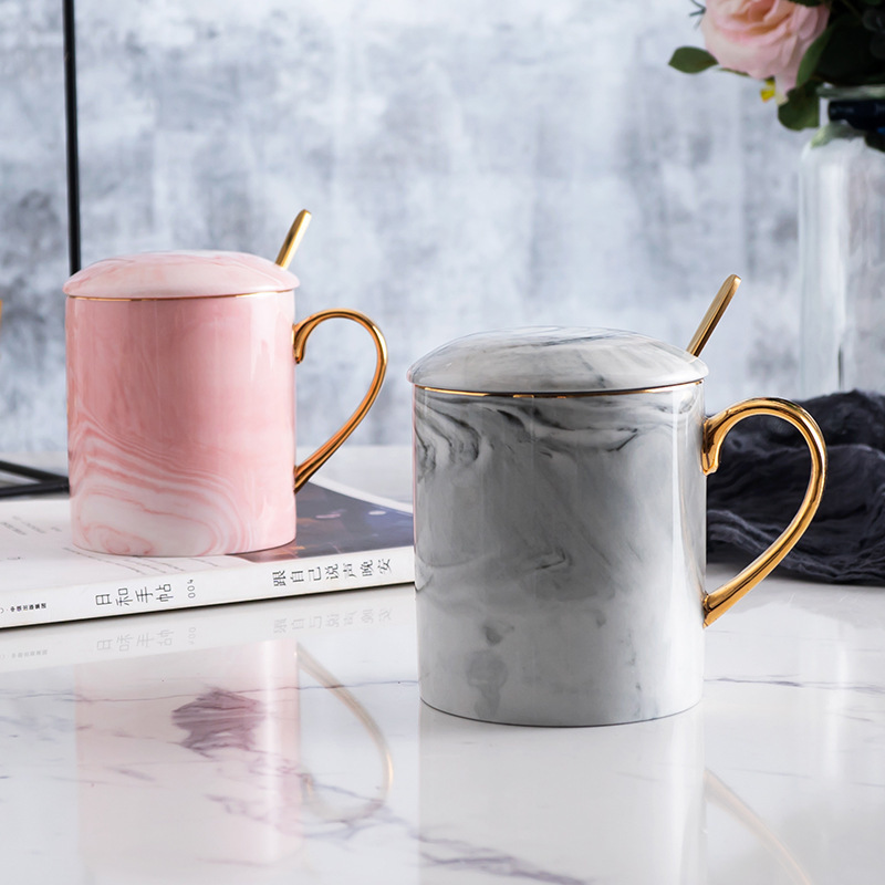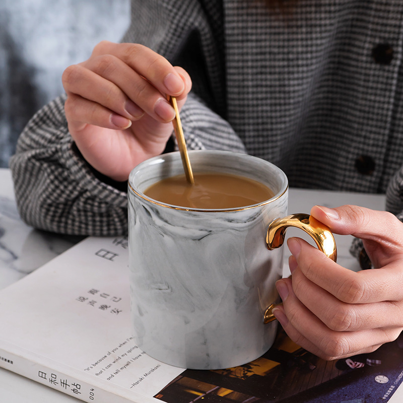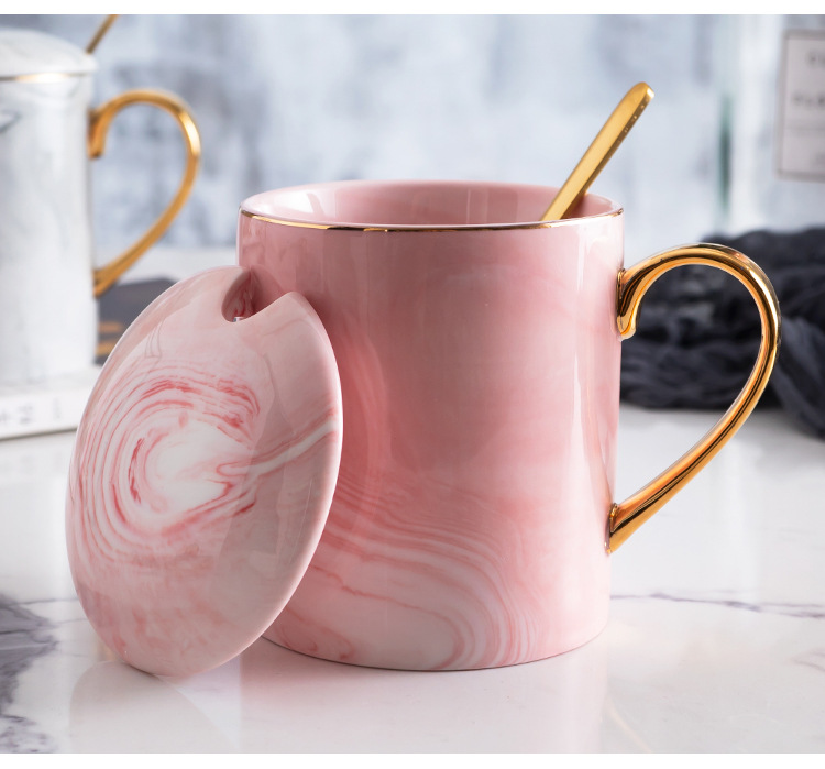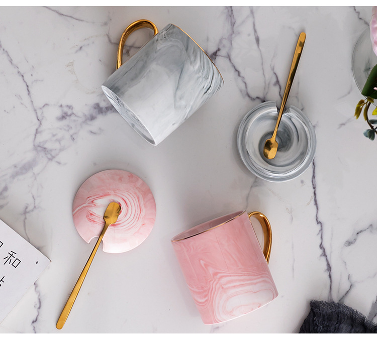 大理石纹陶瓷杯北欧骨瓷情侣水杯批发 办公室创意马克杯定制LOGO