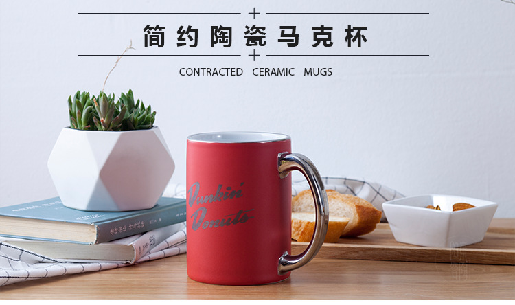 创意卡通大号马克杯礼品定制logo 色釉电镀陶瓷杯马克杯带手柄定制