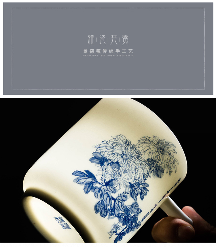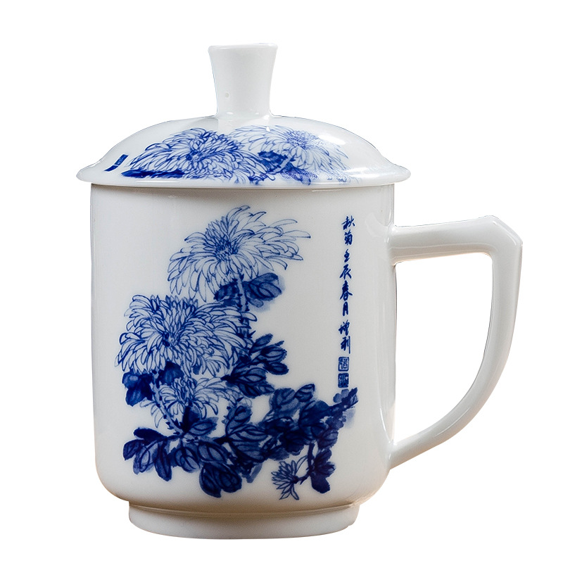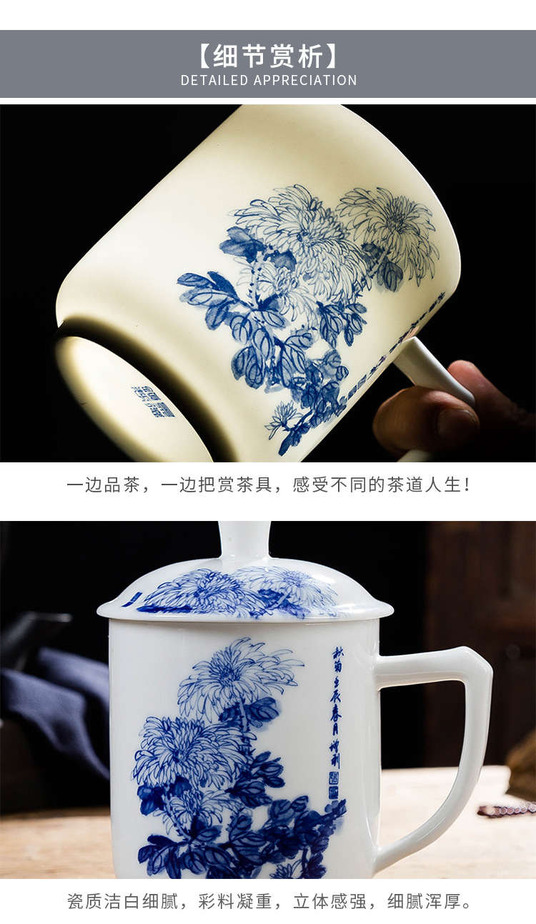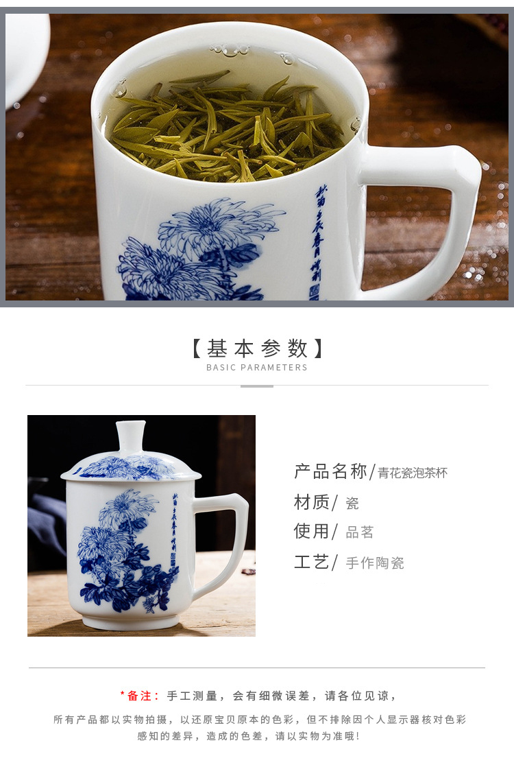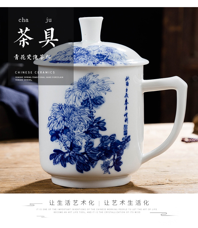 景德镇中式茶杯陶瓷办公会议杯青花瓷泡茶杯带盖定制