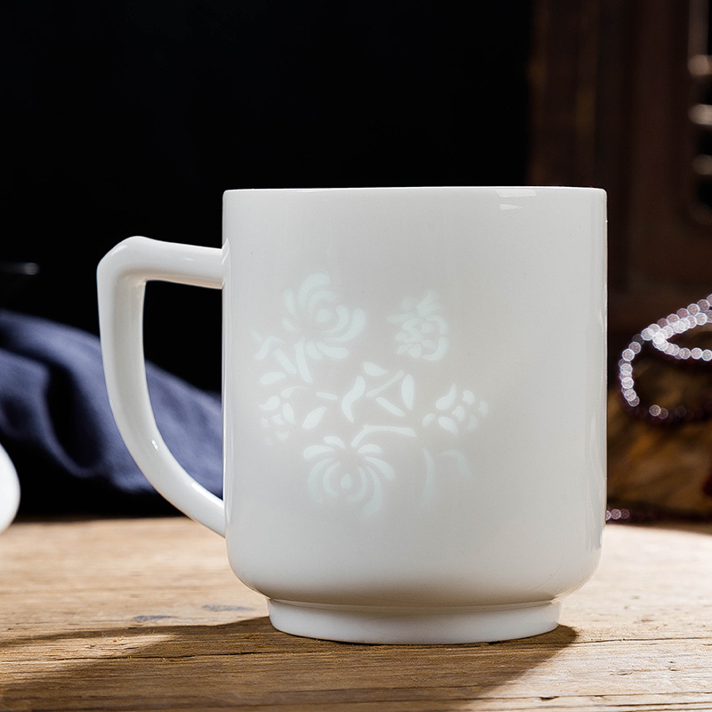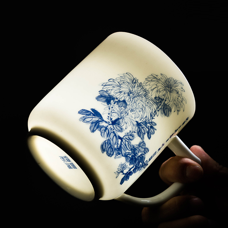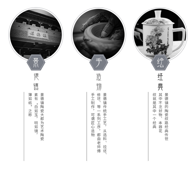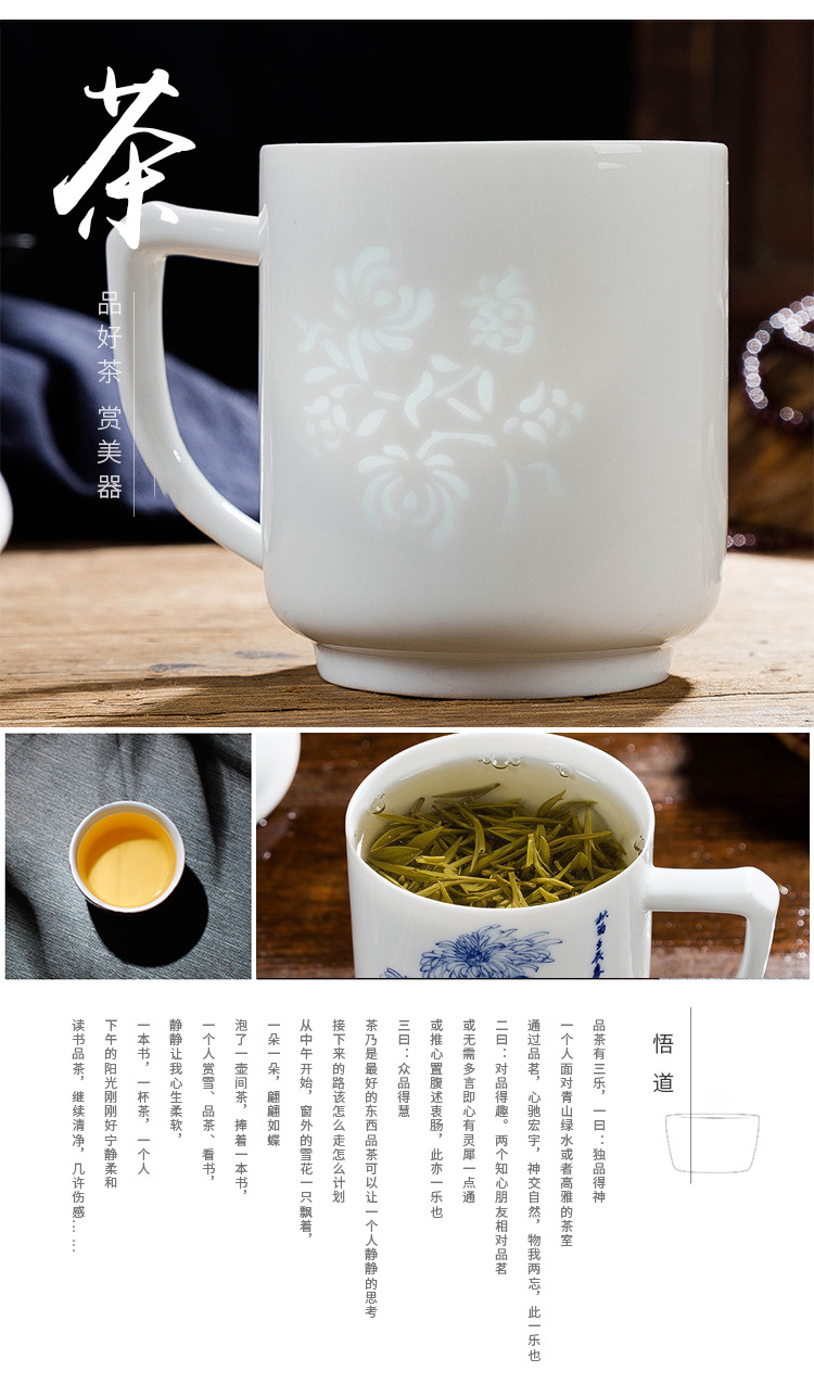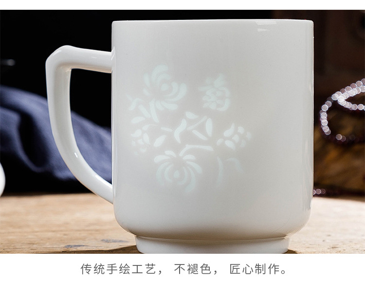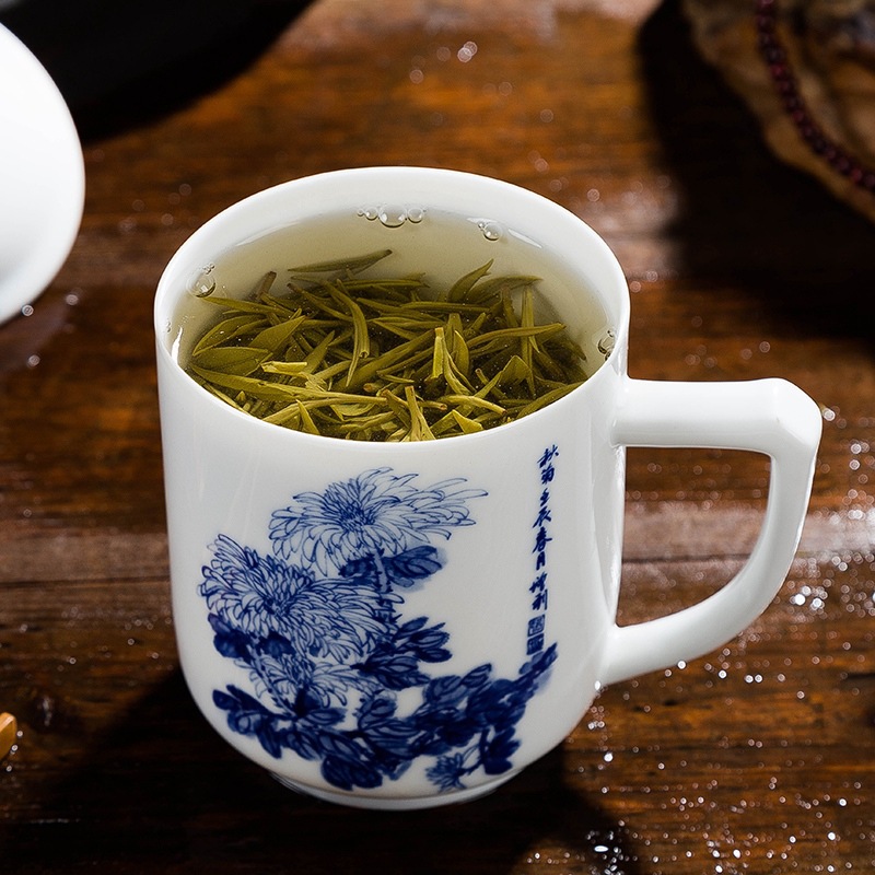 景德镇中式茶杯陶瓷办公会议杯青花瓷泡茶杯带盖定制
