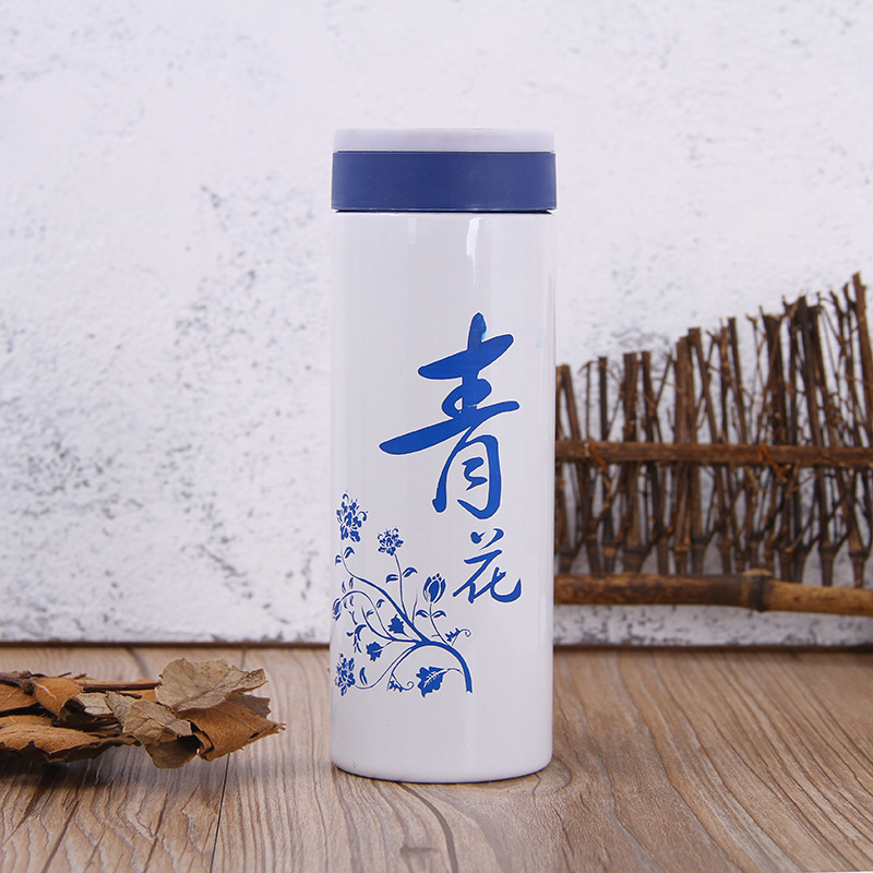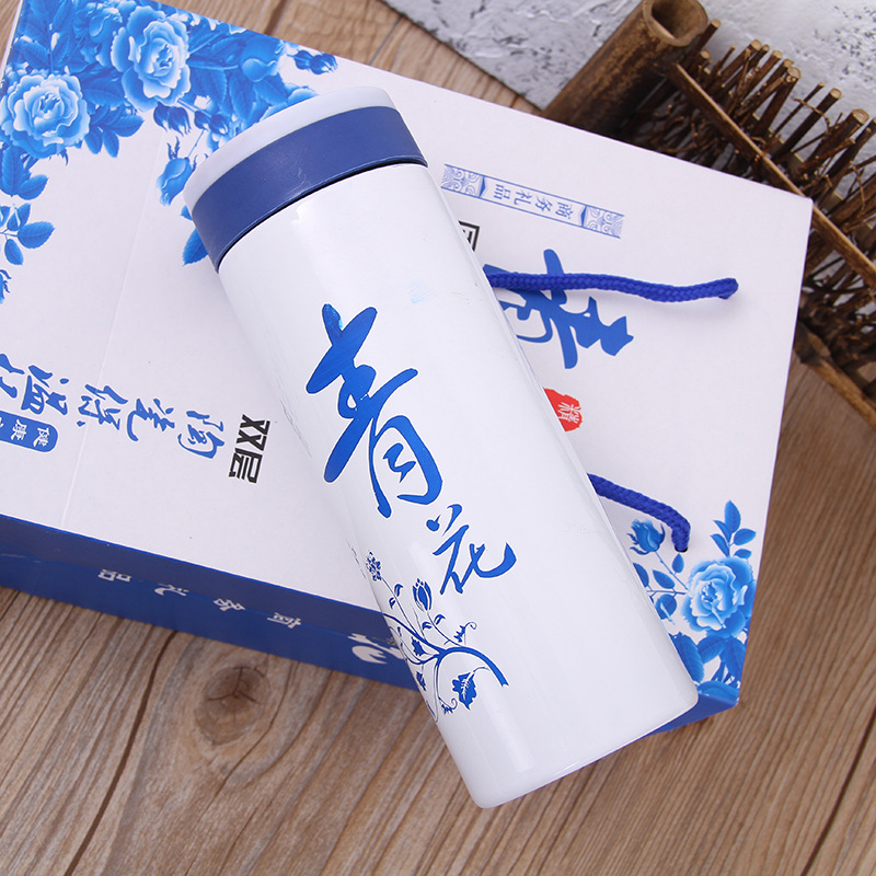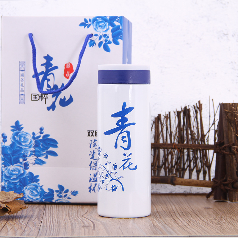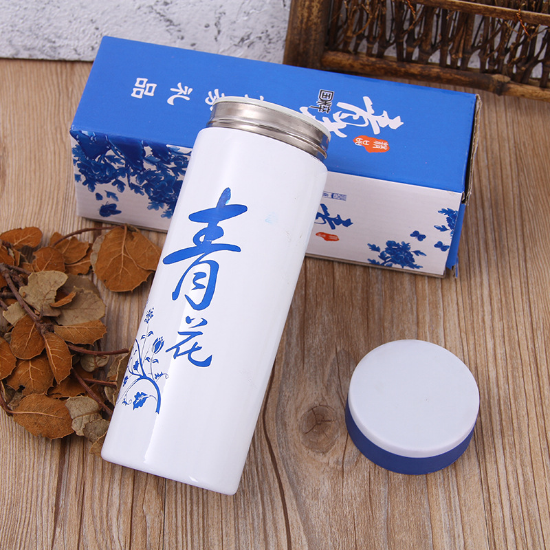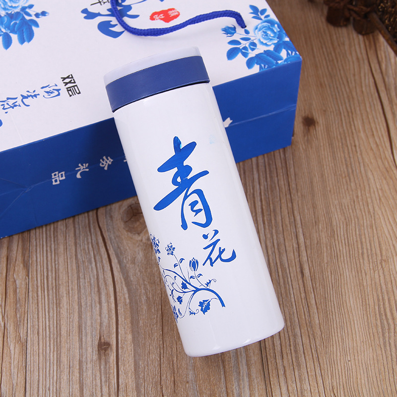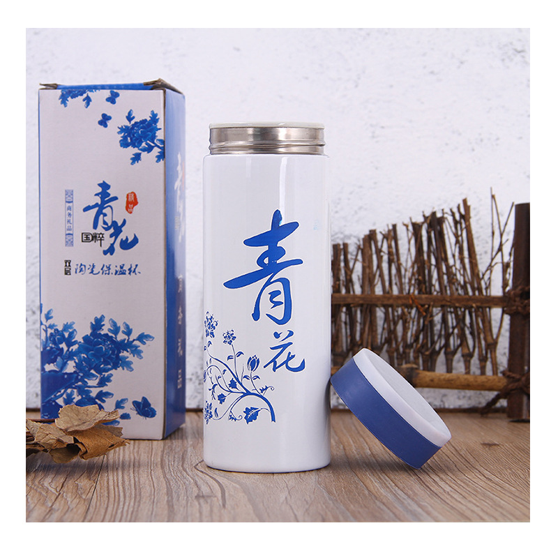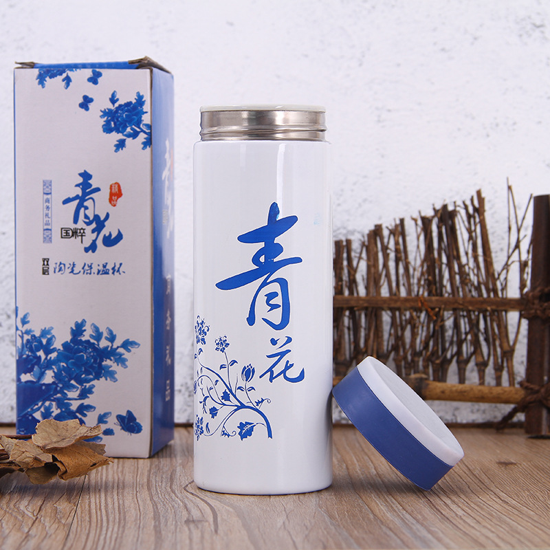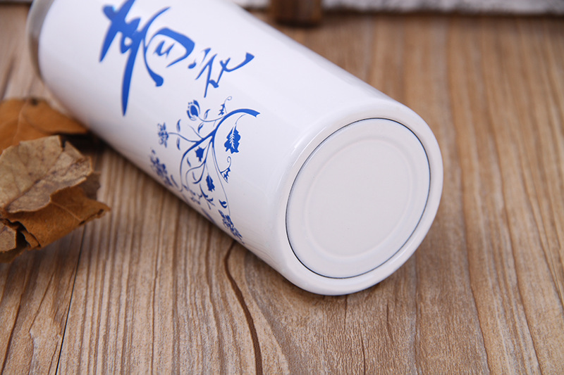 青花瓷水杯陶瓷保温杯定制 陶瓷杯带盖青花杯定制礼品logo