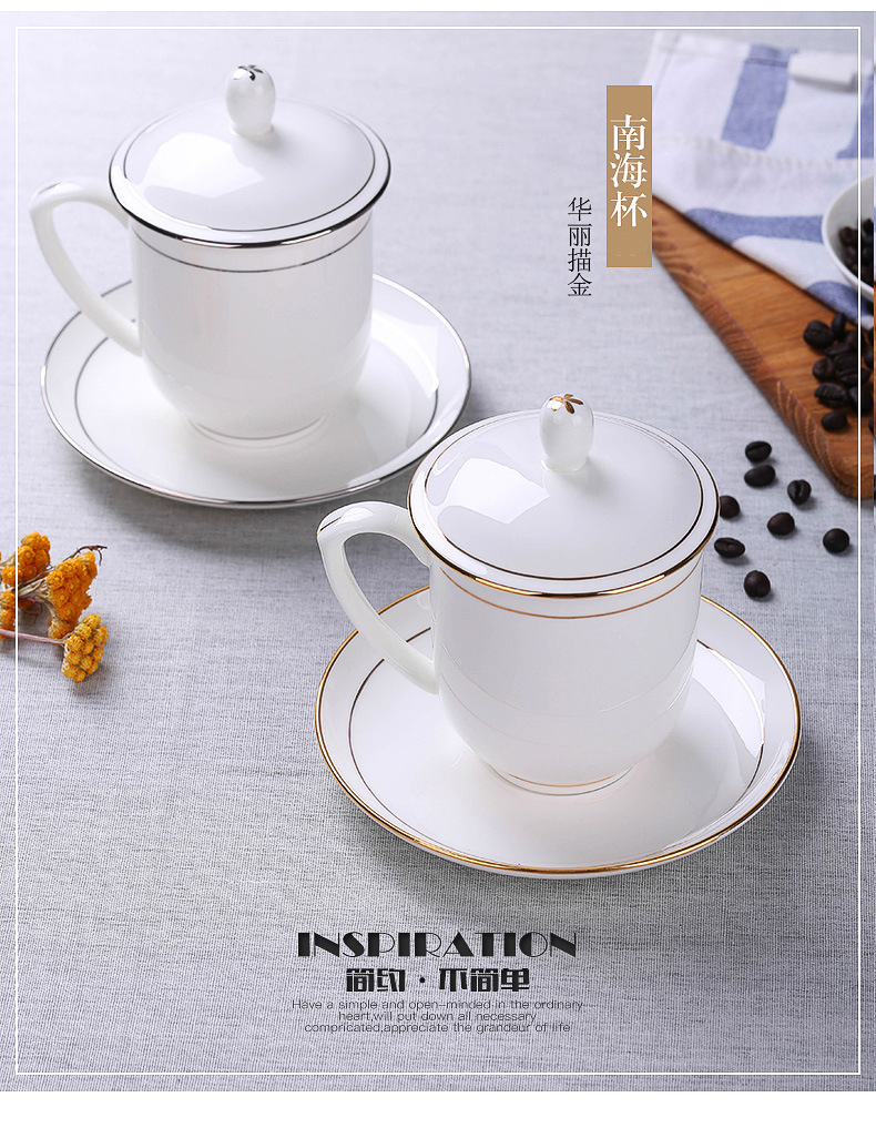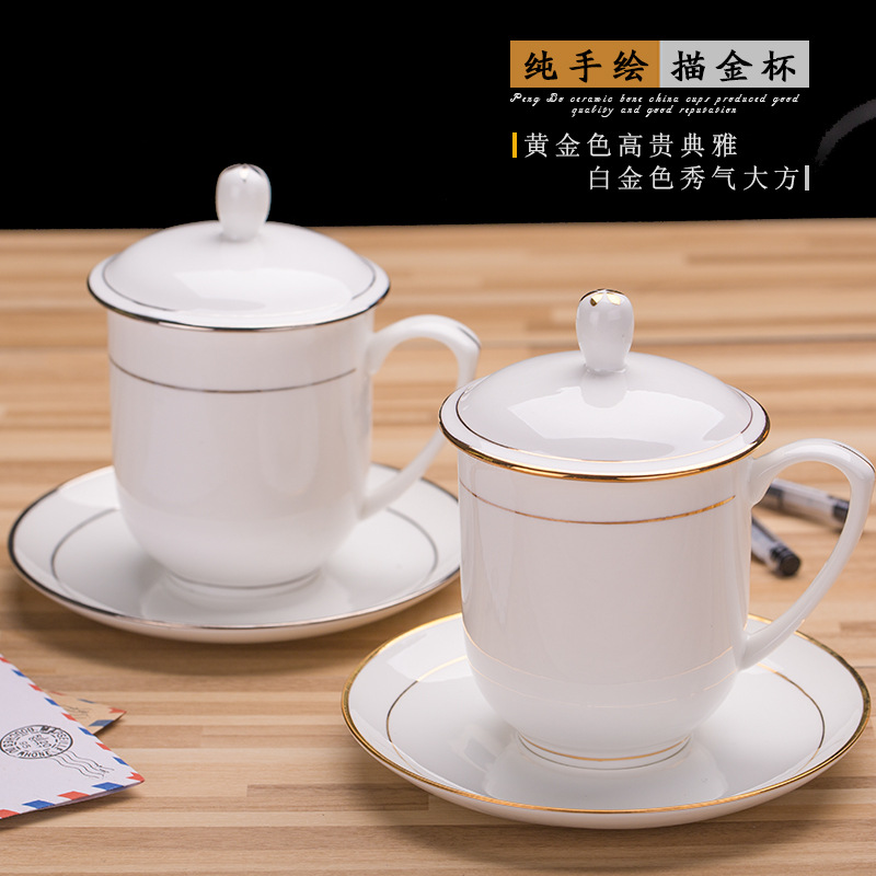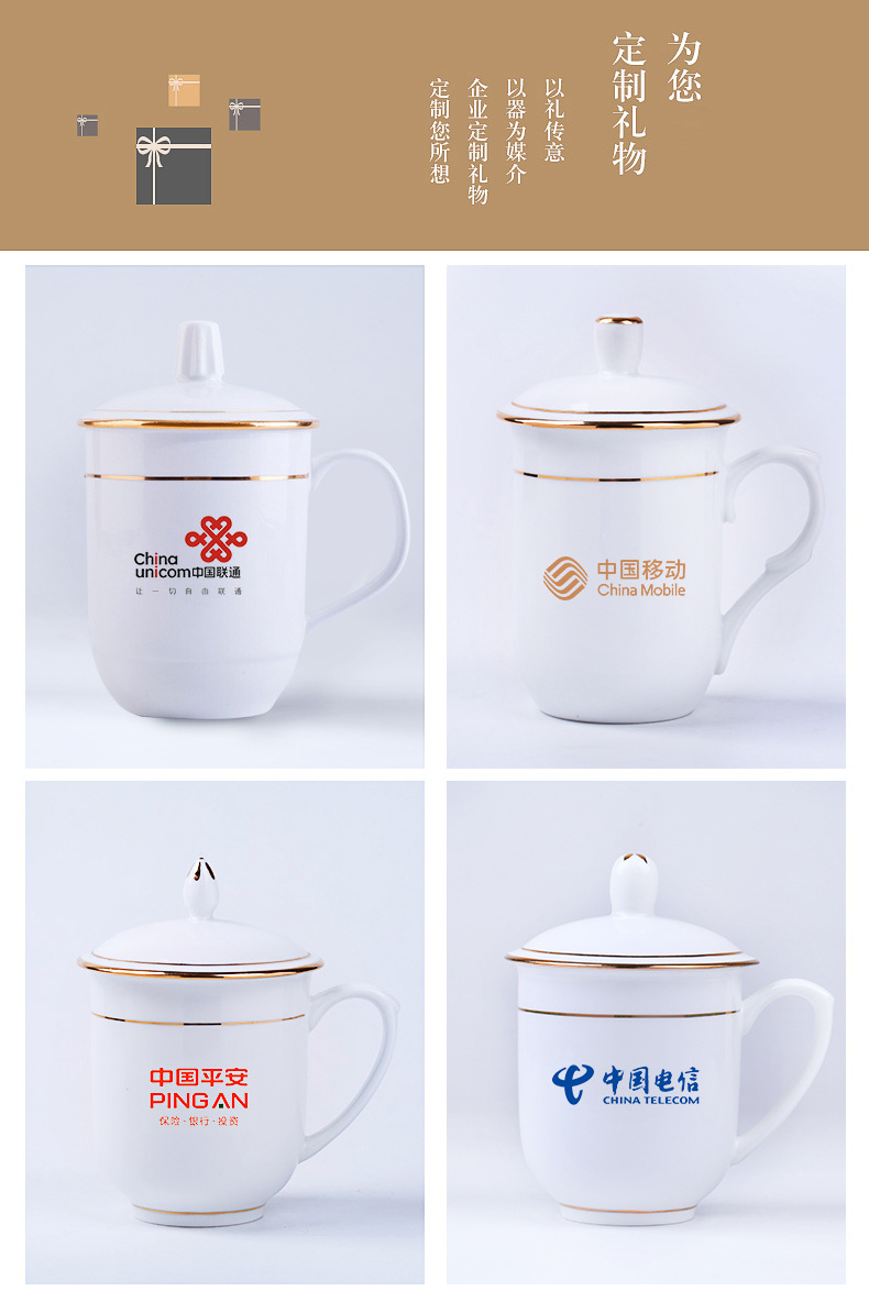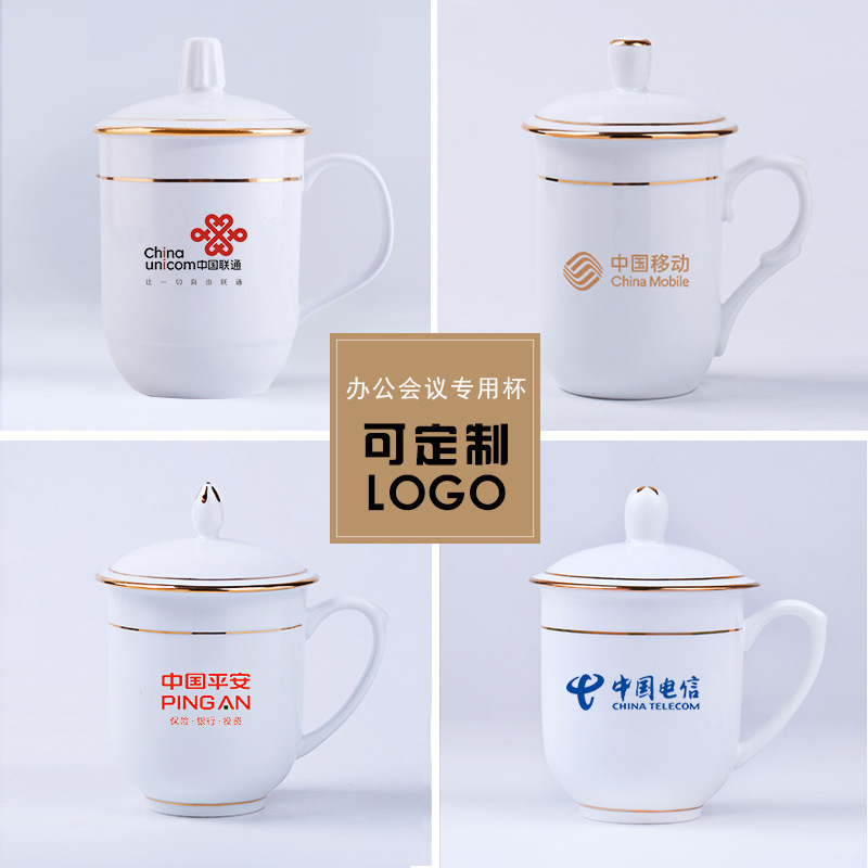 带盖陶瓷杯水杯会议杯办公杯子定制 杯具套装定制logo实用礼品