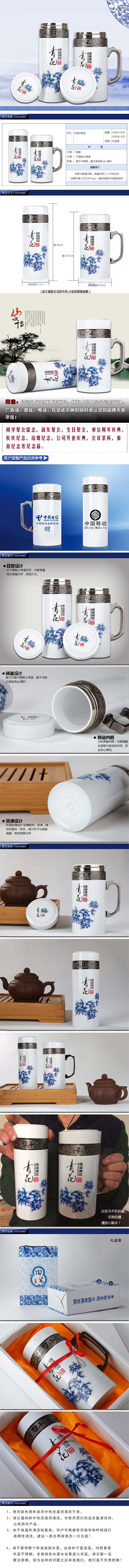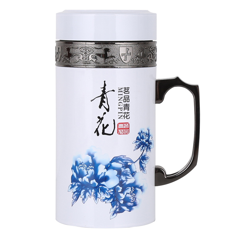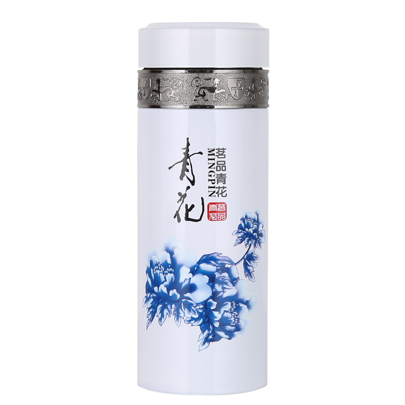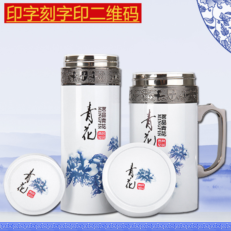 青花瓷保温杯带盖陶瓷杯定制 陶瓷保温杯礼品杯水杯定制