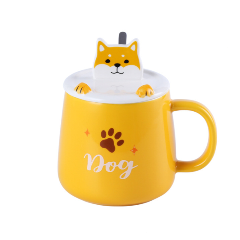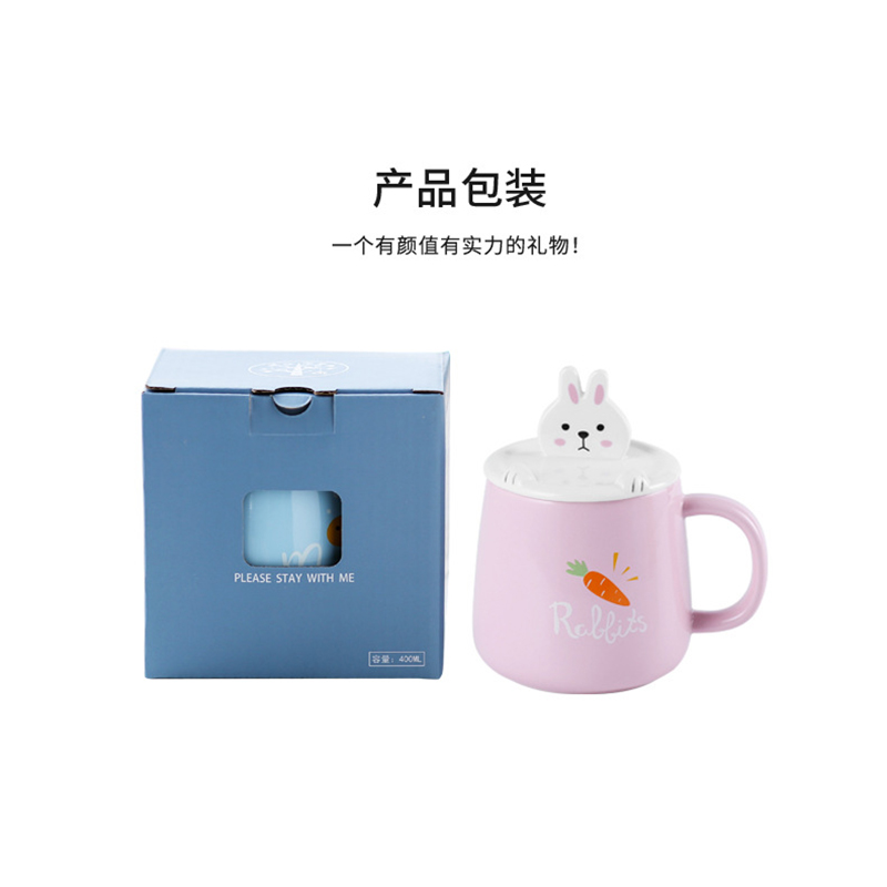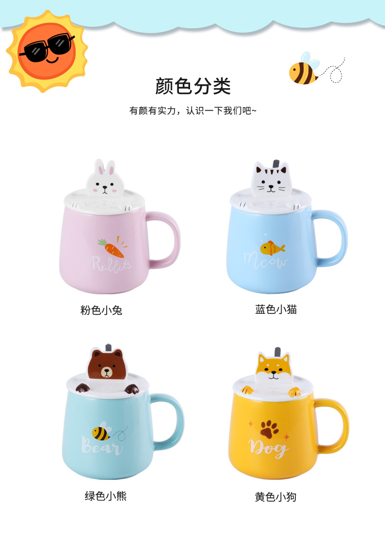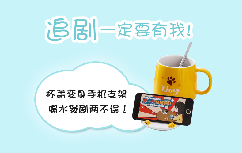 动物手机支架马克杯 带盖勺陶瓷杯子 可爱卡通办公室生日礼物杯