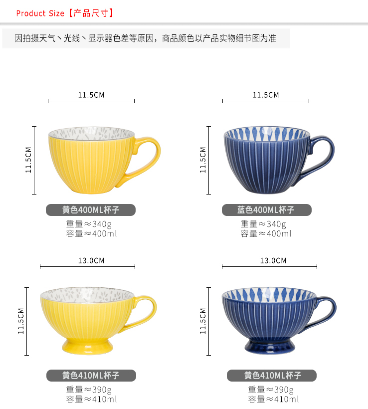 陶瓷大肚马克杯 带把牛奶杯子 防烫咖啡杯 家用奶茶水果杯麦片杯