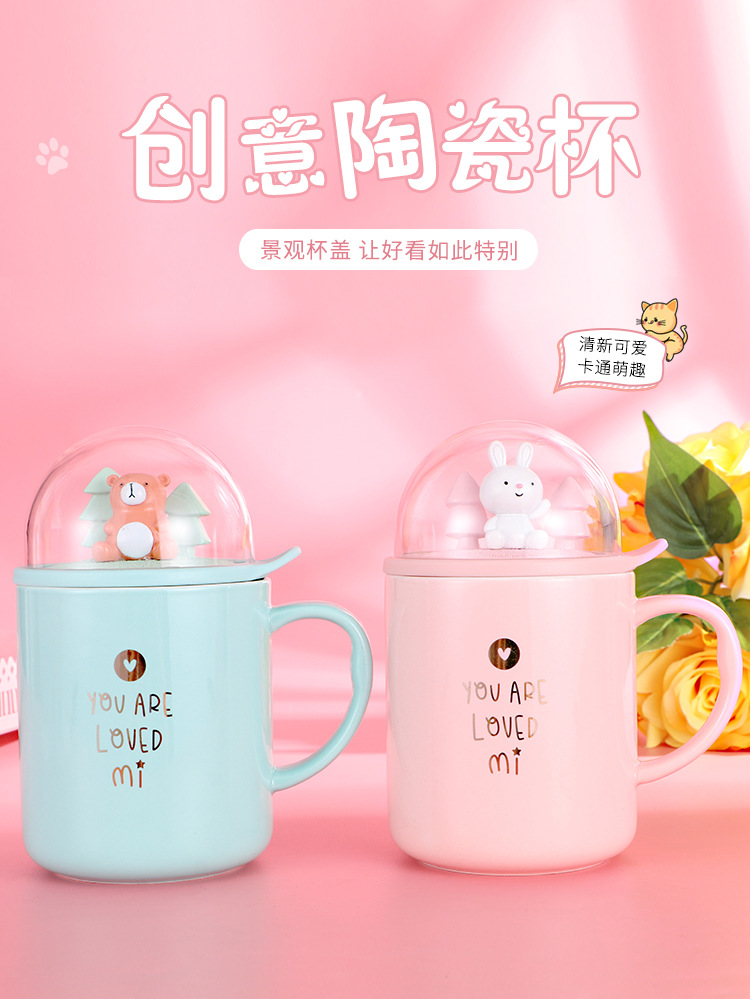 陶瓷杯定制logo 促销小礼品杯定做批发 可爱创意陶瓷公仔水杯马克杯子