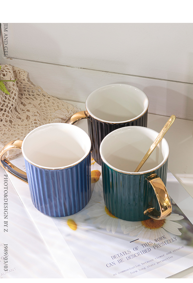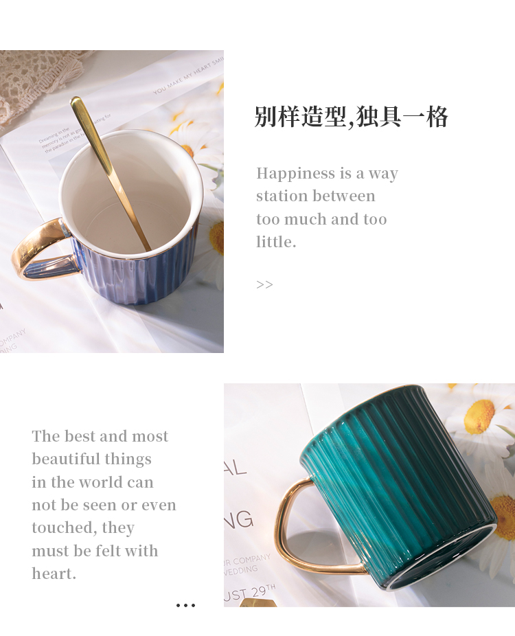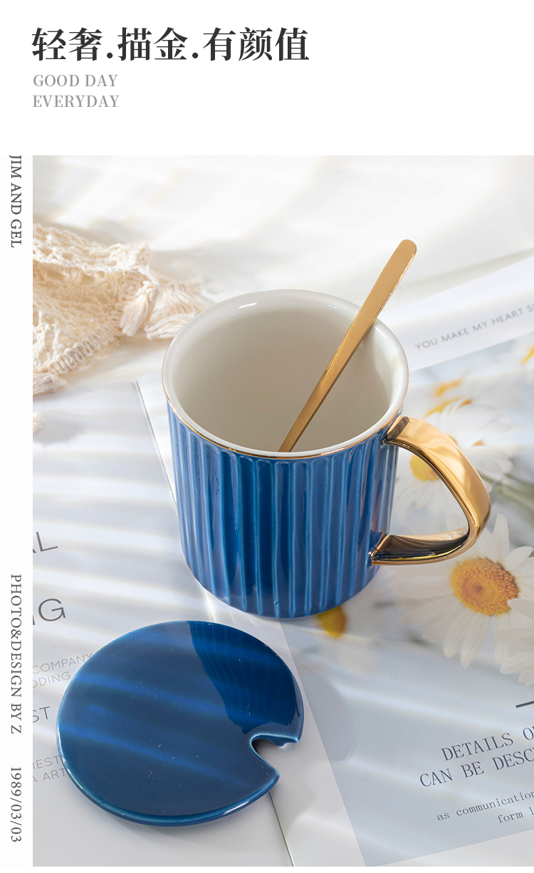 马克杯带盖勺 咖啡杯北欧ins办公室大容量陶瓷杯 简约森系清新水杯