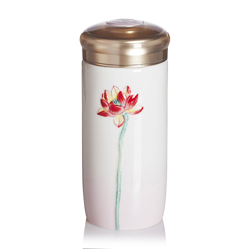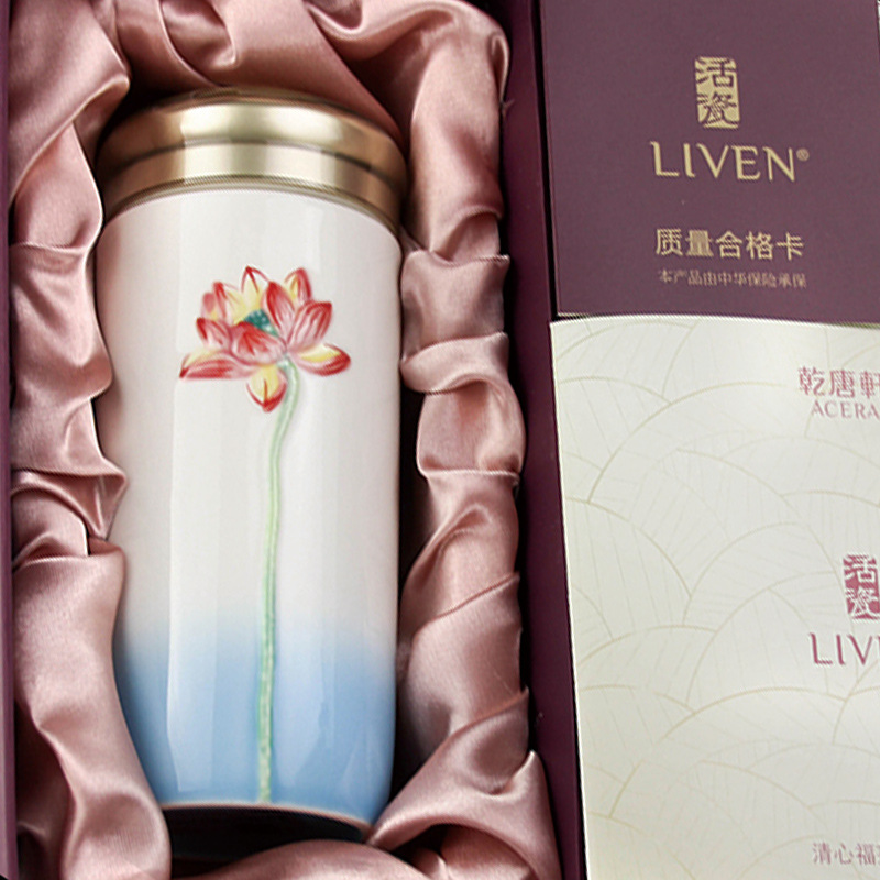 活瓷水杯清心福莲随手杯 高档精品送领导送客户礼品定制 陶瓷杯批发厂家