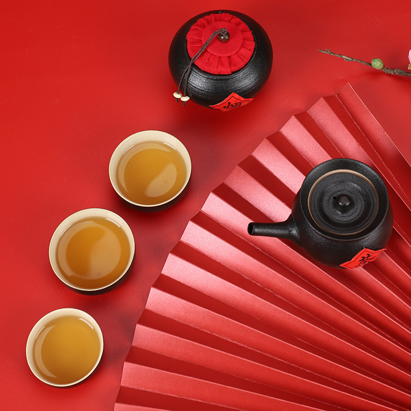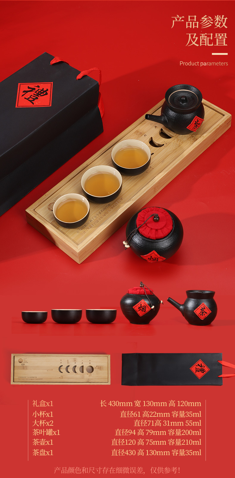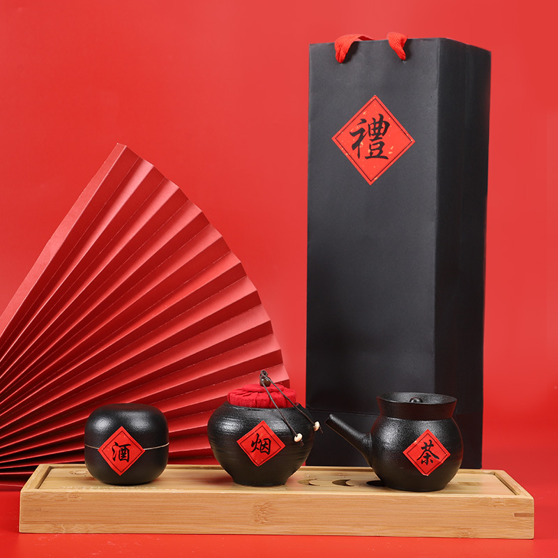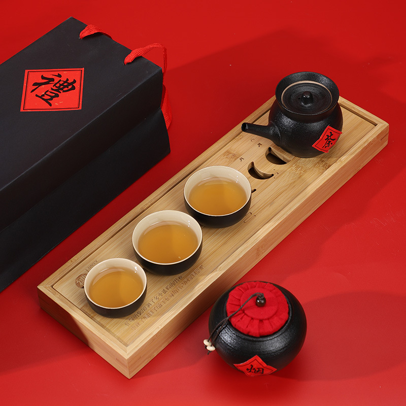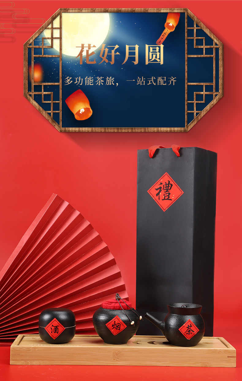 中秋送礼茶具 黑陶功夫茶具套装 带茶盘茶罐礼盒装节日礼品可定制