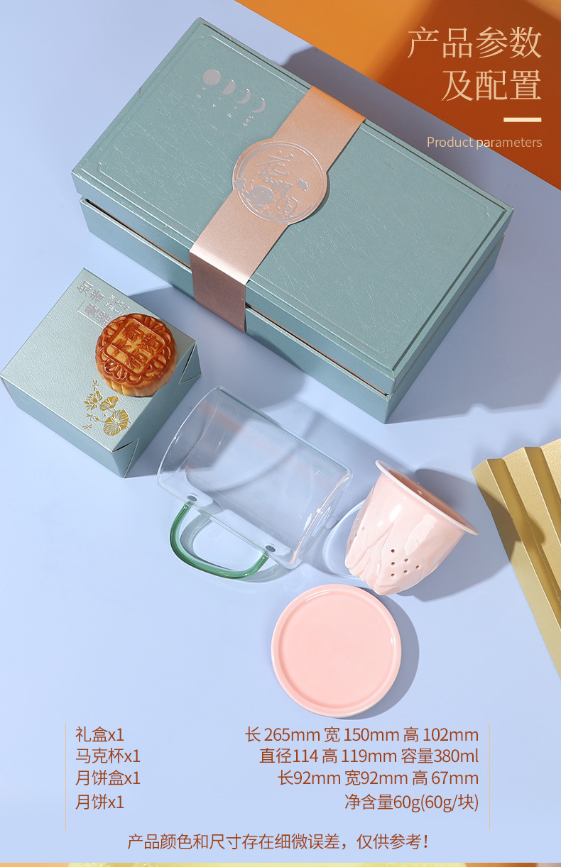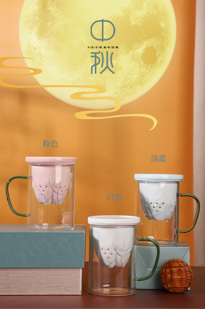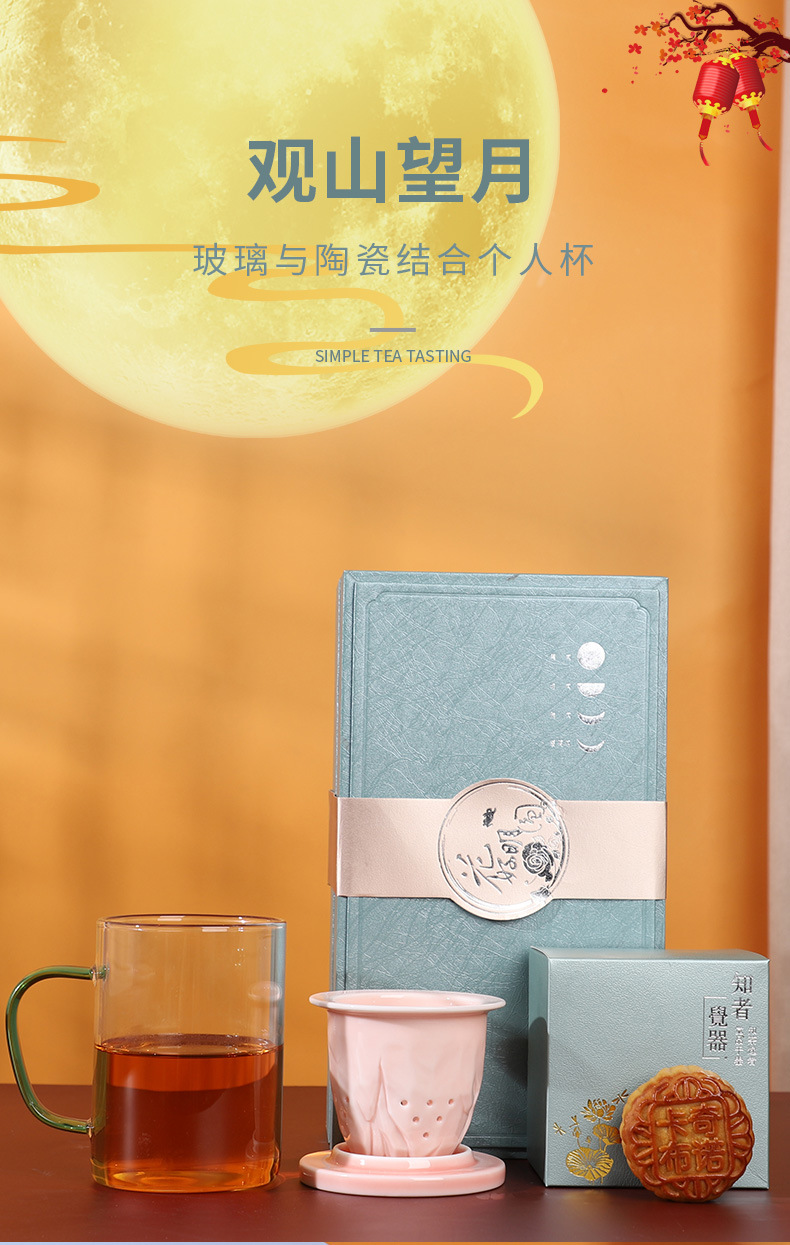 中秋送礼茶杯 观山过滤内胆玻璃杯 情侣杯配月饼礼盒装送礼可定制