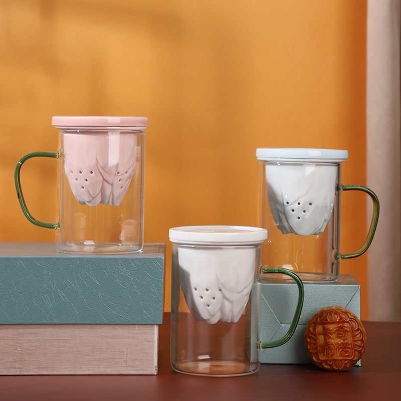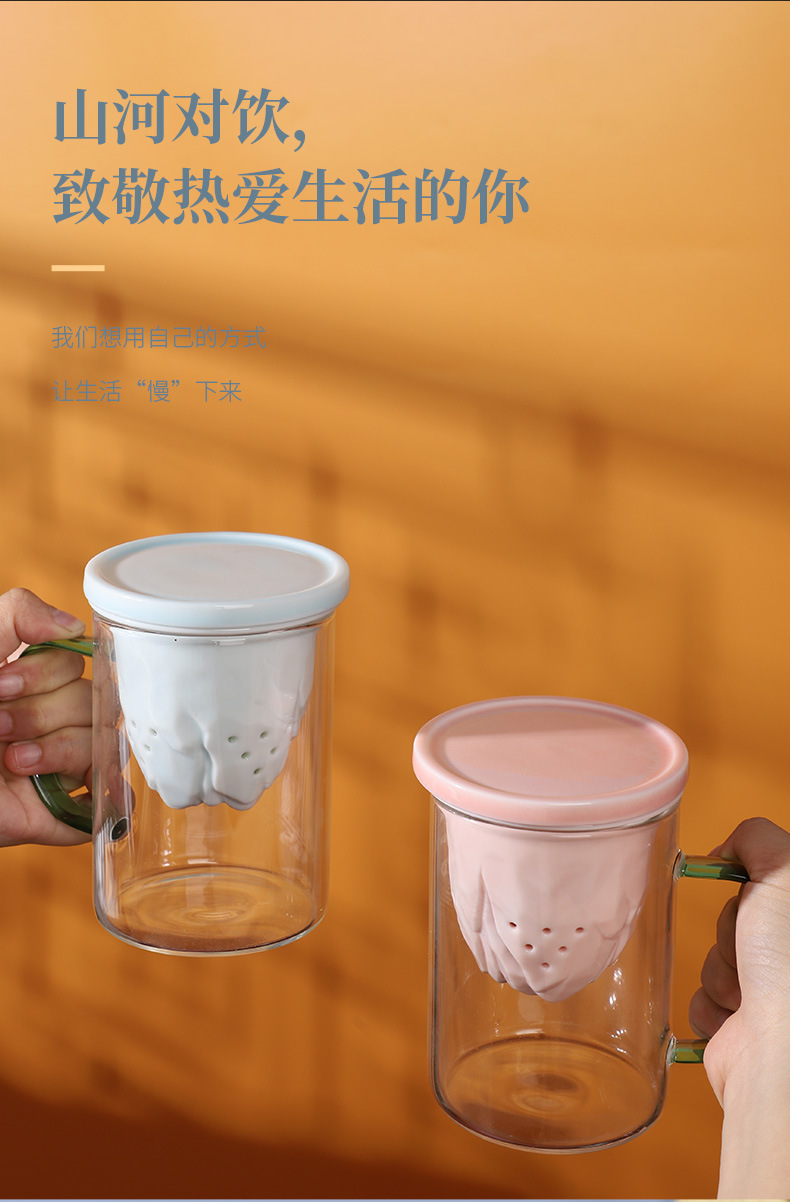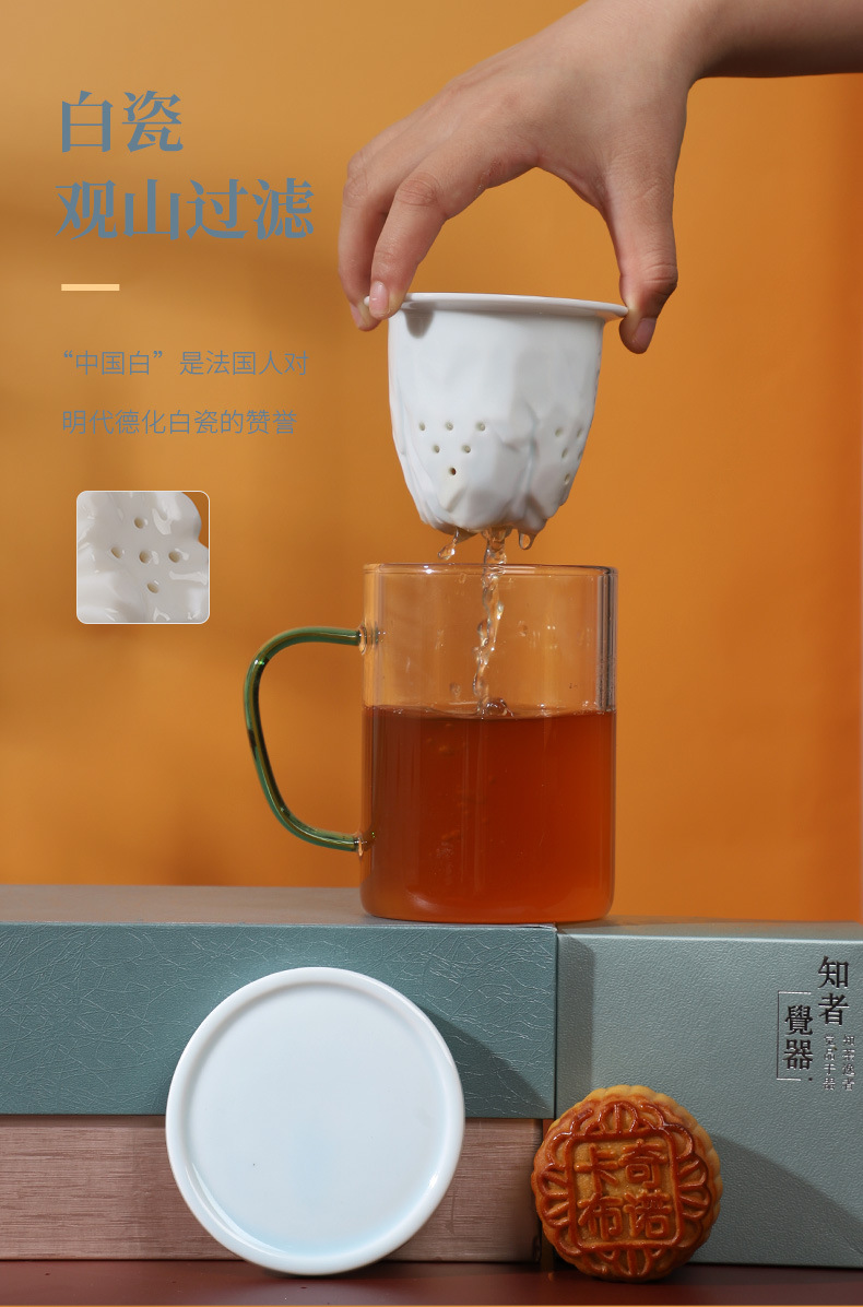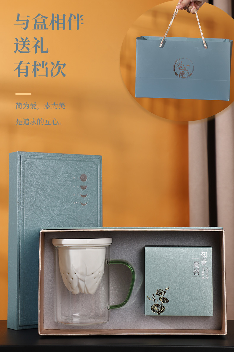 中秋送礼茶杯 观山过滤内胆玻璃杯 情侣杯配月饼礼盒装送礼可定制