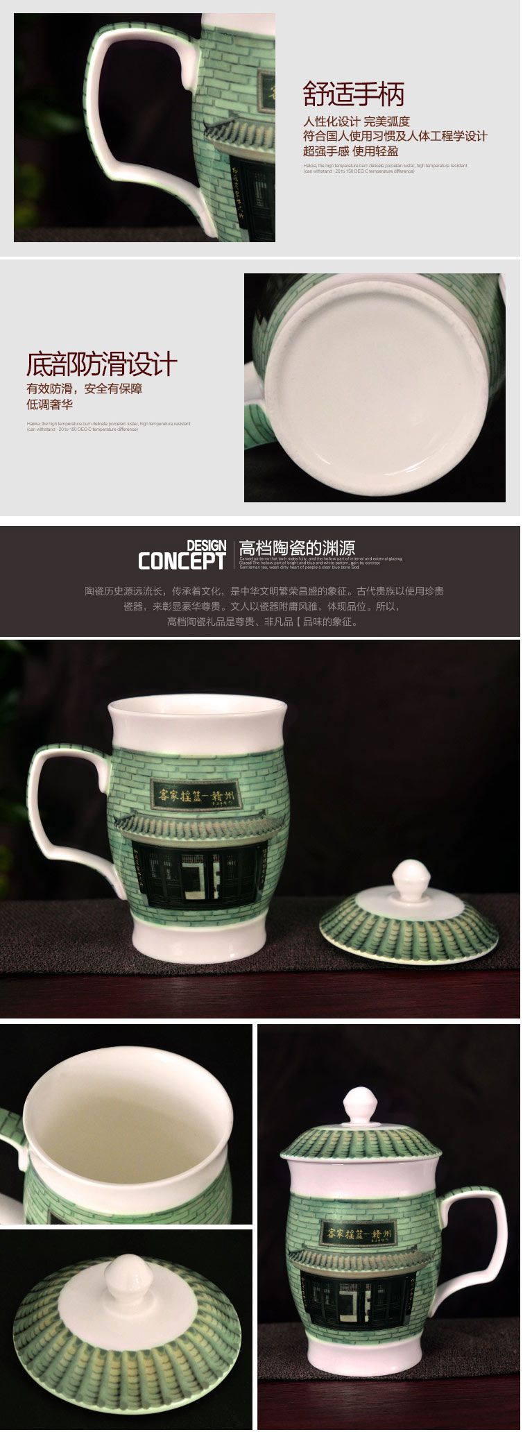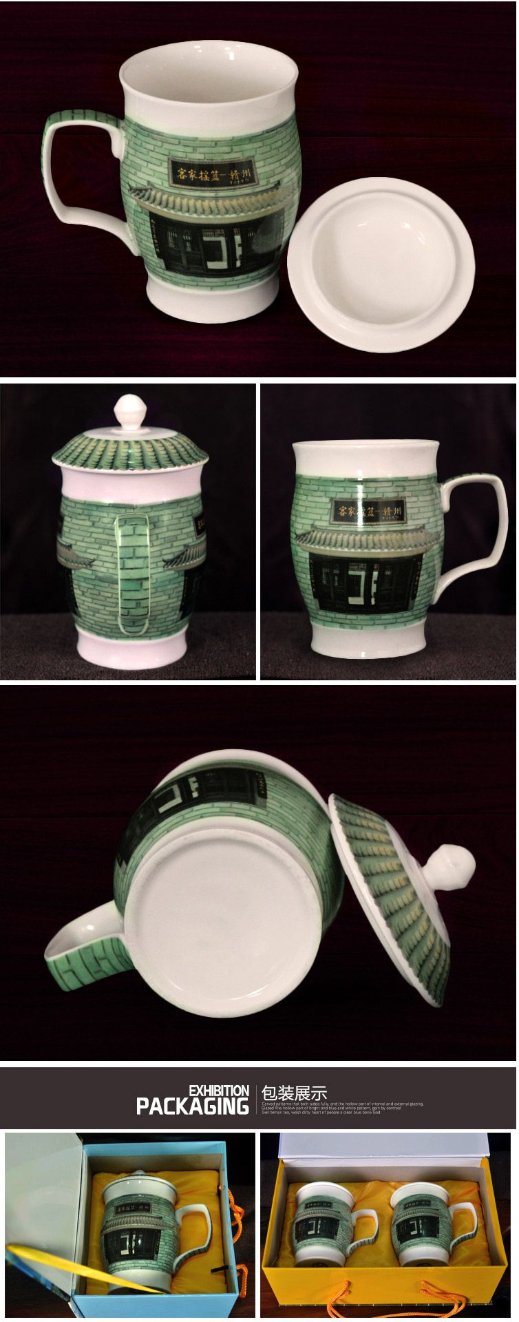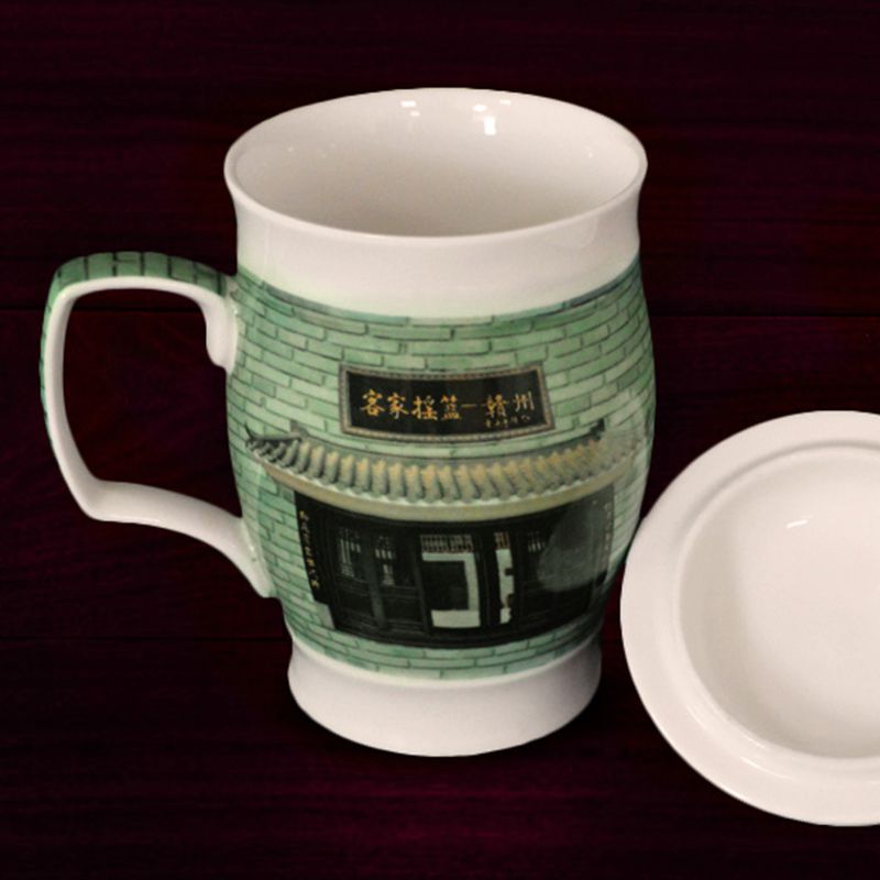 客家风景白瓷杯