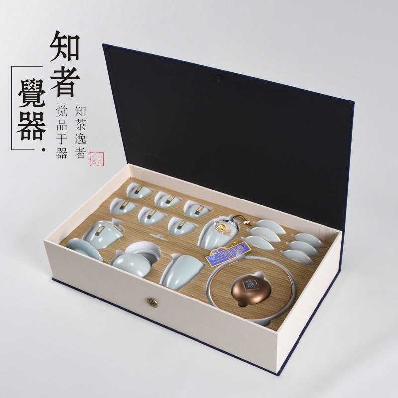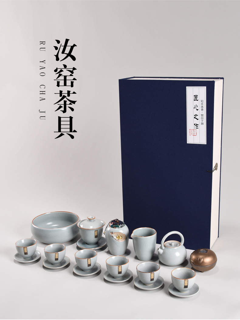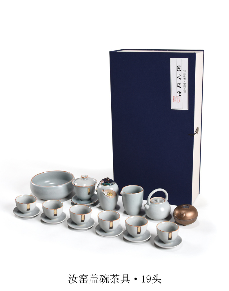 柏彩汝窑大茶具礼盒套装组 创意实用家用泡茶套装 可定制工厂批发