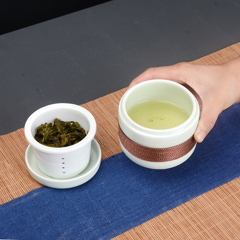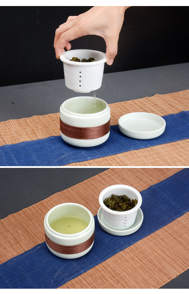 情怀哥窑三件套个人杯旅行茶具 创意礼品旅行便携茶杯 可定制LOGO