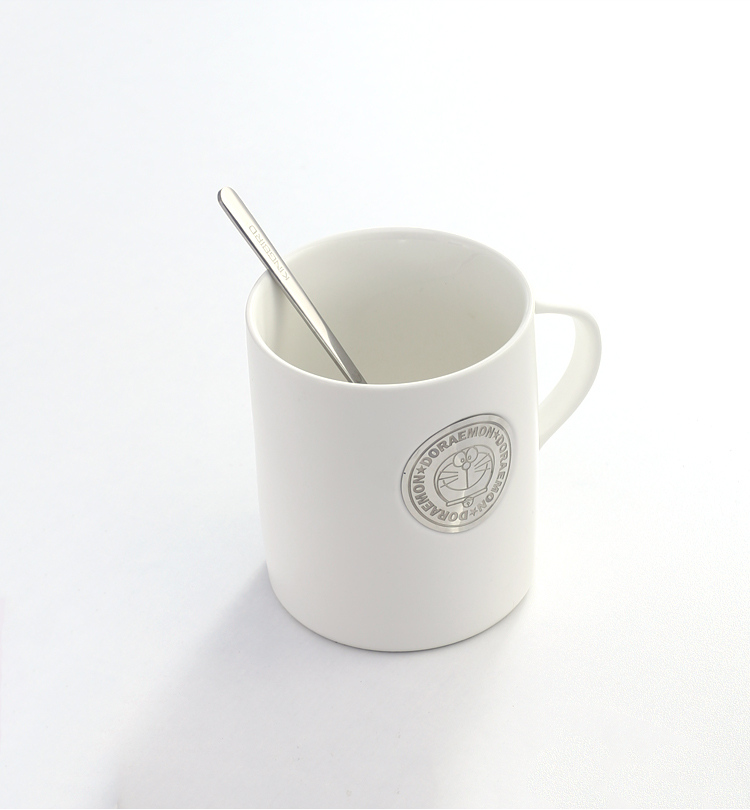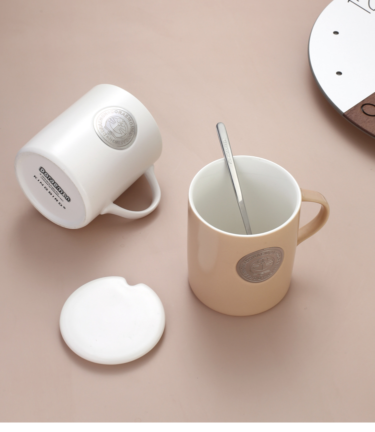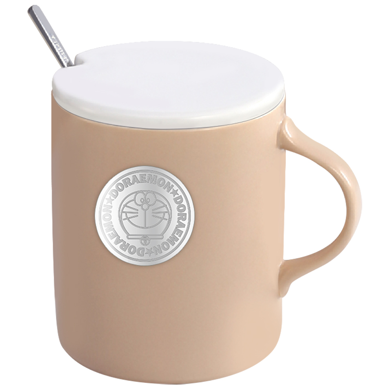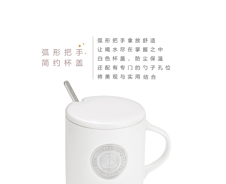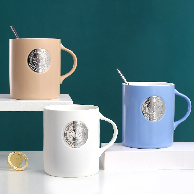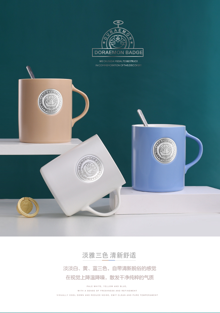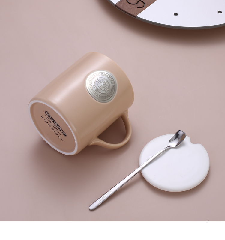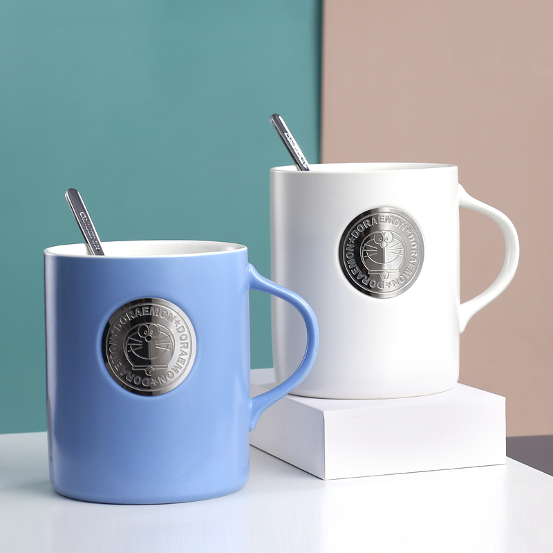 哆啦a梦马克杯 可爱叮当机器猫蓝胖子水杯 陶瓷带盖勺咖啡杯