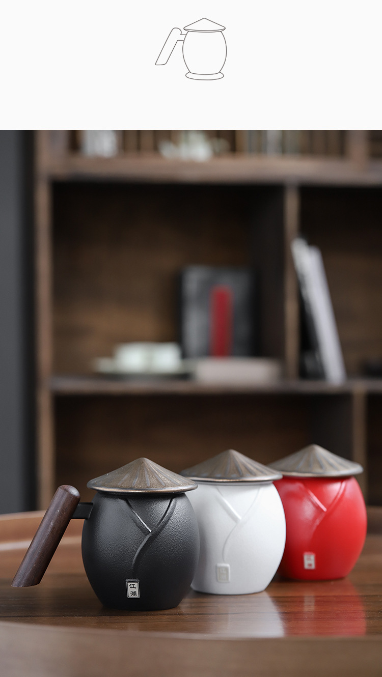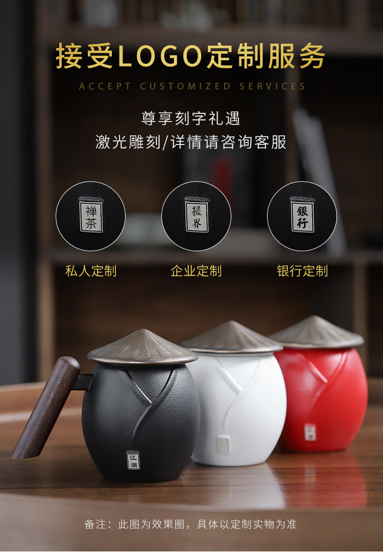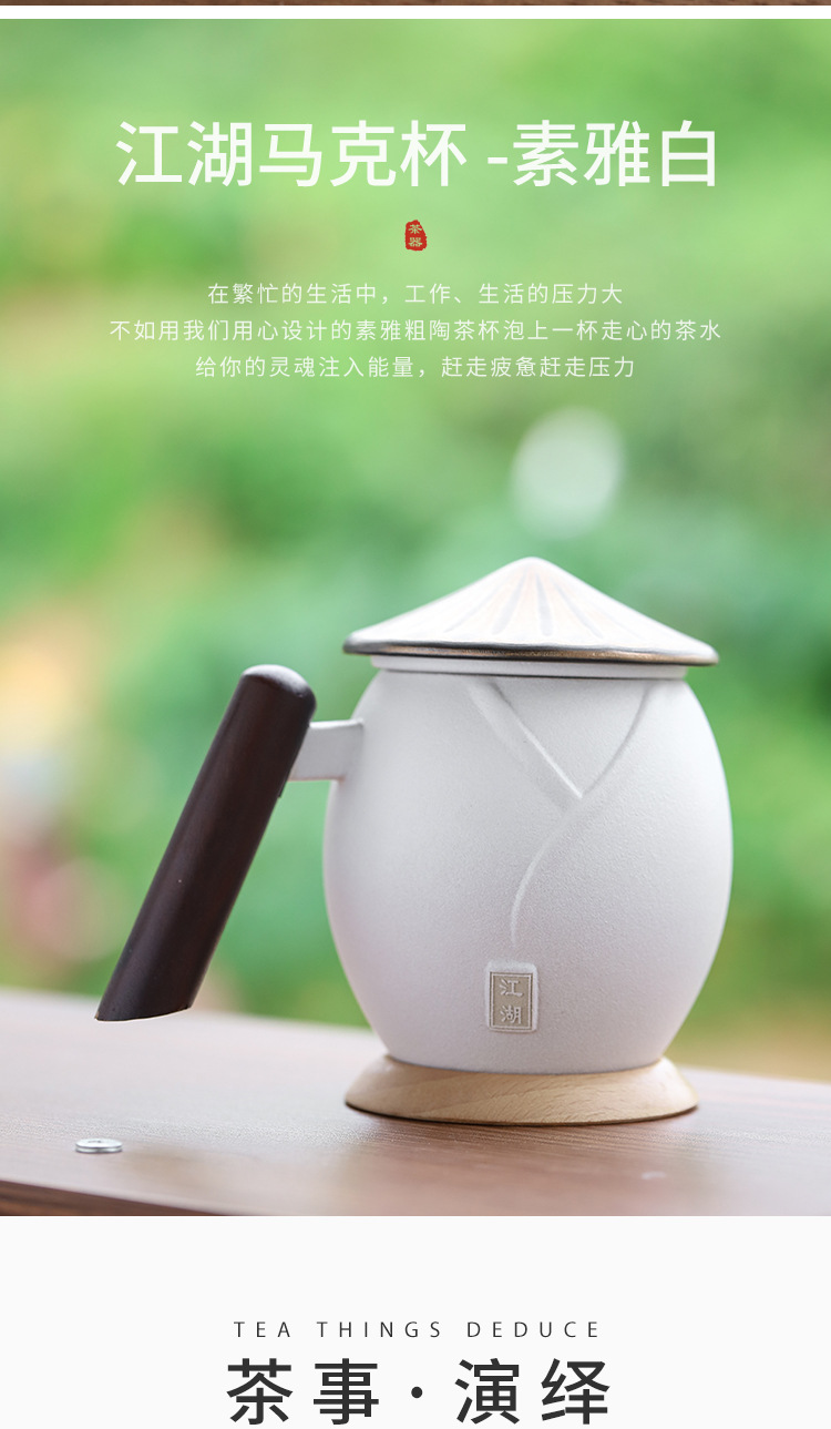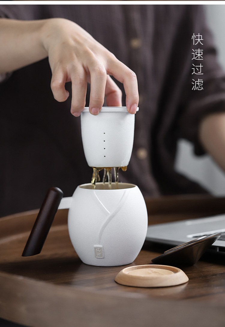 新款带过滤江湖马克杯 办公杯茶杯批发 日式创意木柄陶瓷情侣杯可定制