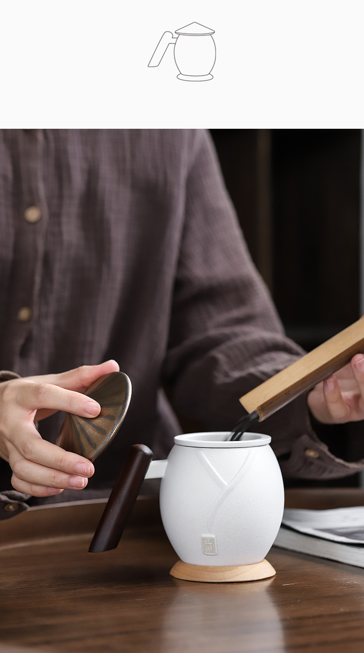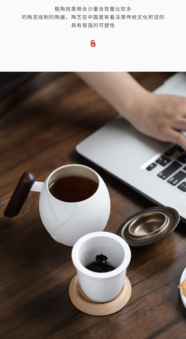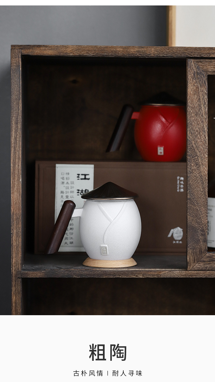 新款带过滤江湖马克杯 办公杯茶杯批发 日式创意木柄陶瓷情侣杯可定制