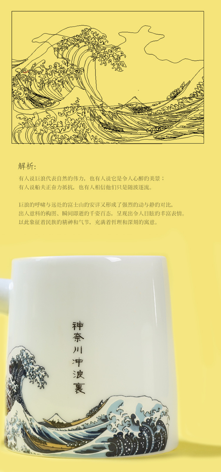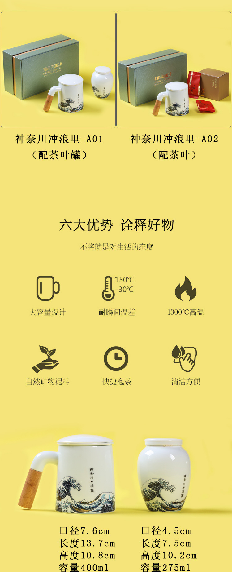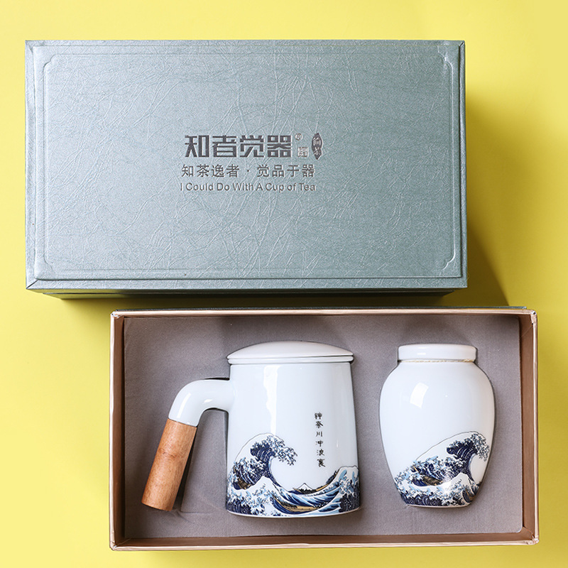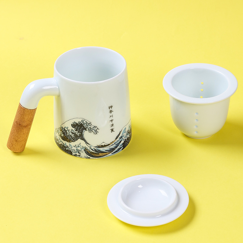 德化白瓷马克杯 创意海浪茶杯办公杯陶瓷 带盖带过滤内胆可定制logo