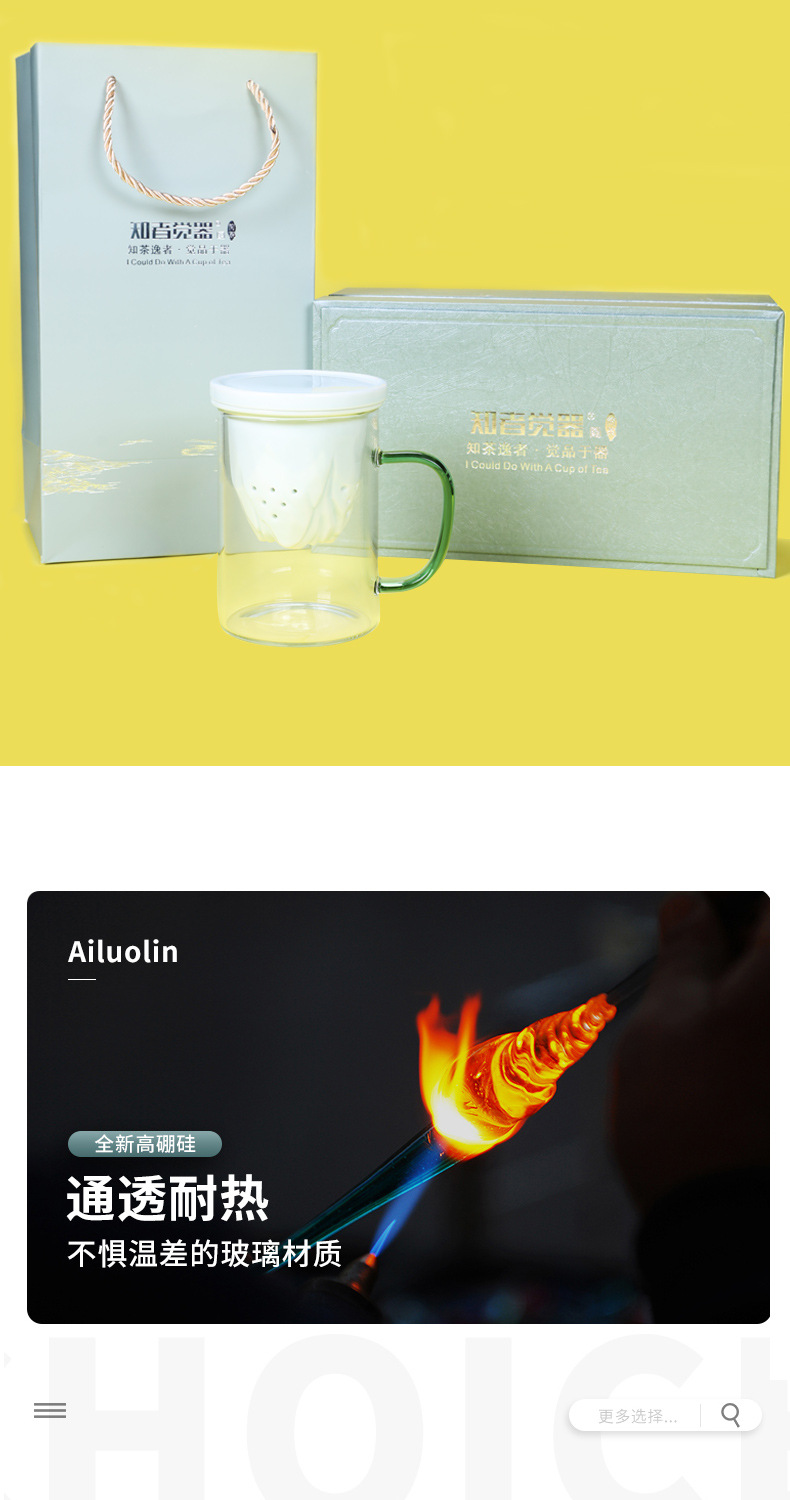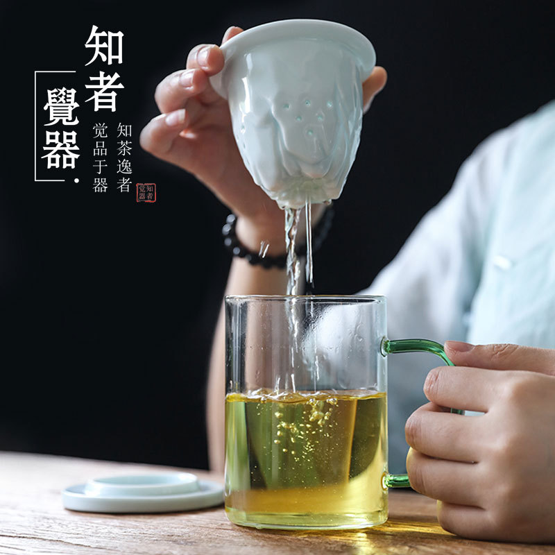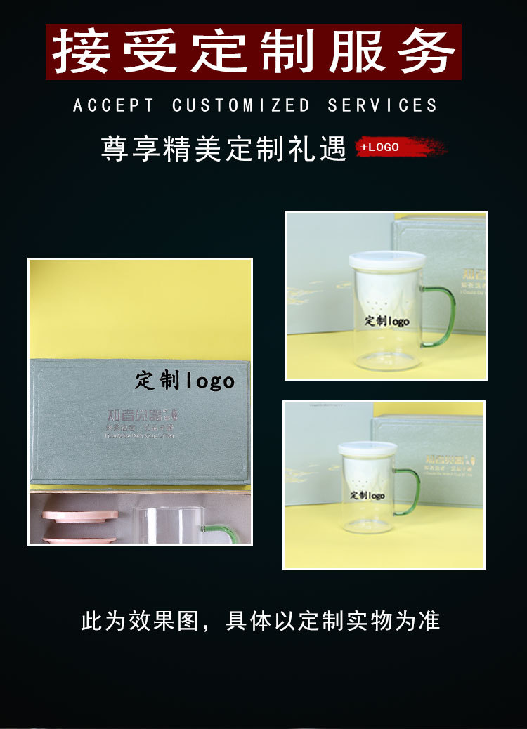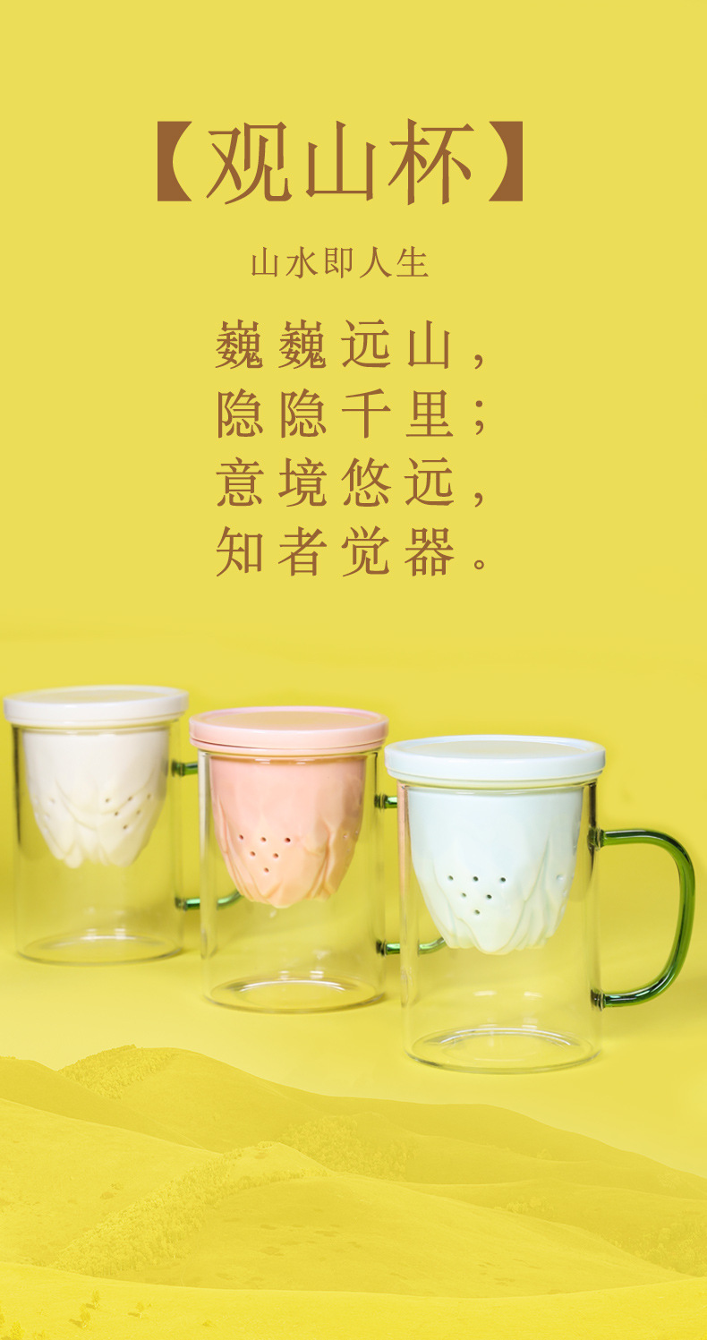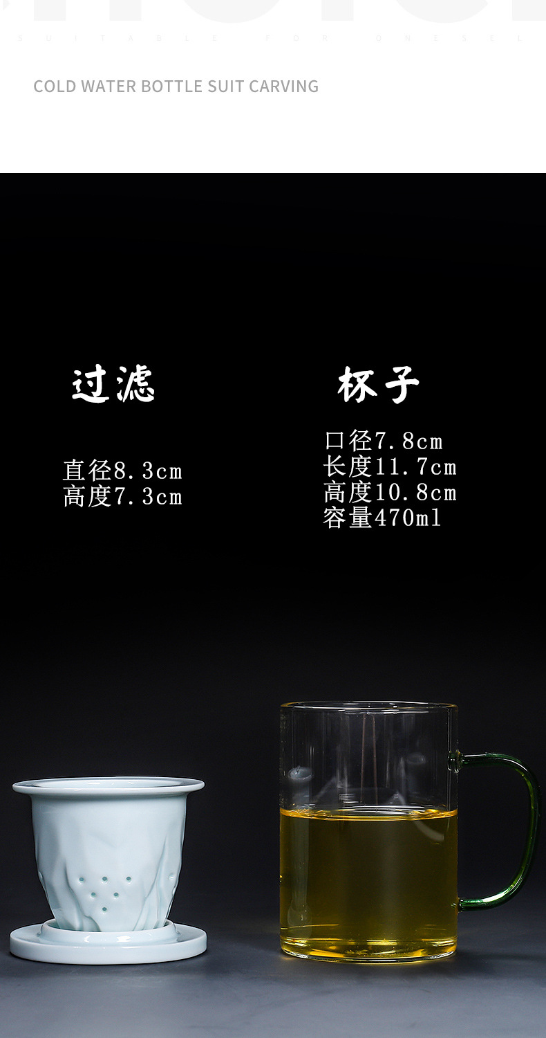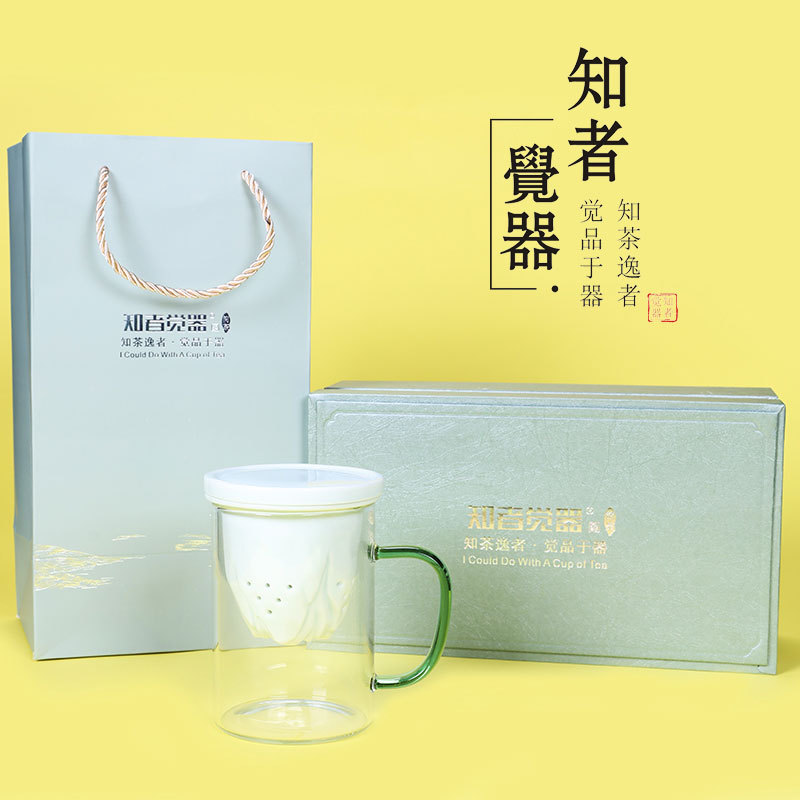 德化玻璃水杯观山马克杯 羊脂玉瓷过滤内胆礼盒装送礼可定制logo