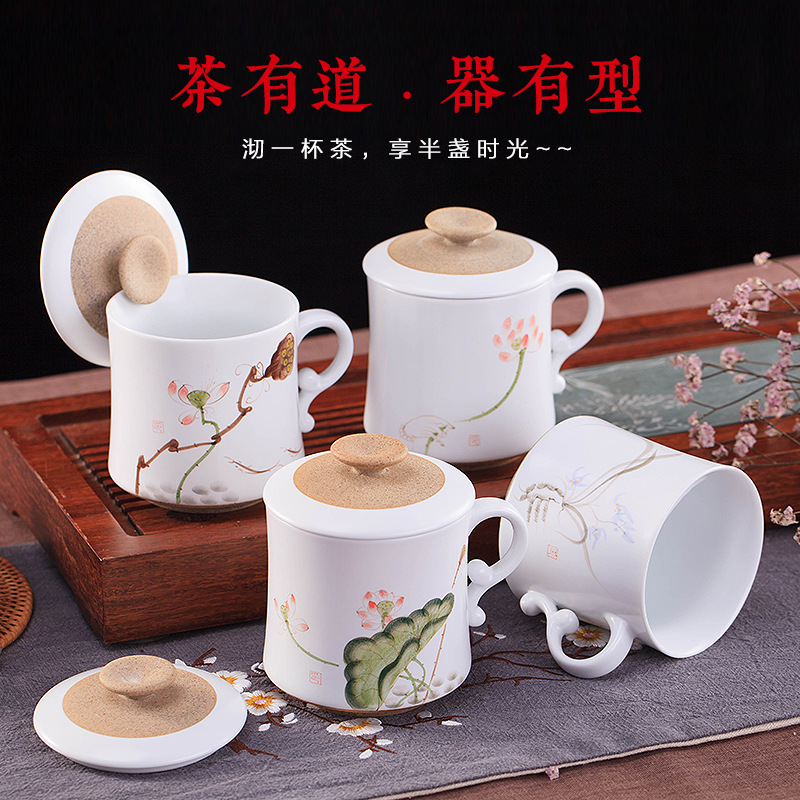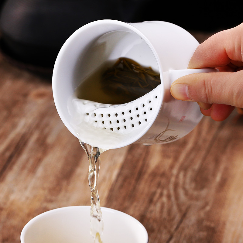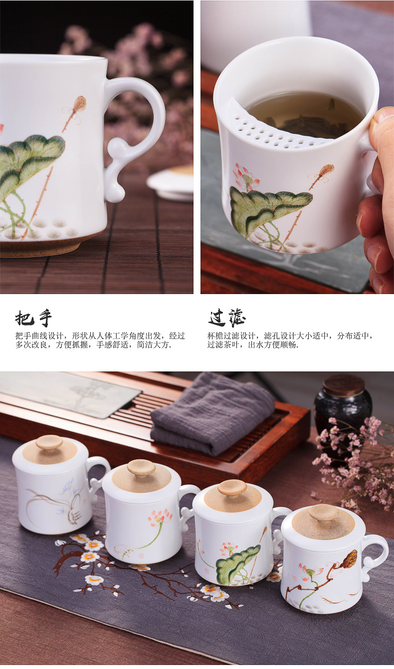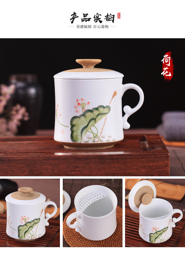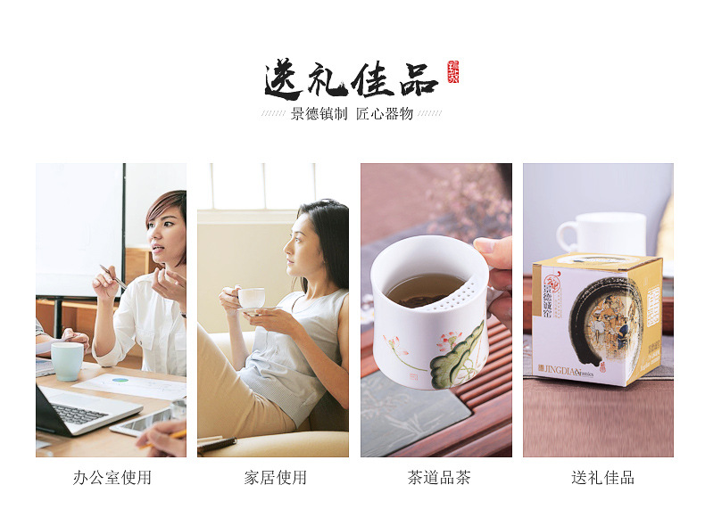 景德镇过滤泡茶杯带盖 家用杯子办公茶具陶瓷杯 日用百货礼品定制
