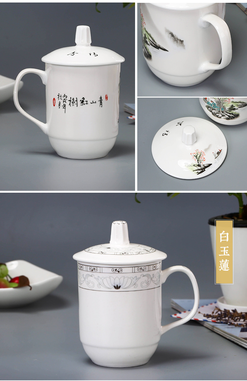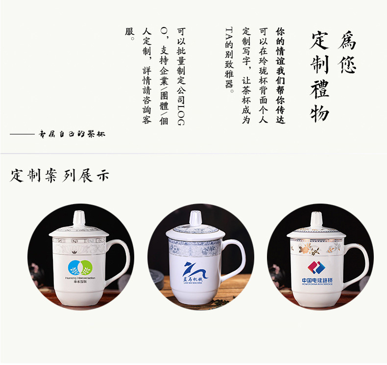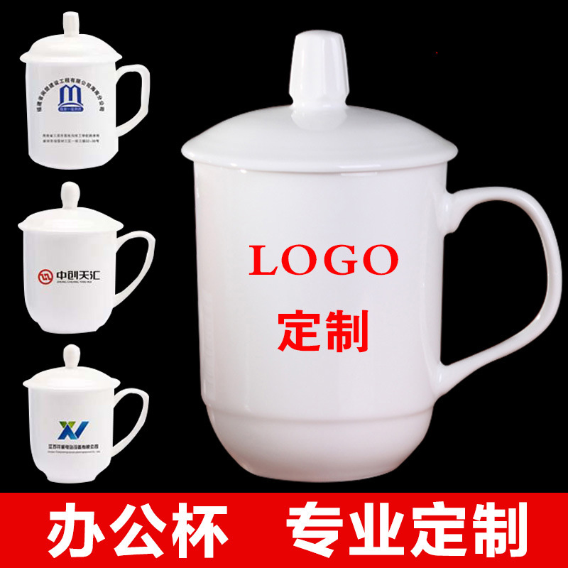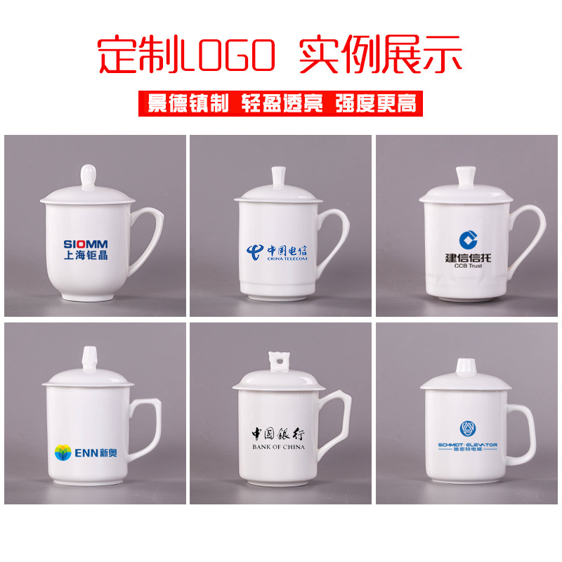 广告杯批发 纯白茶杯陶瓷办公杯定制LOGO 宾馆酒店会议室喝水杯子