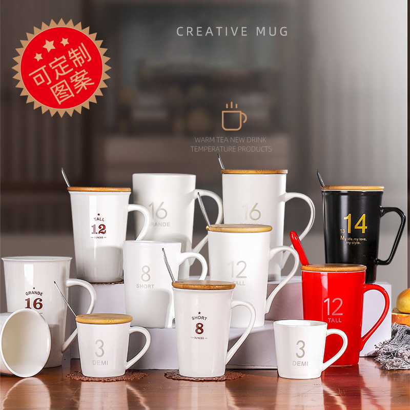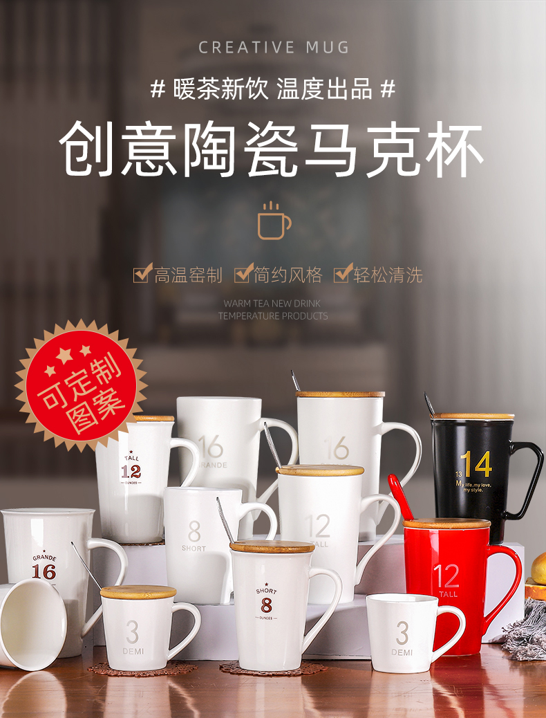 杯子带盖陶瓷水杯 广告纪念礼品杯咖啡杯印logo 马克杯定制