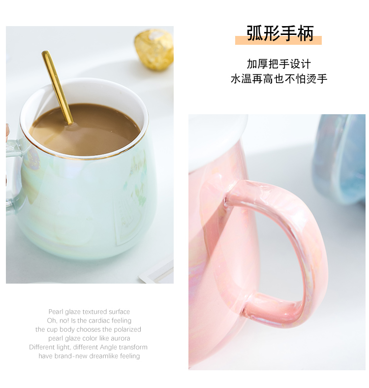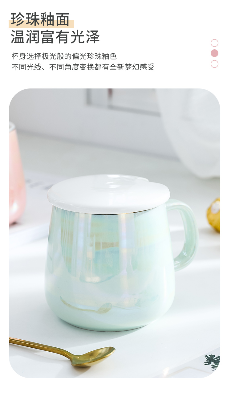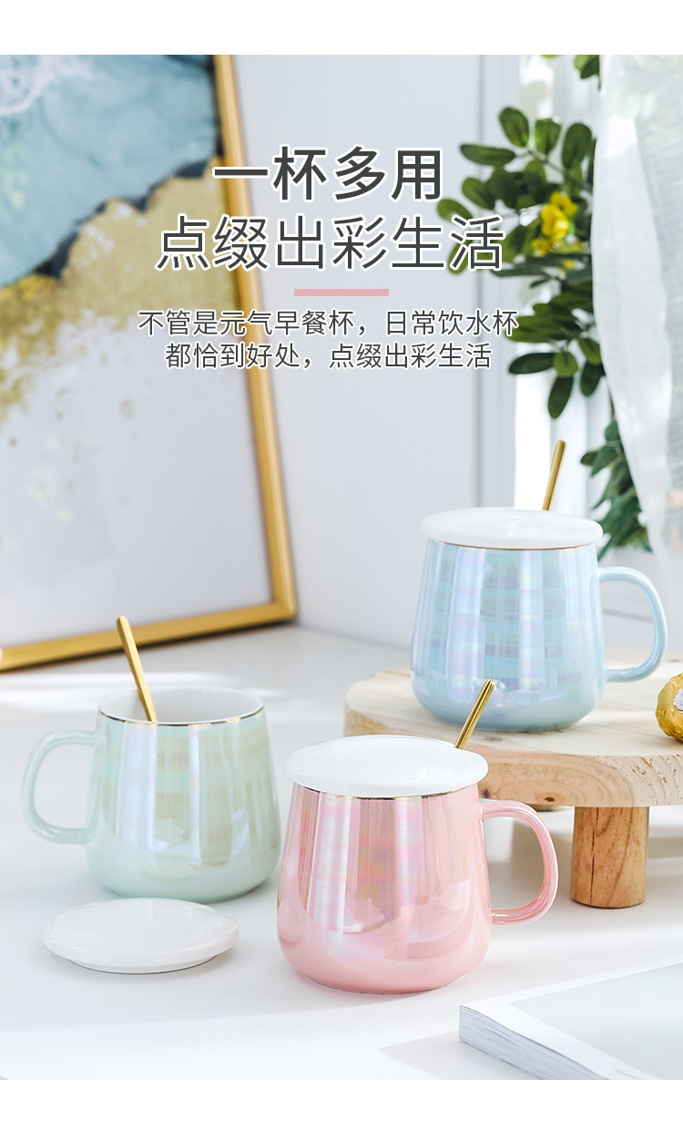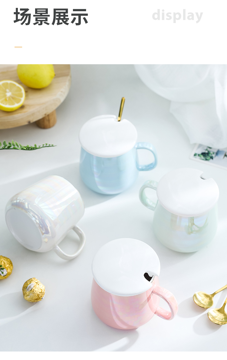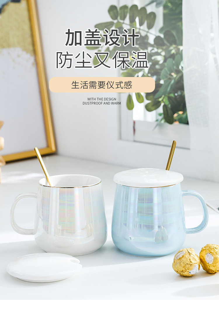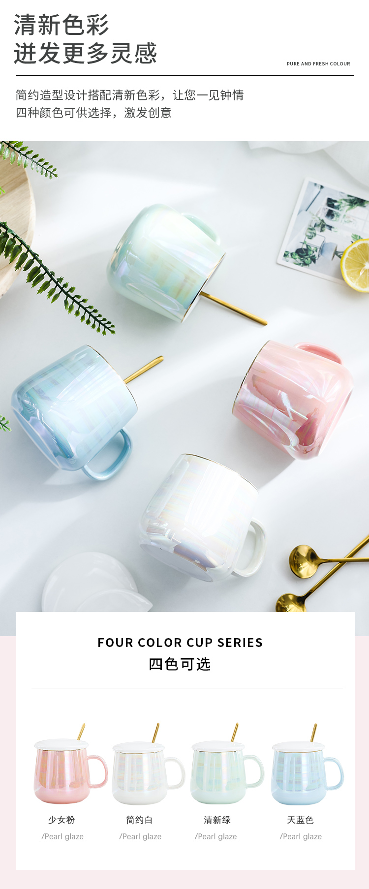 喝水杯子家用 情侣简约办公室马克杯 带盖勺创意陶瓷咖啡杯