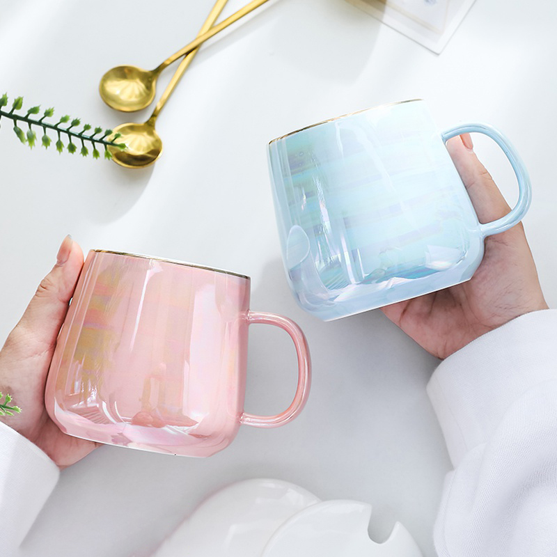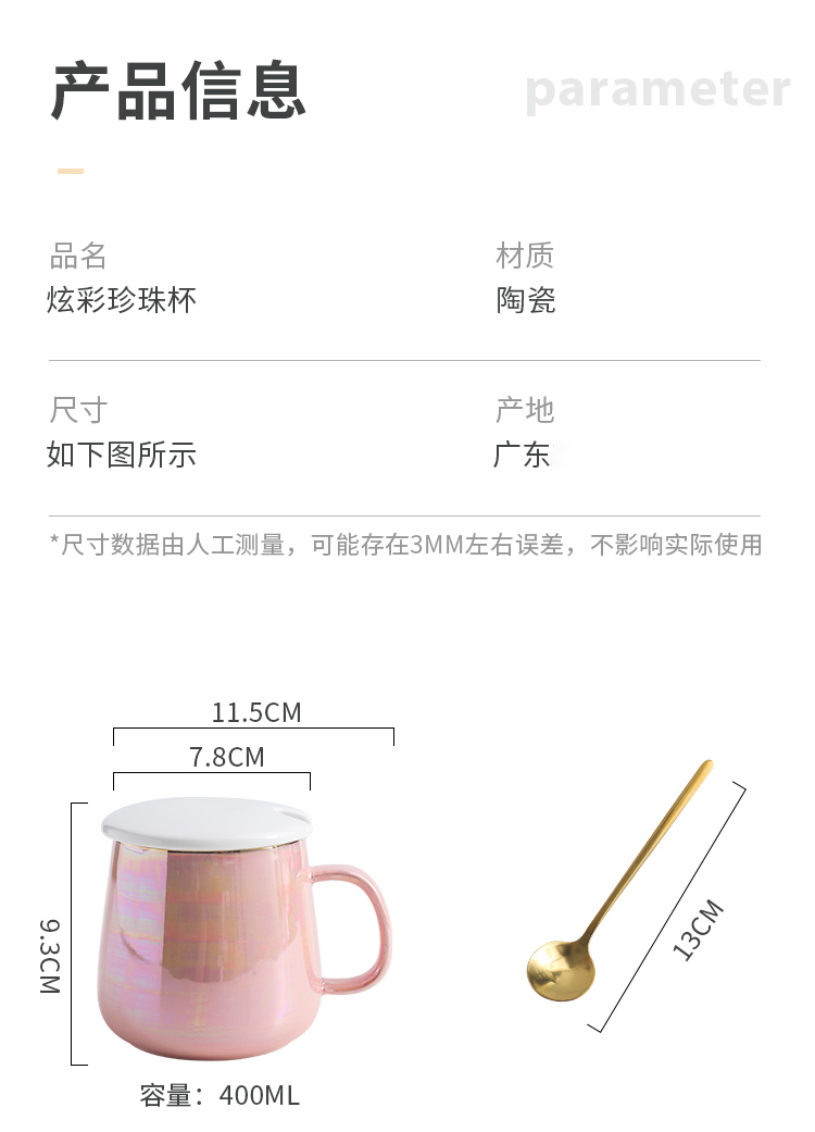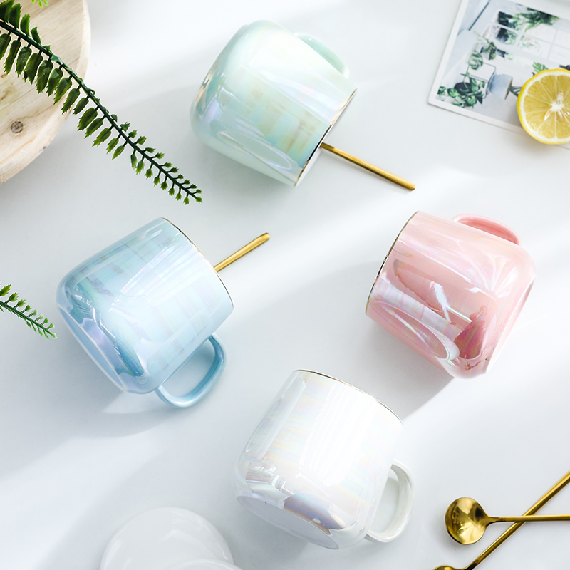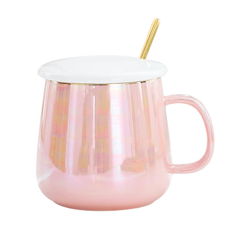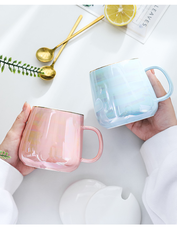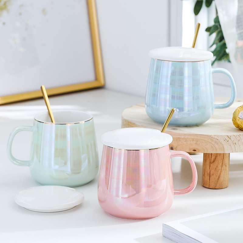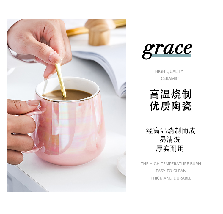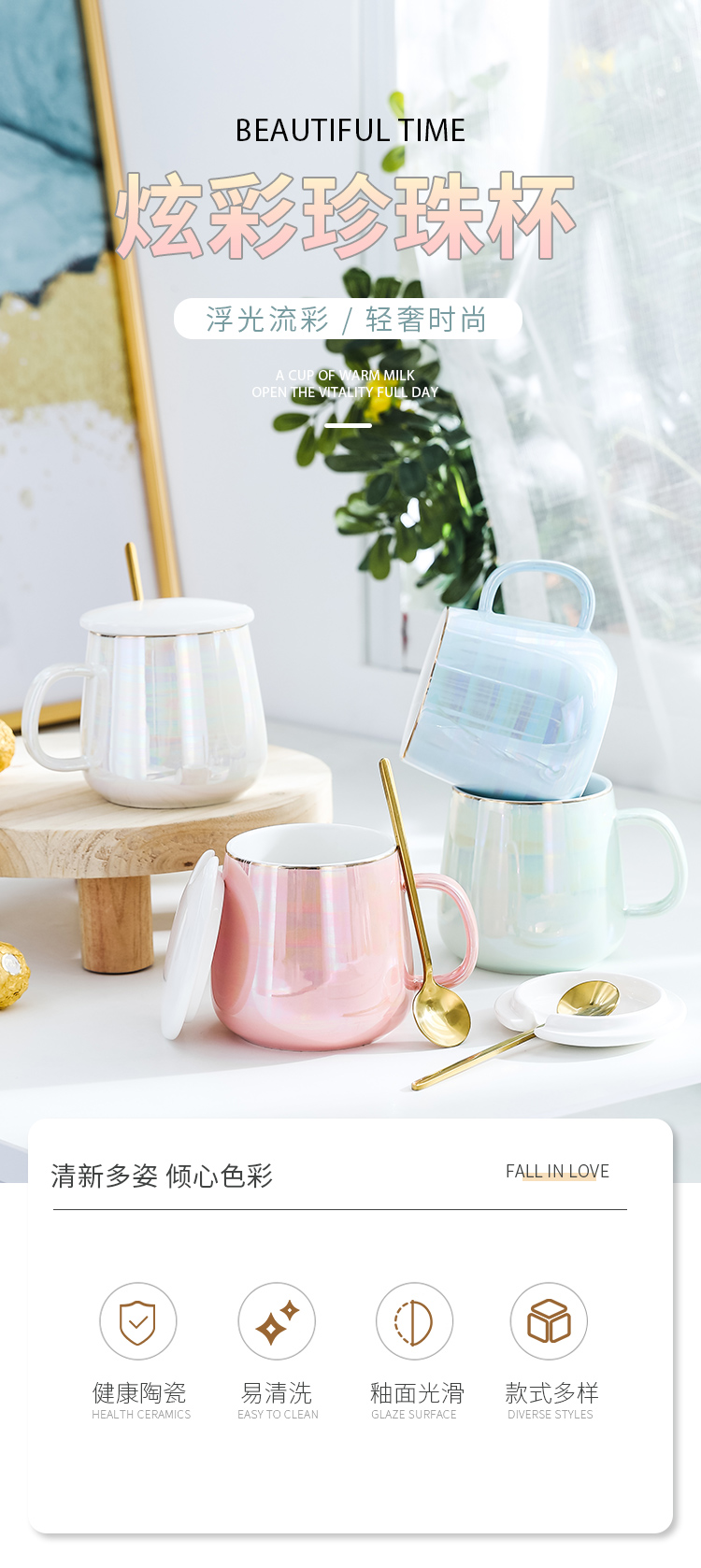 喝水杯子家用 情侣简约办公室马克杯 带盖勺创意陶瓷咖啡杯