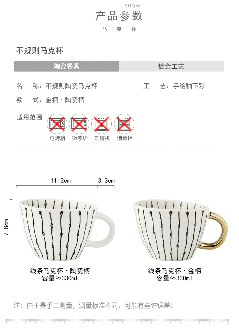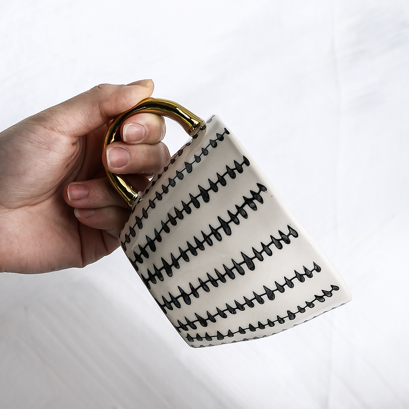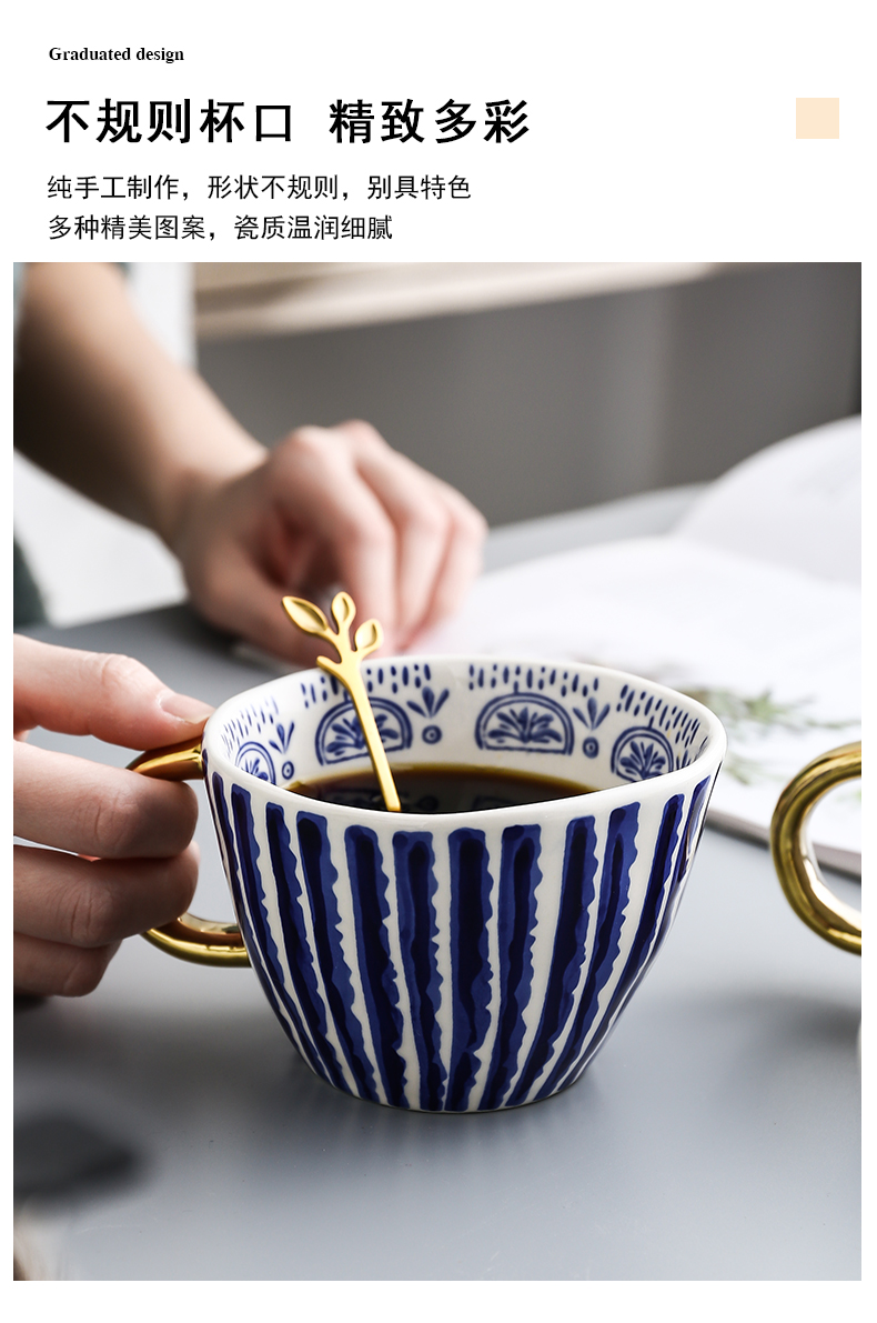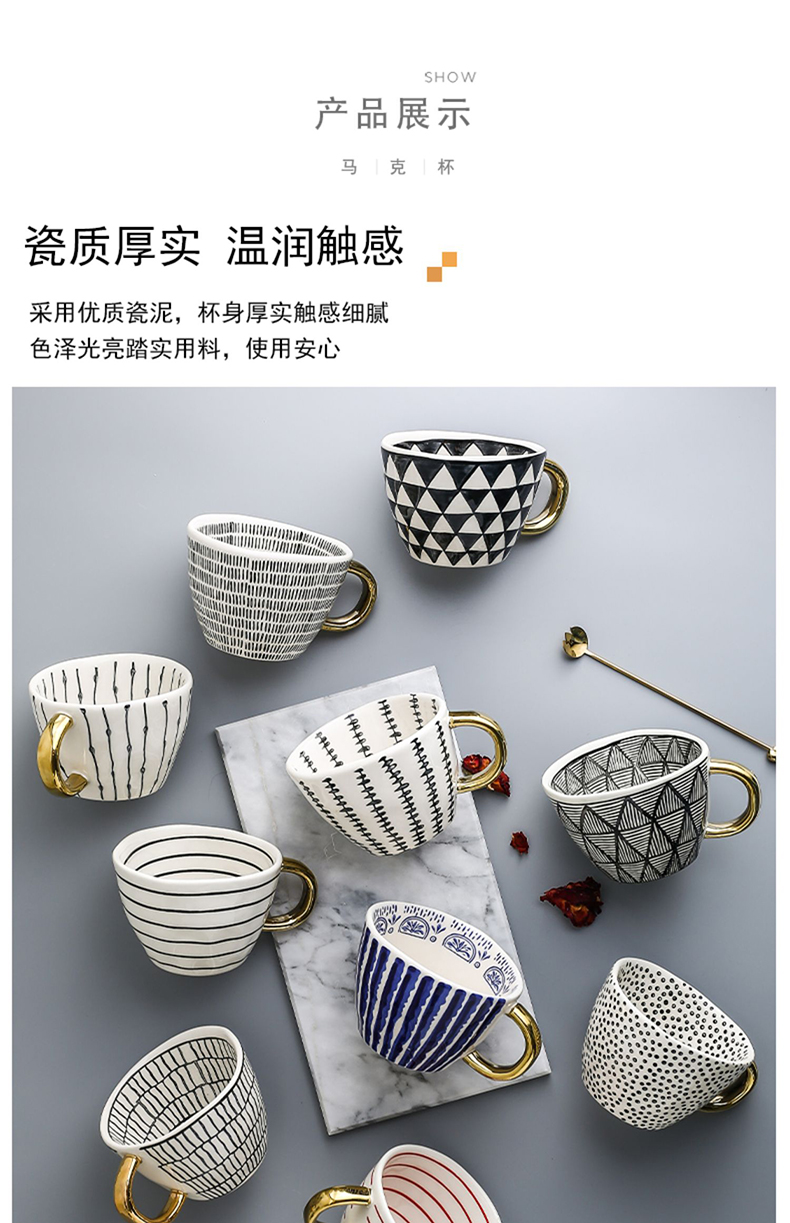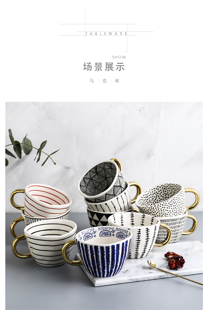 釉下彩北欧马克杯 ins好看咖啡杯家用 带把手轻奢陶瓷杯