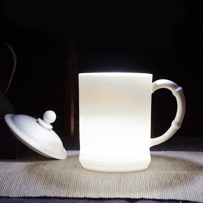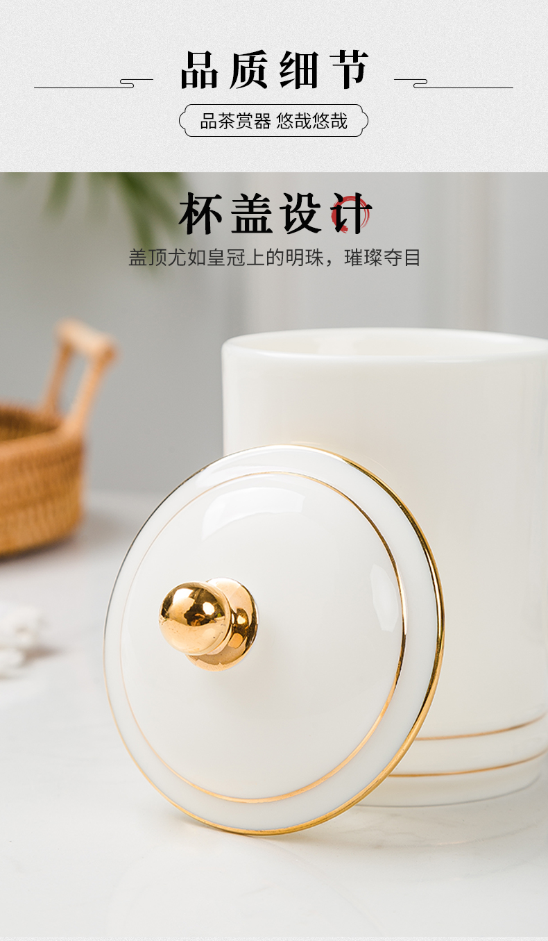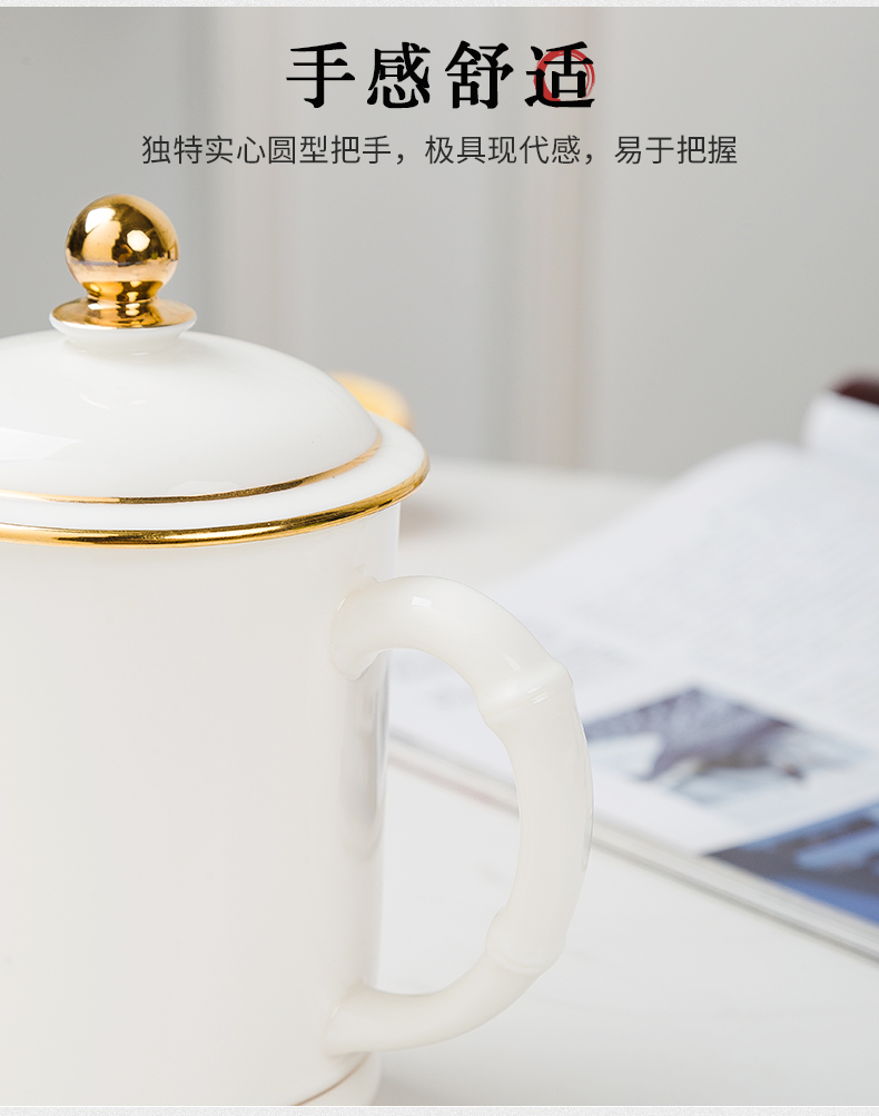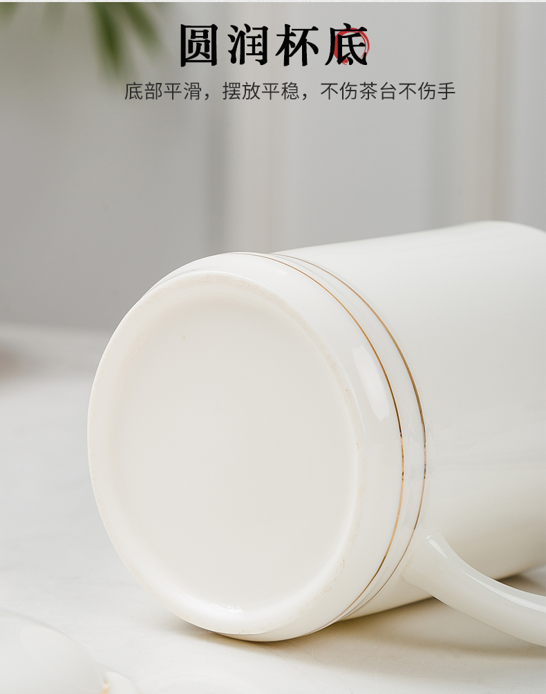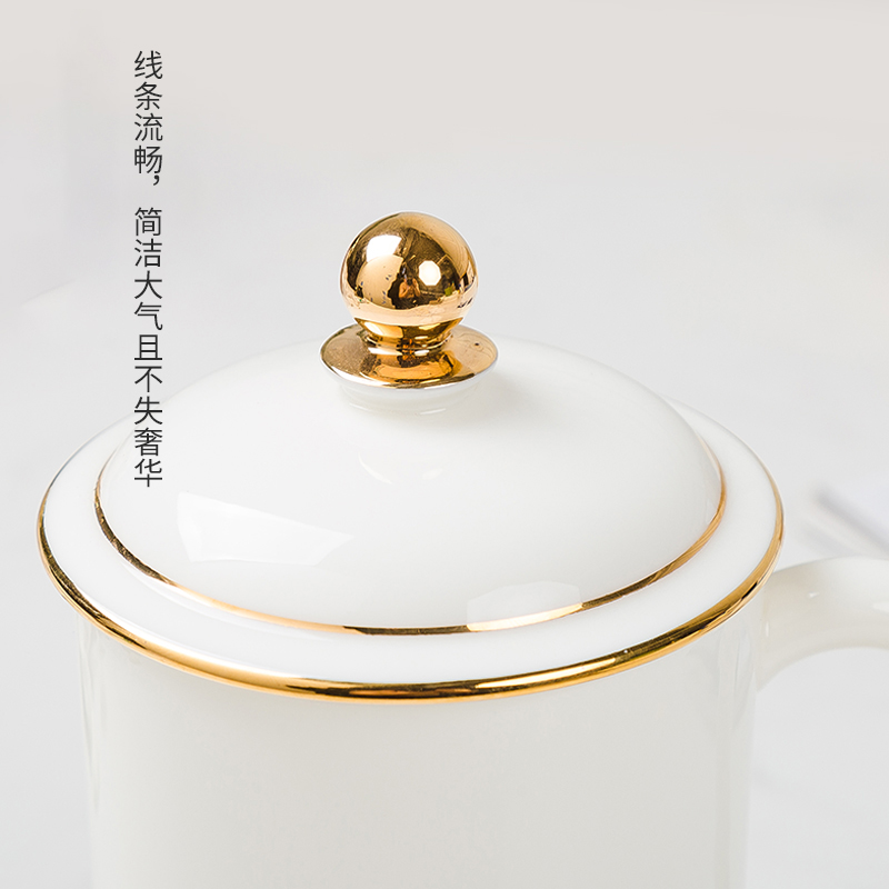 白瓷水杯 陶瓷办公带盖杯礼盒装 大容量泡茶杯