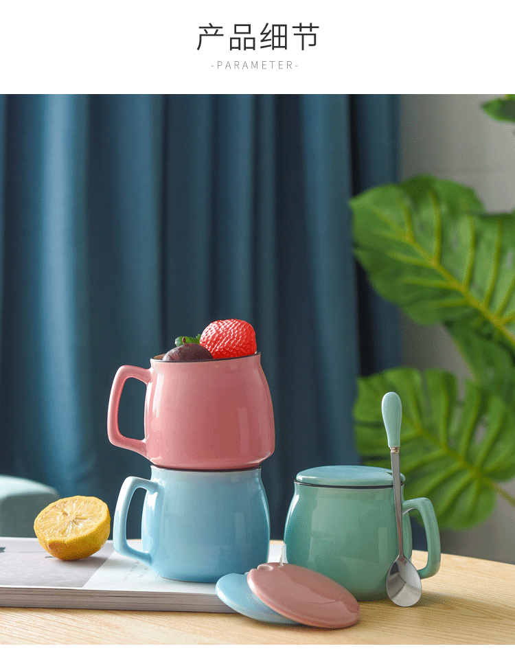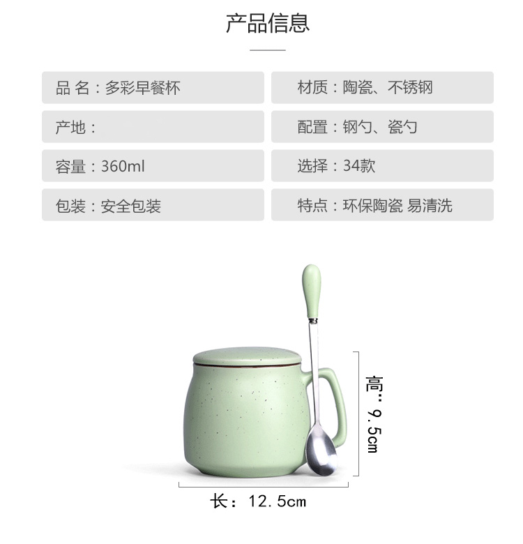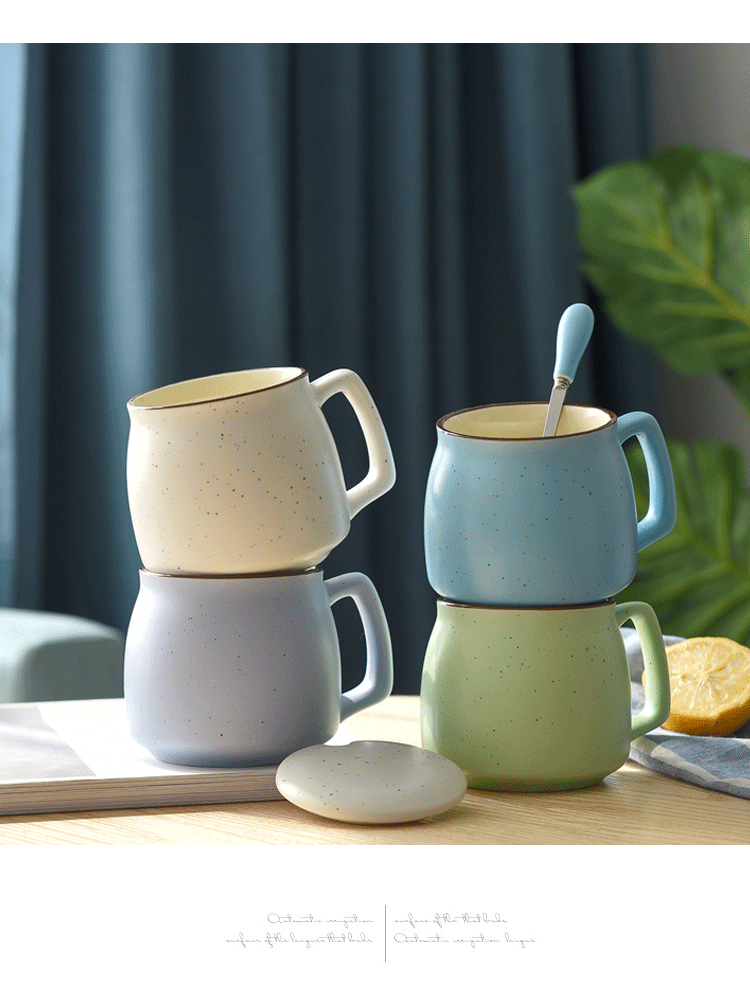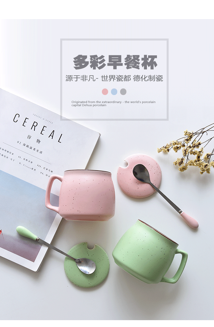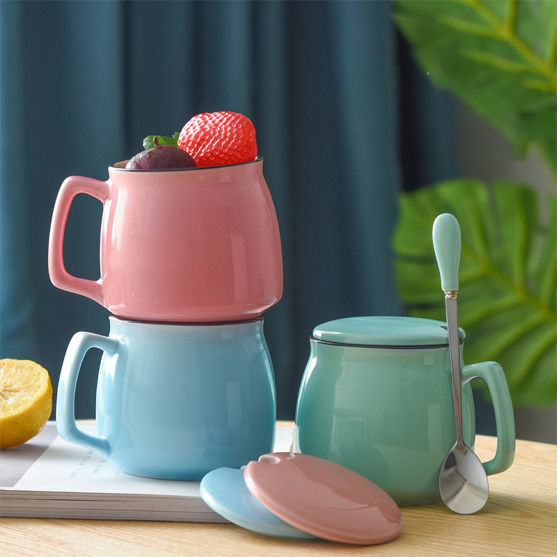 陶瓷杯子带盖勺 创意喝水杯家用 咖啡杯马克杯定制