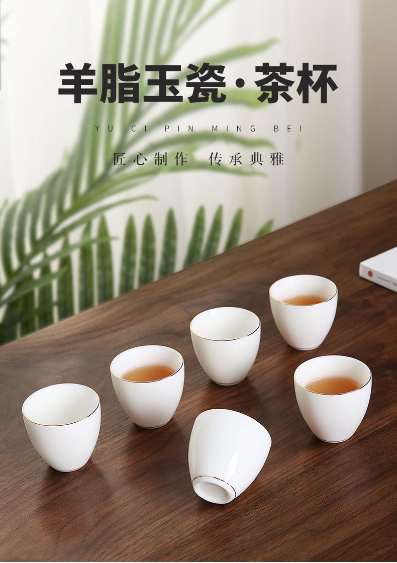 白瓷小茶杯陶瓷品茗杯 功夫茶具单杯泡茶杯 陶瓷主人杯